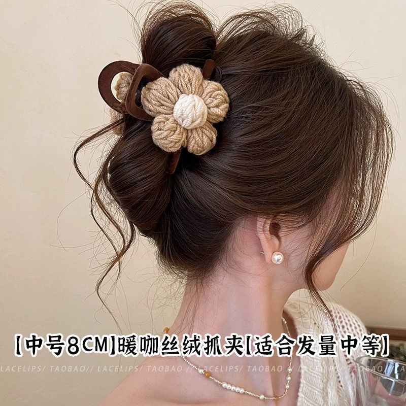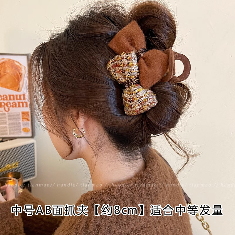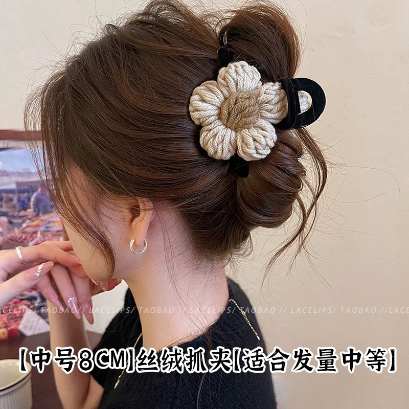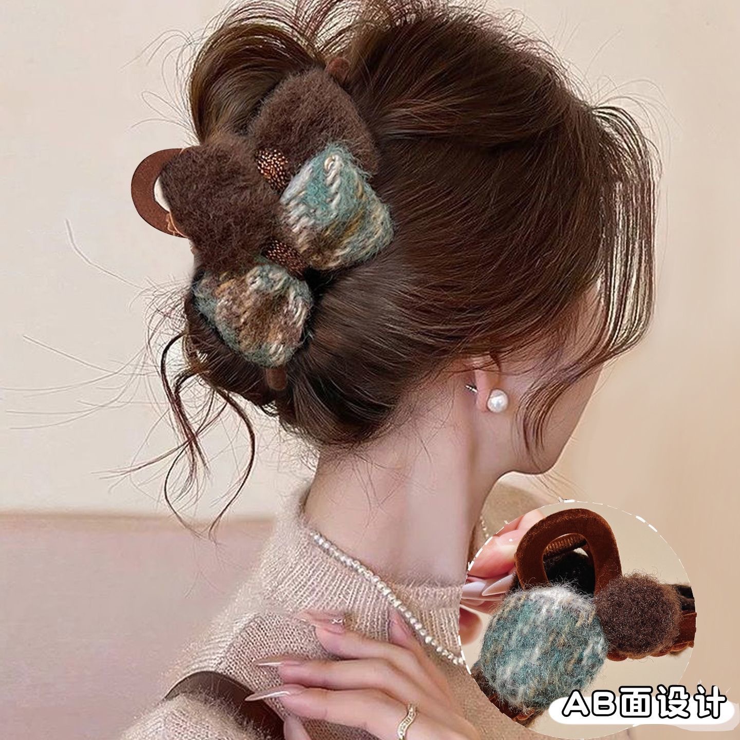秋冬毛绒花朵蝴蝶结抓夹女高级感2025新款发夹后脑勺鲨鱼夹子头饰