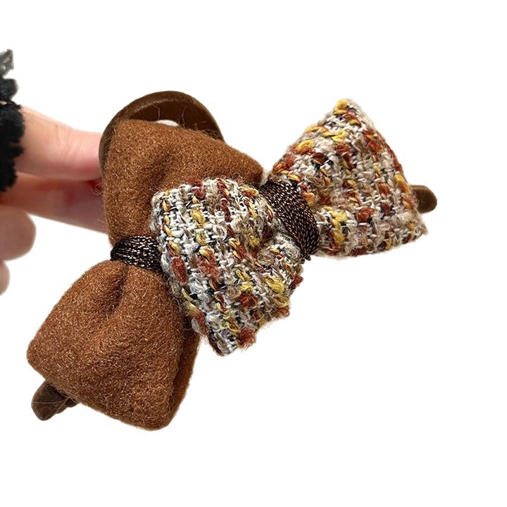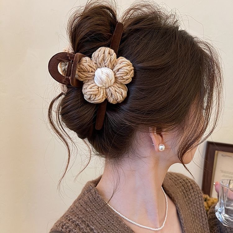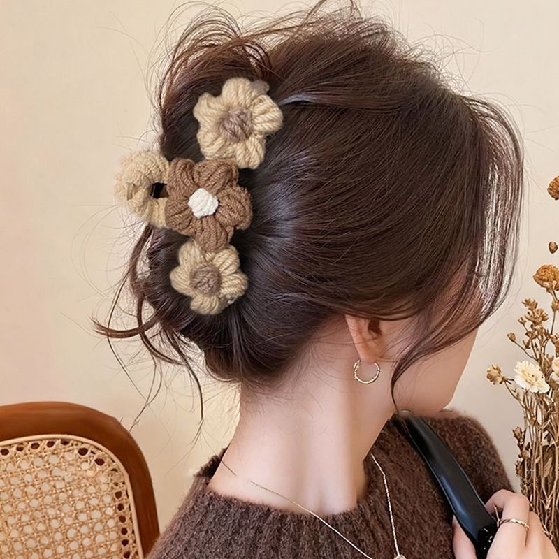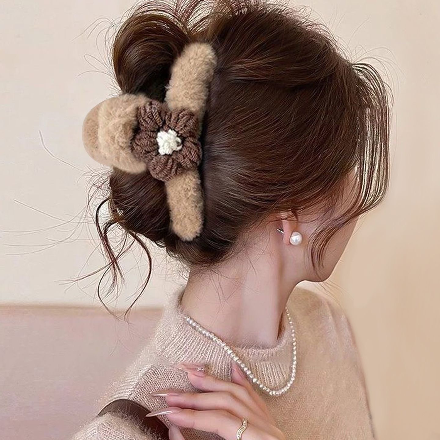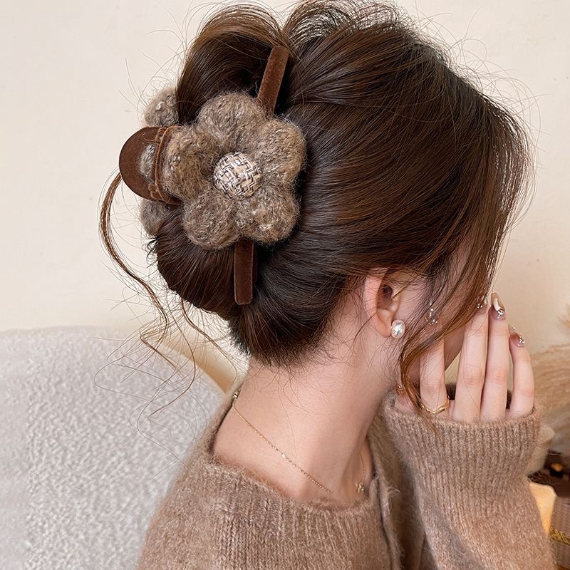 秋冬毛绒花朵蝴蝶结抓夹女高级感2025新款发夹后脑勺鲨鱼夹子头饰