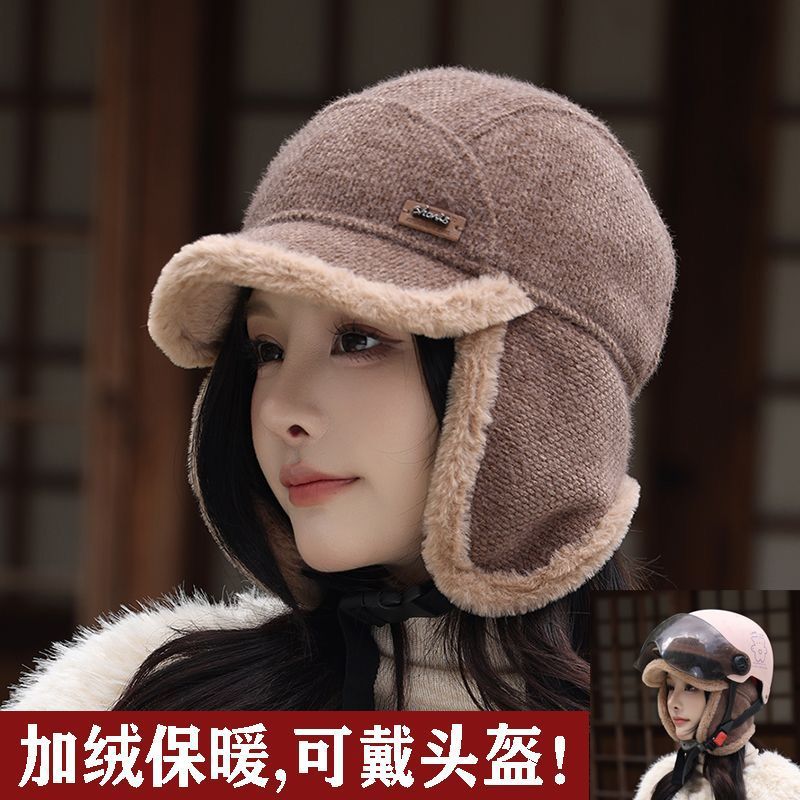 帽子女款保暖户外骑车防寒护耳雷锋帽冬季加绒加厚鸭舌飞行员帽男