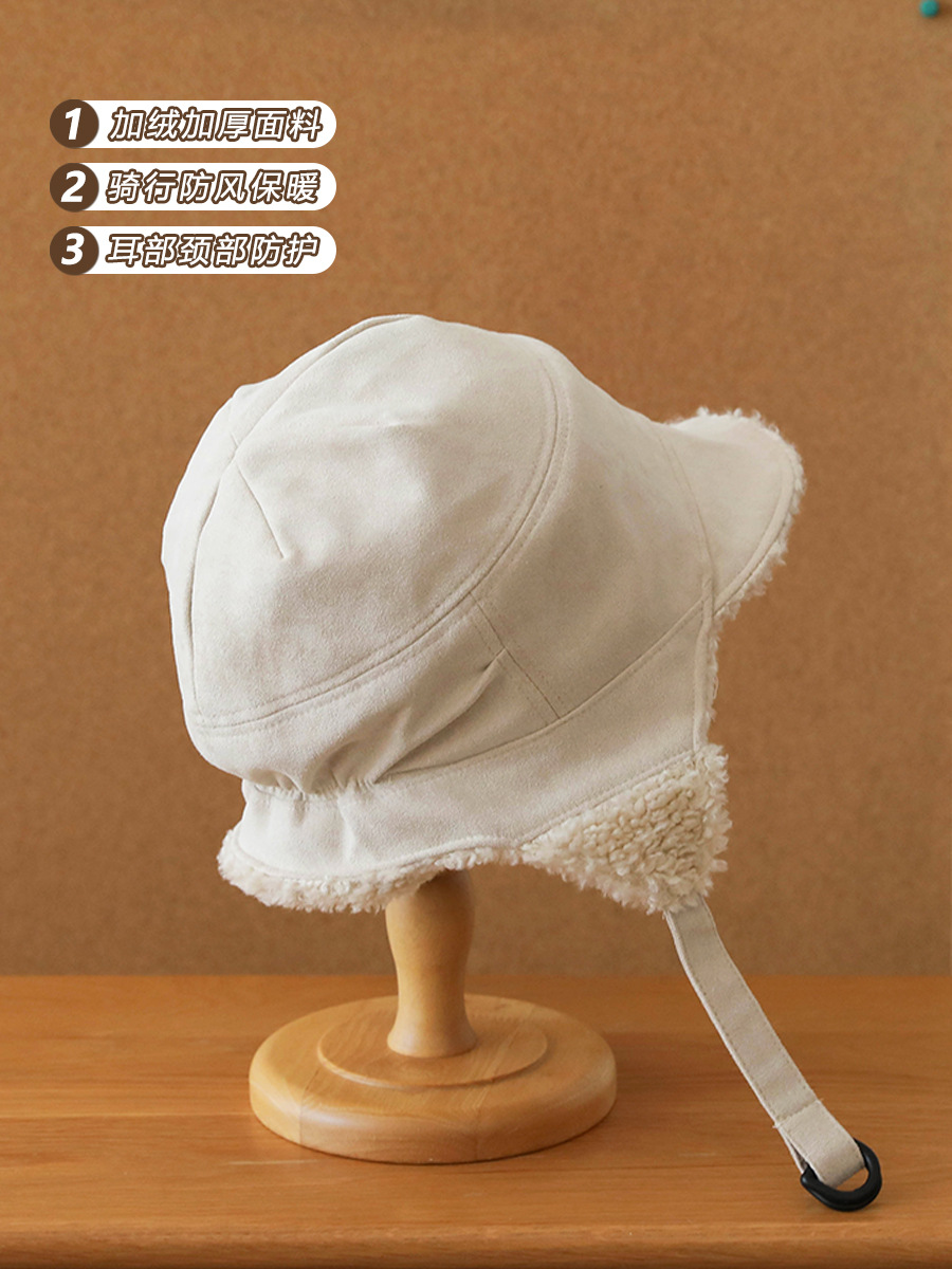 日系加绒羊羔绒飞行员帽子女冬季保暖护耳帽加厚防寒毛绒雷锋帽男