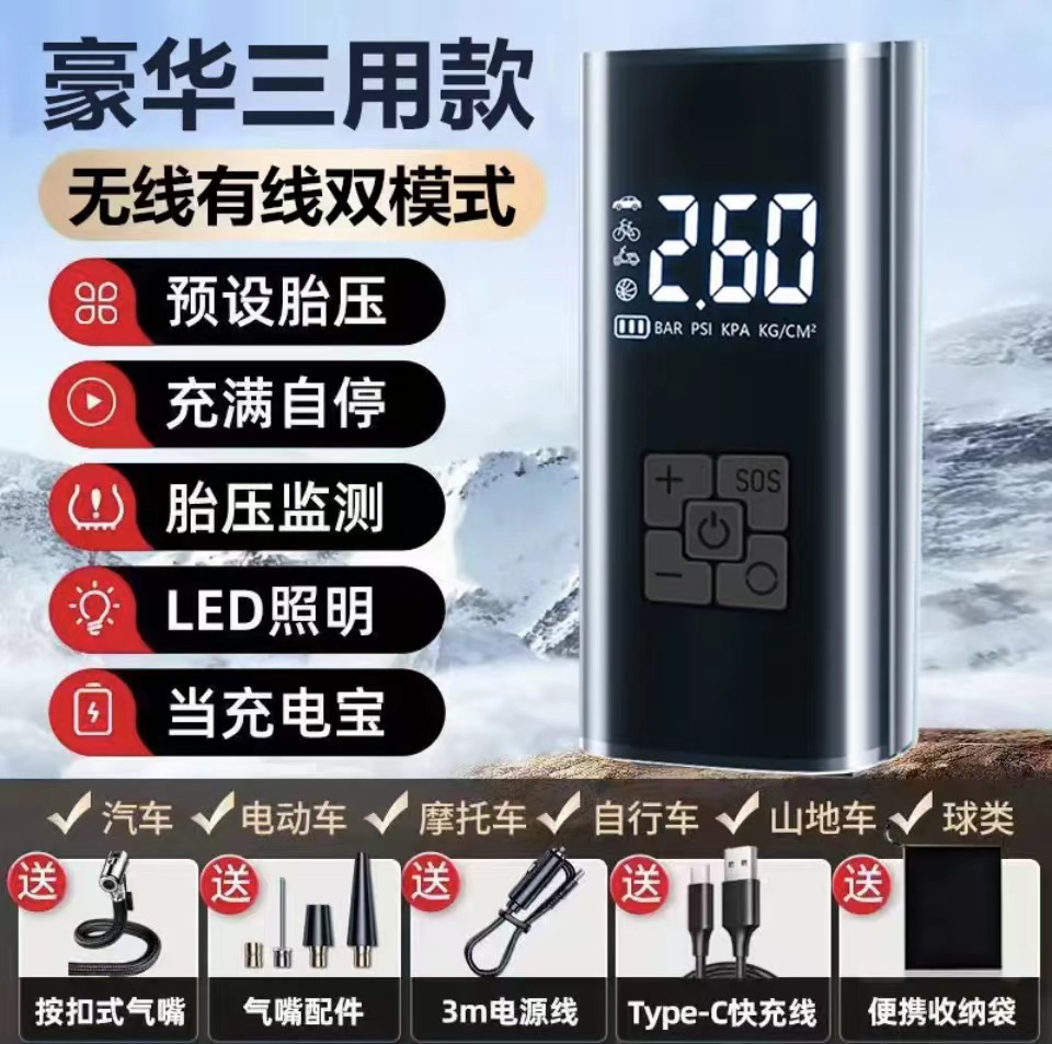 车载充气泵打气筒轿车汽车用轮胎大功率便携式电动冲气无线电