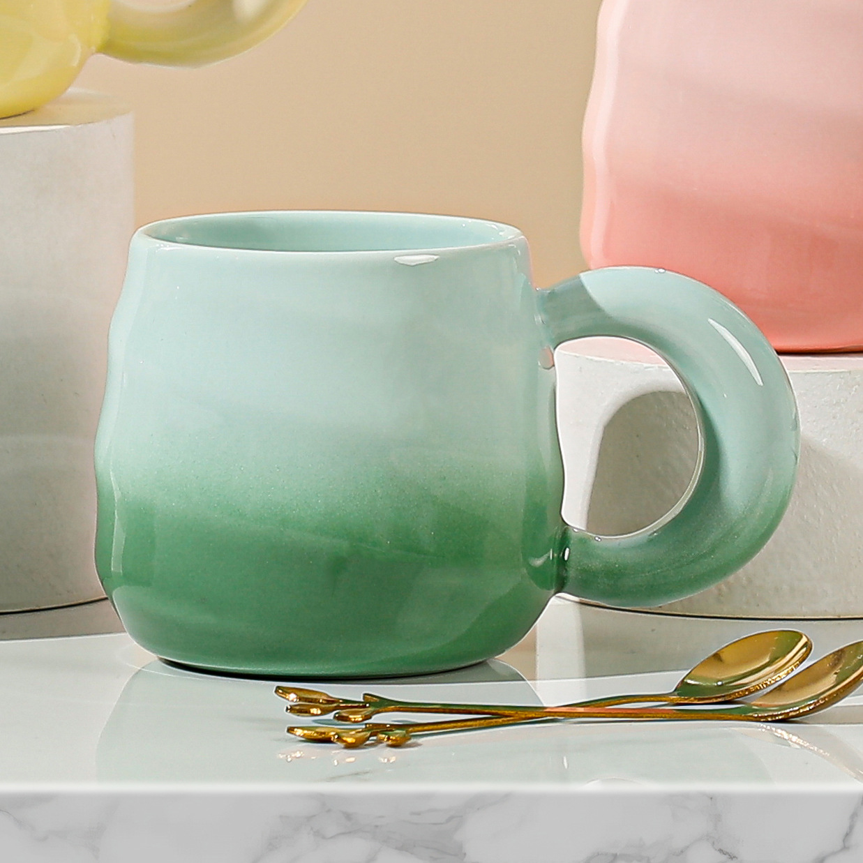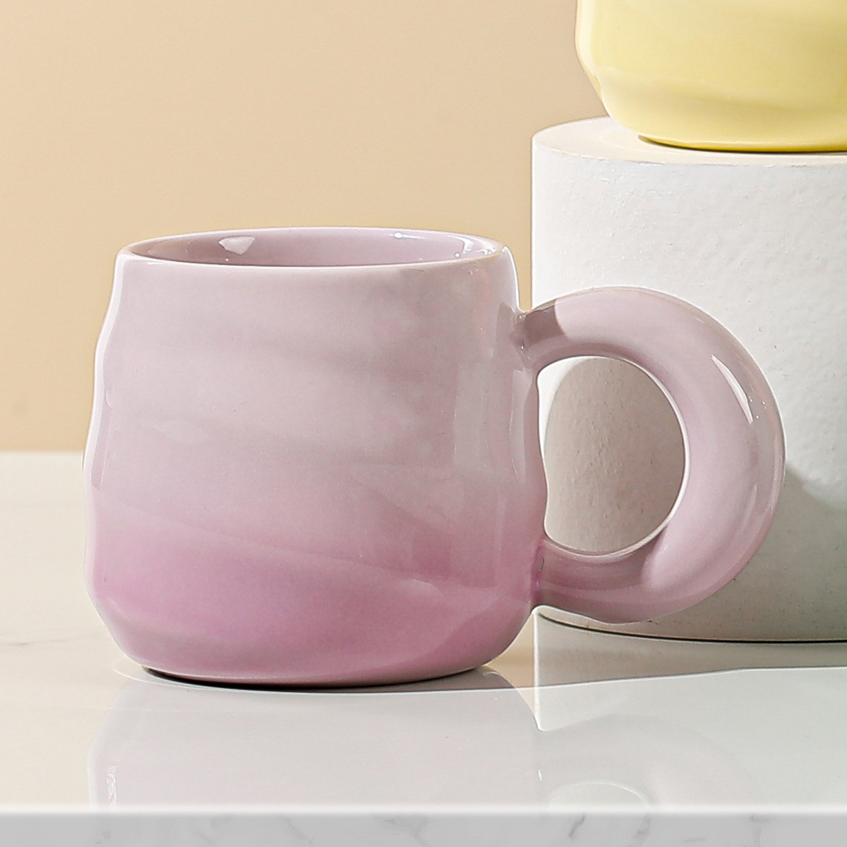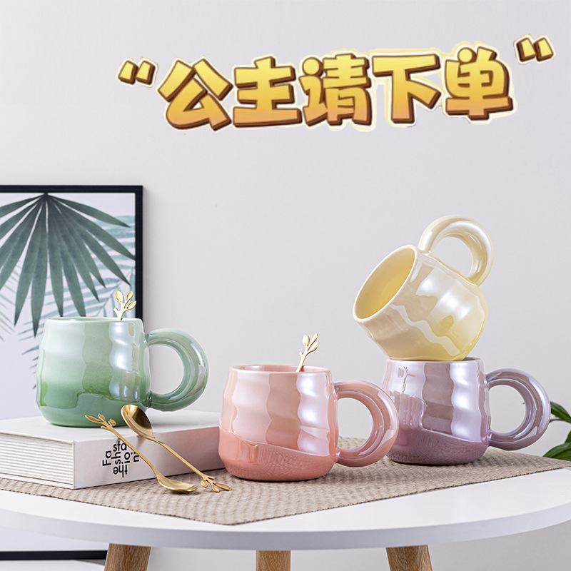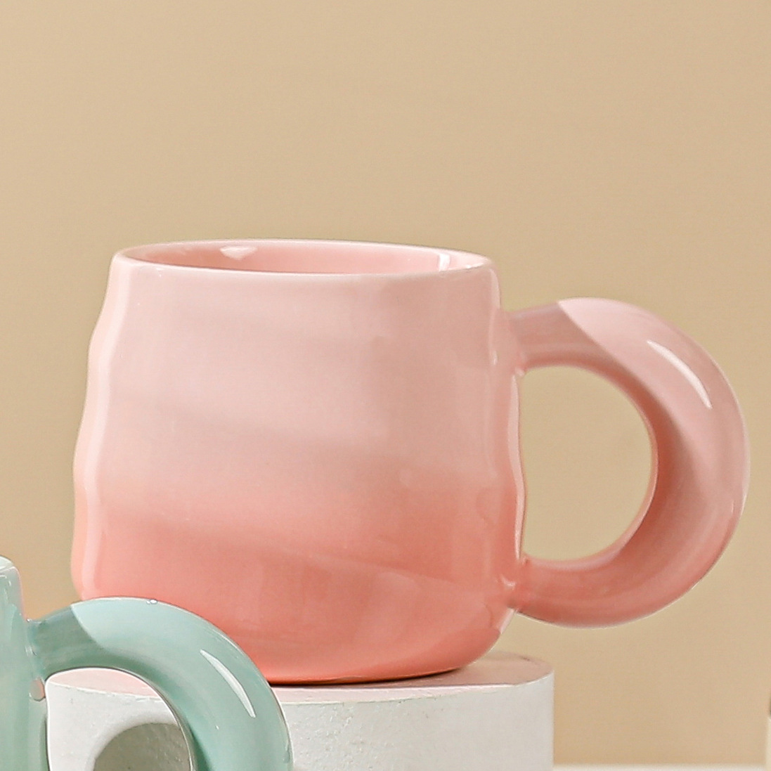 ins风渐变螺纹陶瓷杯高颜值马卡龙奶油风马克杯网红办公室水杯