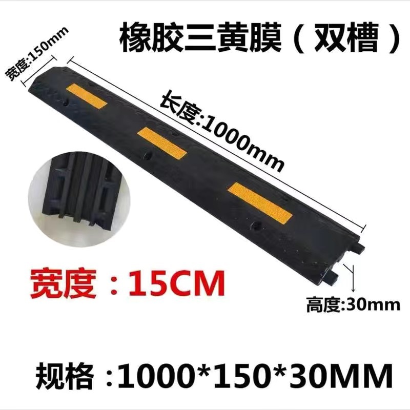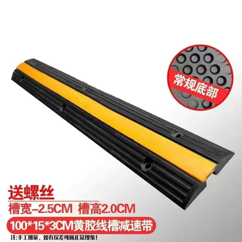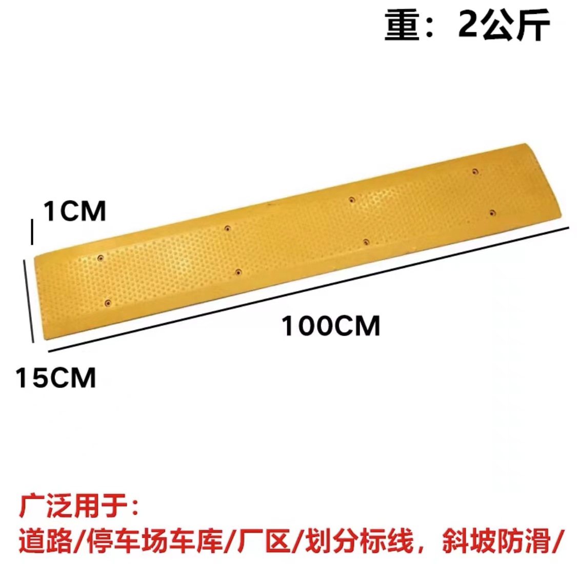 微型橡胶减速带2cm高车位分割线斜坡限速板自行车缓冲带黄黑斜纹
