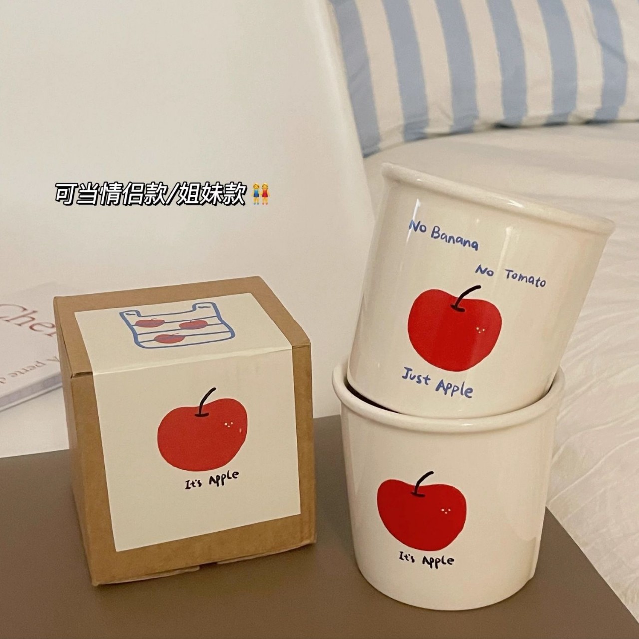 可爱翻口陶瓷杯樱桃杯仿纸杯陶瓷杯情侣咖啡杯小猫牛奶早餐杯手握