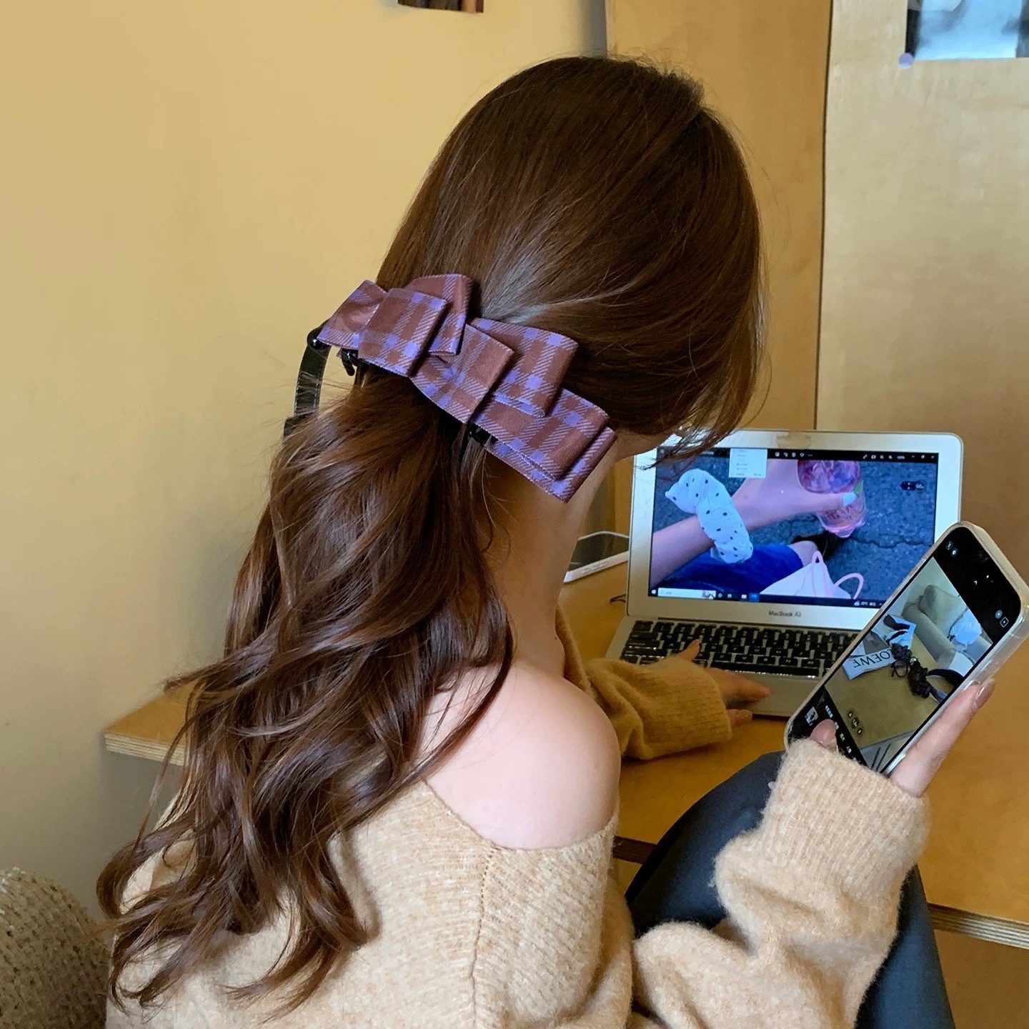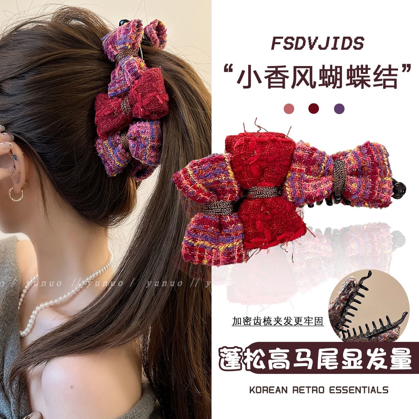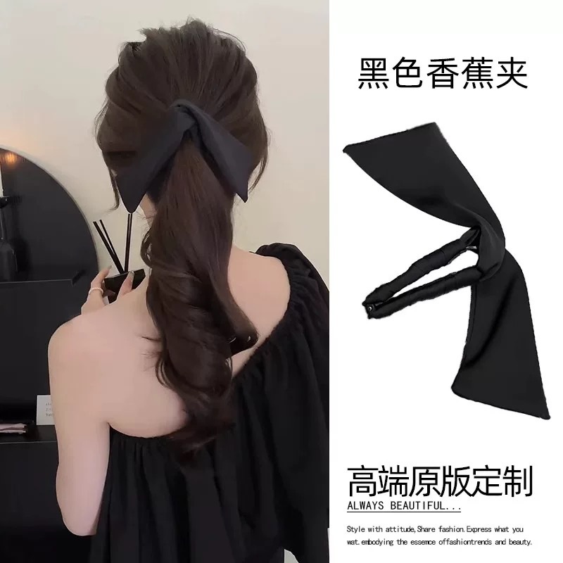 韩系蝴蝶结香蕉夹发夹女秋冬高级感精致后脑勺盘发马尾夹竖夹头饰