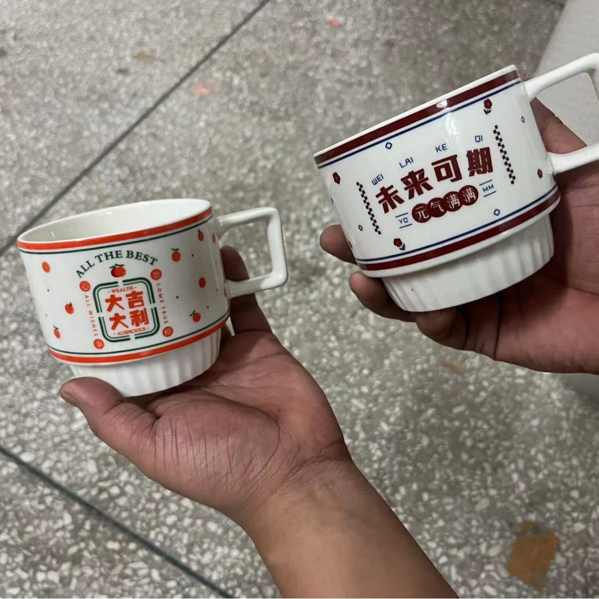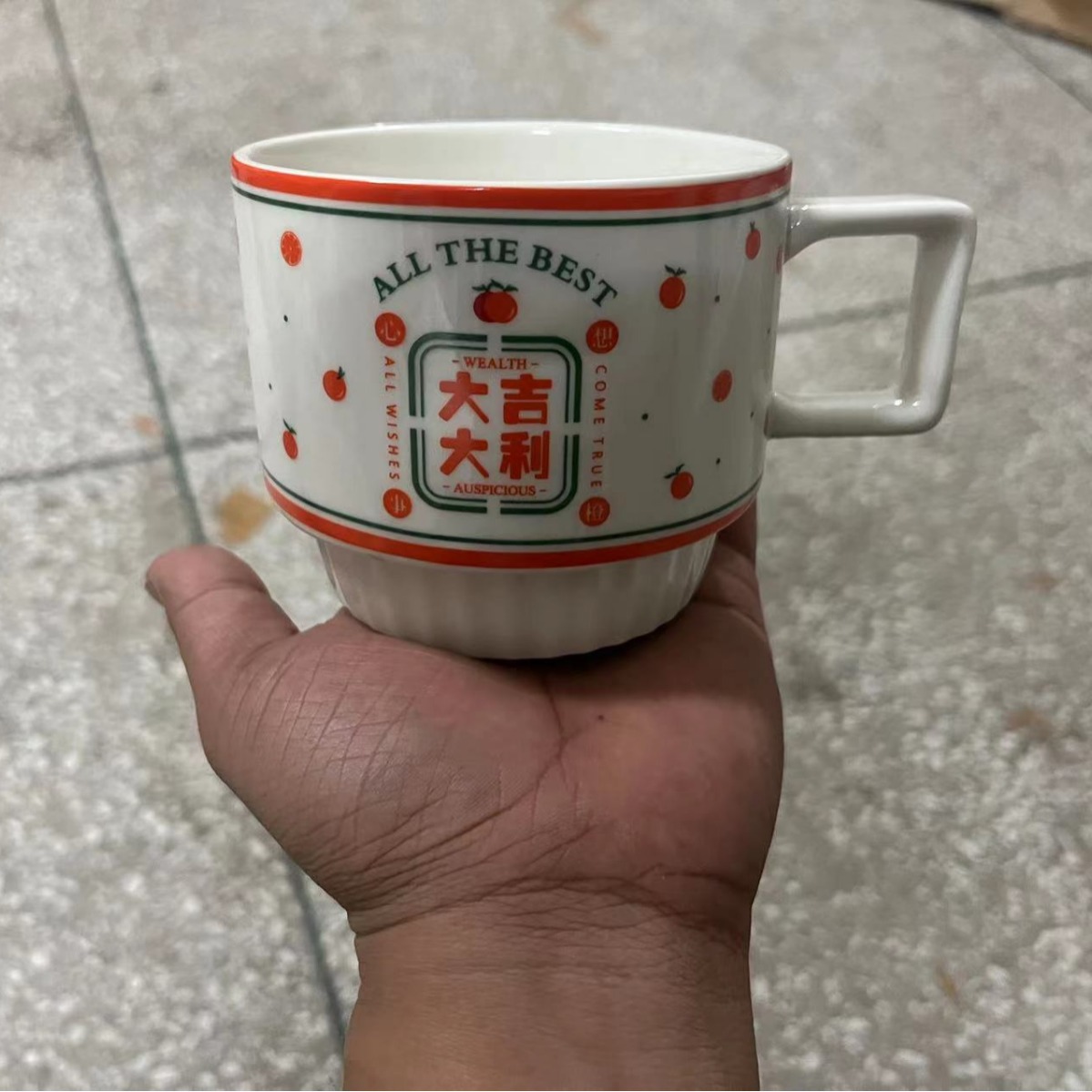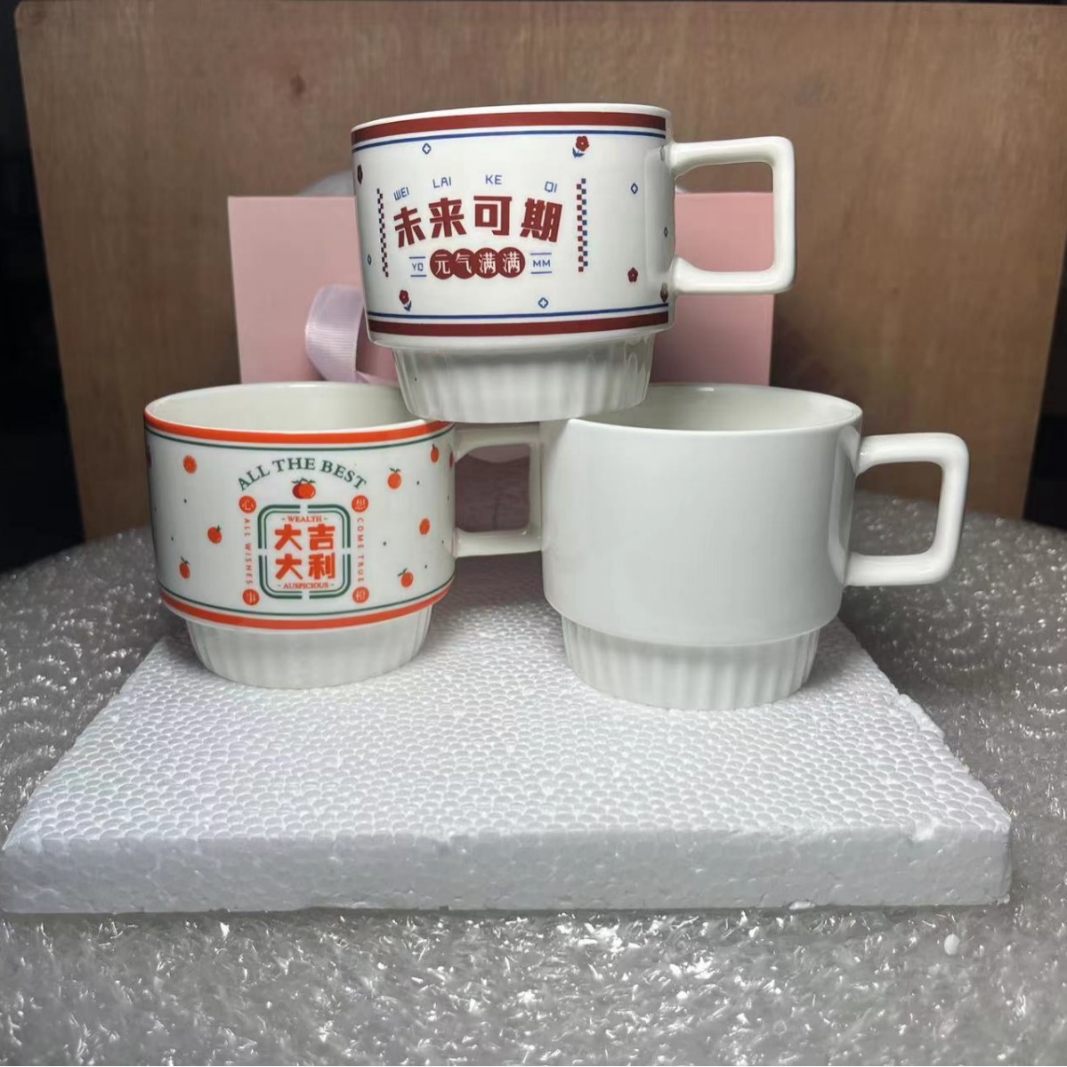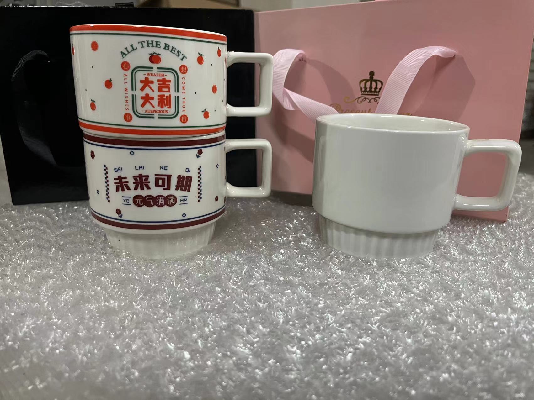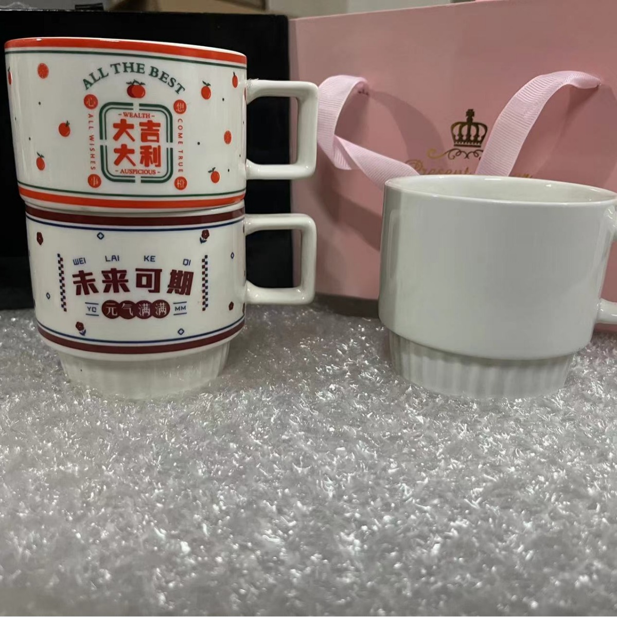 陶瓷叠叠杯套装大吉大利礼品杯如意欢喜陶瓷杯情侣对杯礼盒伴手礼