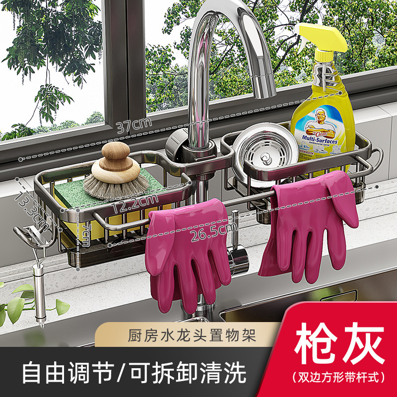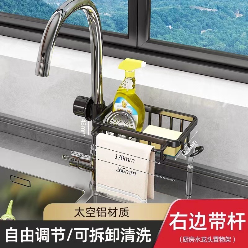 水龙头置物架太空铝厨房水槽收纳架家用抹布带沥水盘多功能挂篮子