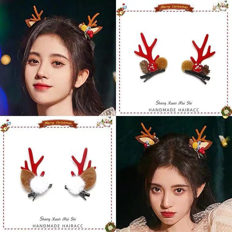 圣诞节头饰鹿角发夹女侧边刘海夹发卡森林系儿童麋鹿夹子发箍饰品