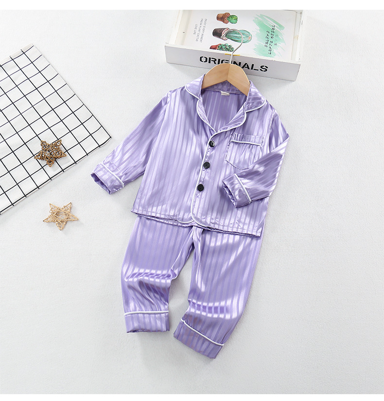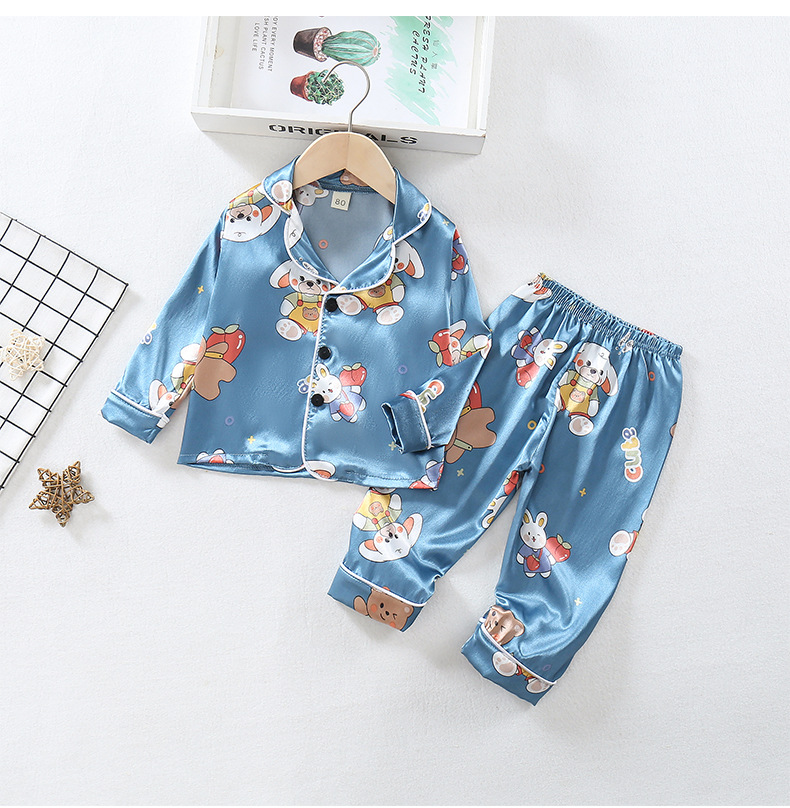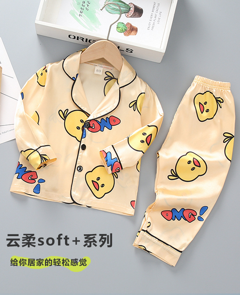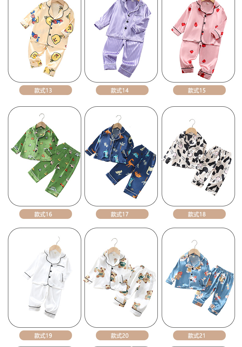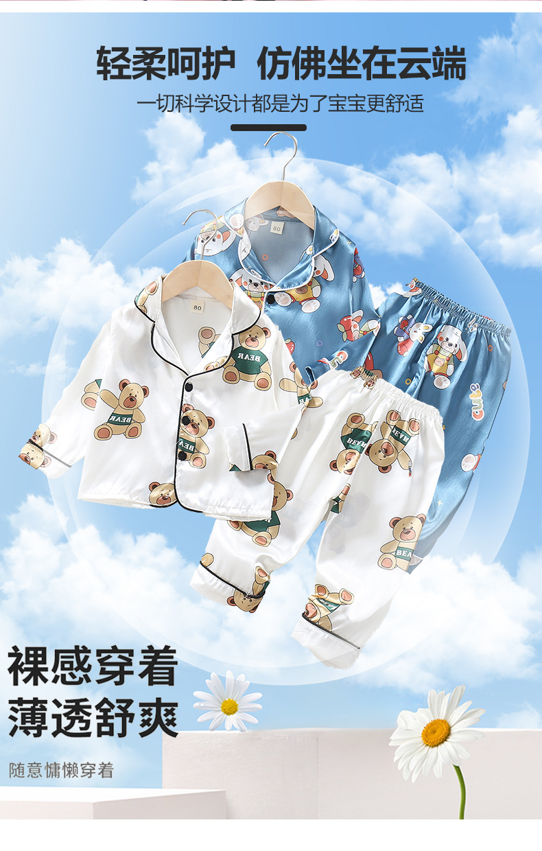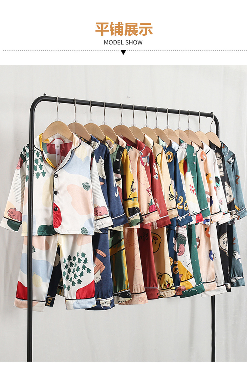 外贸儿童夏季冰丝家居服 棉绸童装睡衣 仿真丝男女童长袖空调服