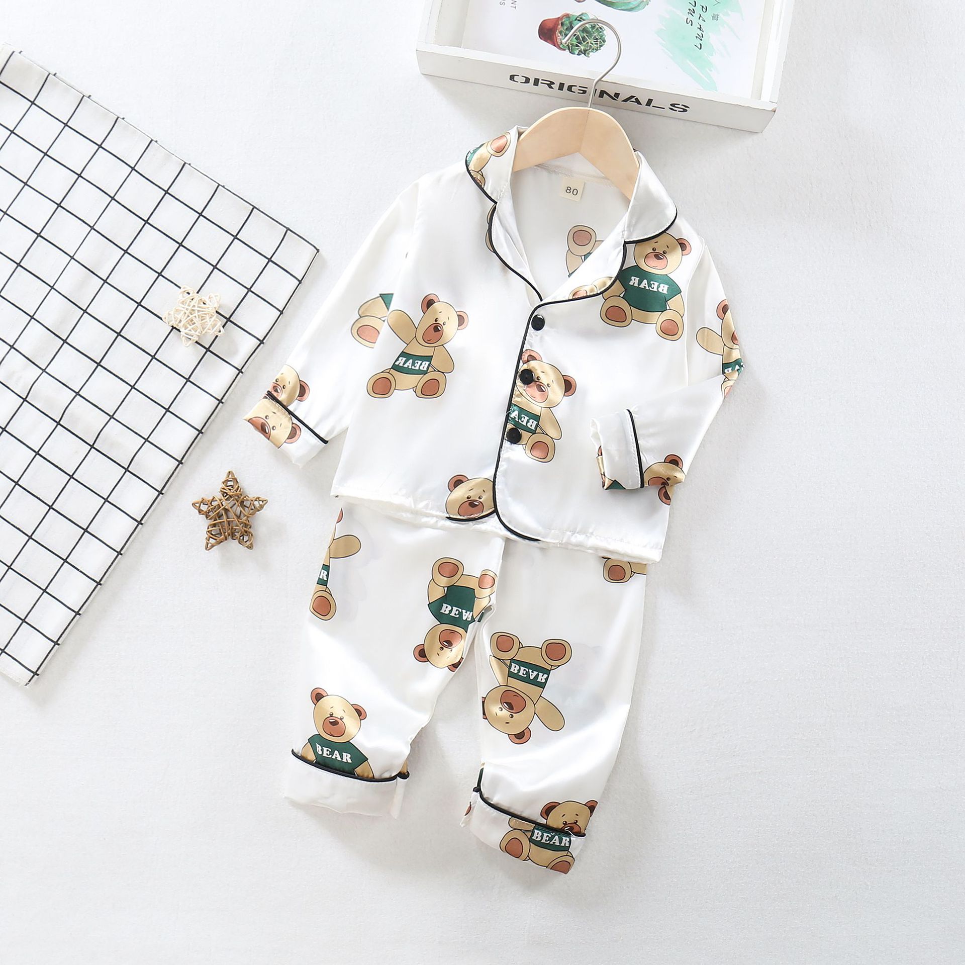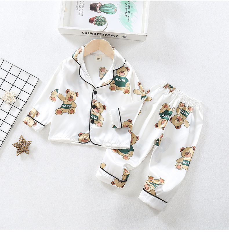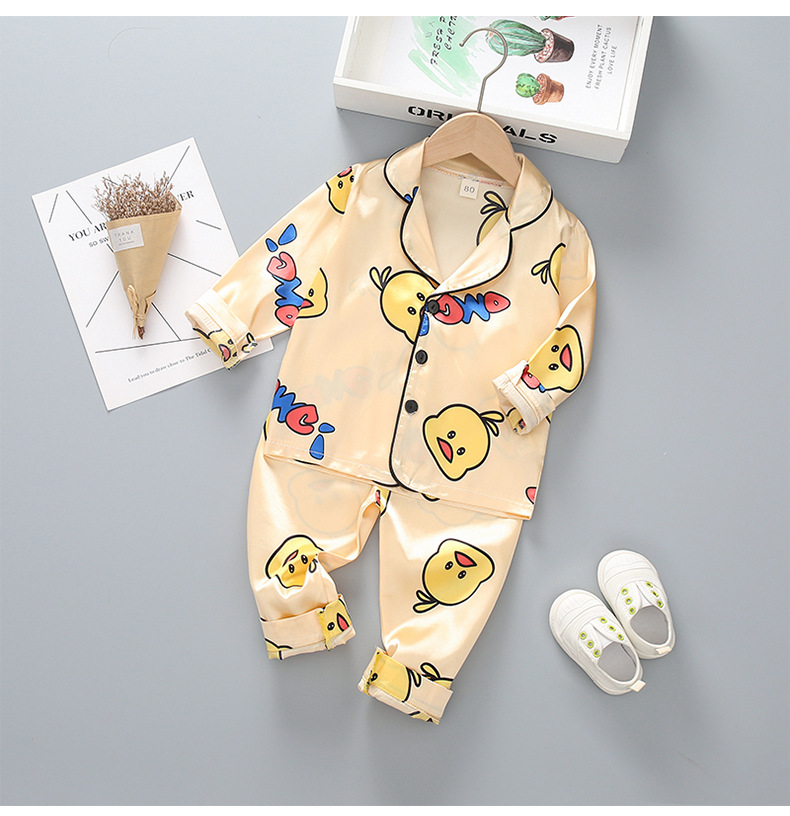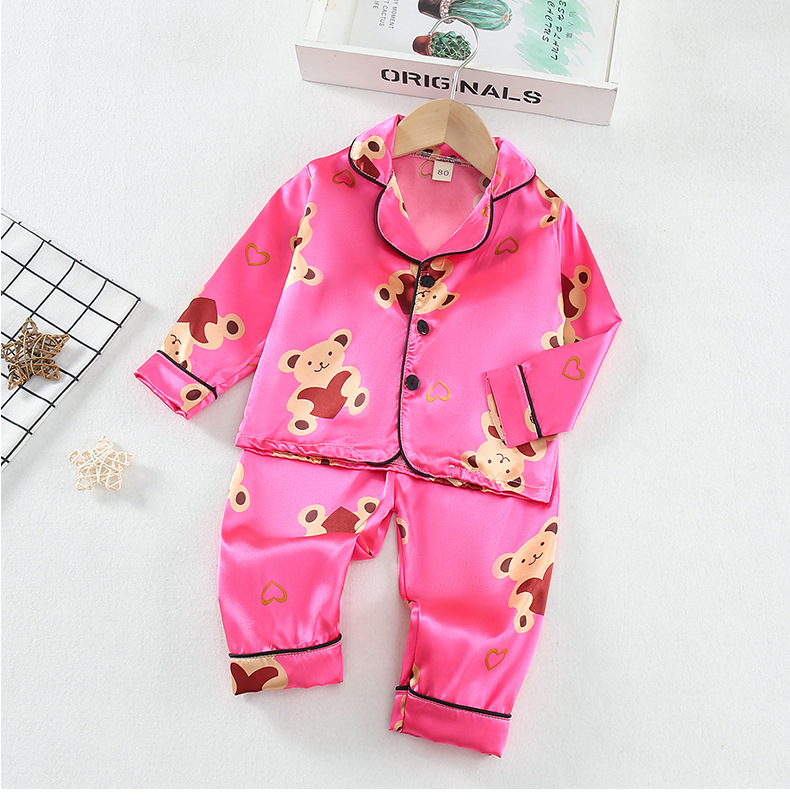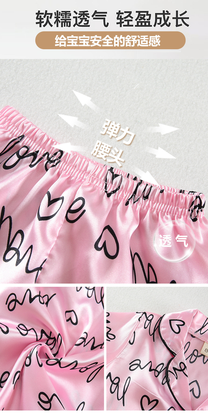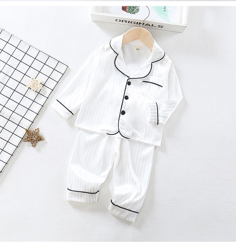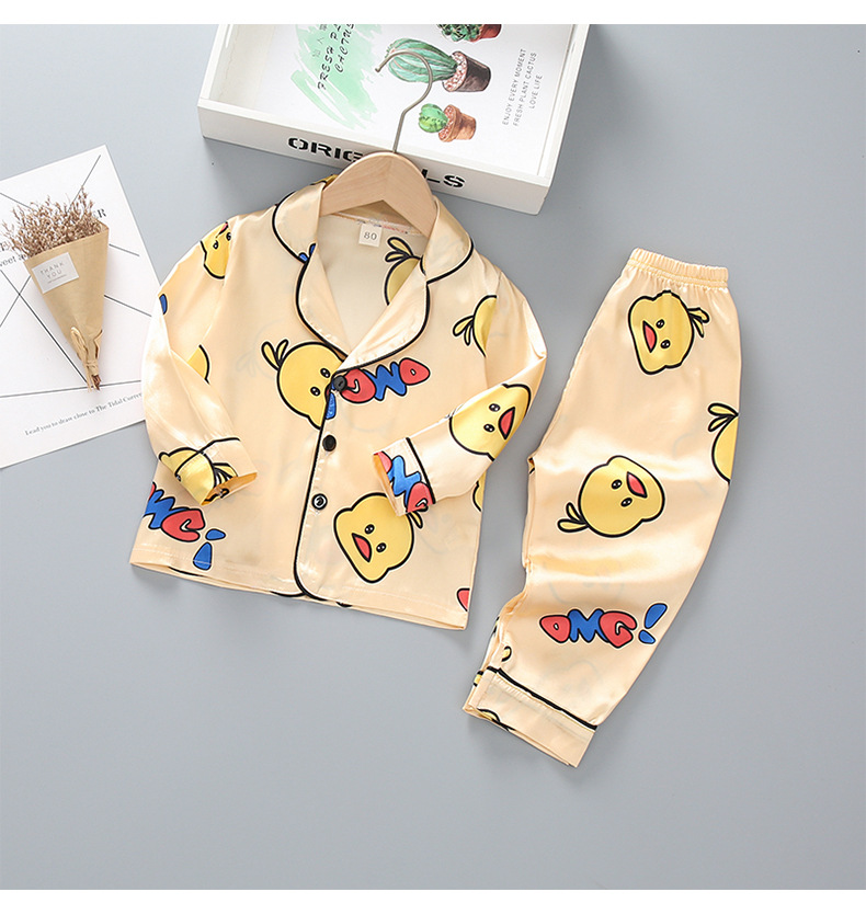 外贸儿童夏季冰丝家居服 棉绸童装睡衣 仿真丝男女童长袖空调服