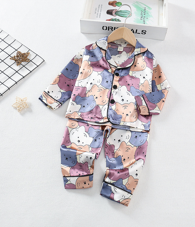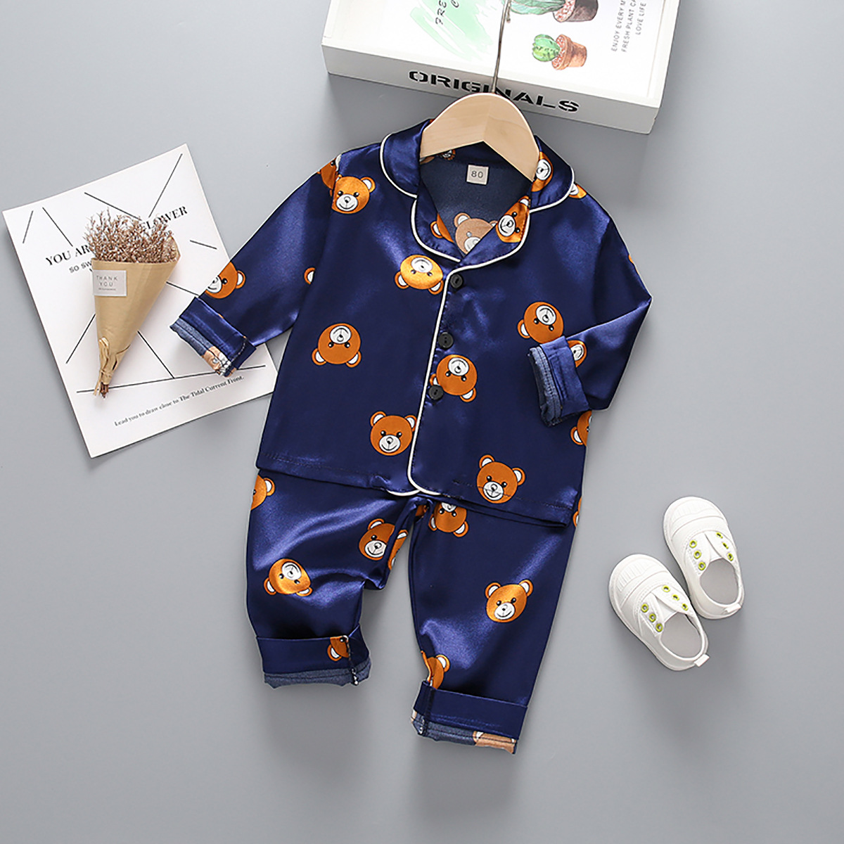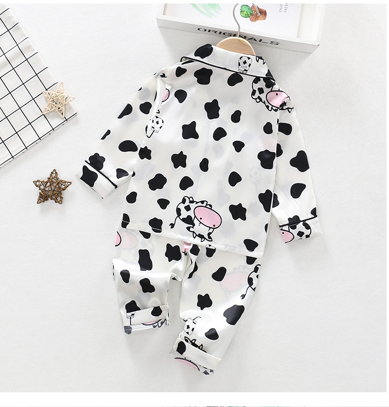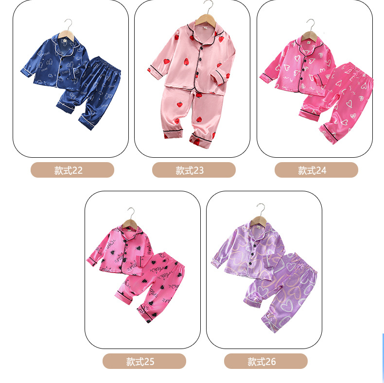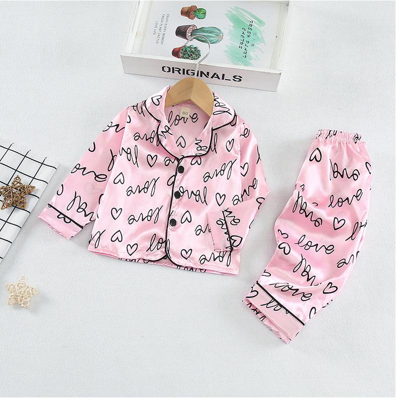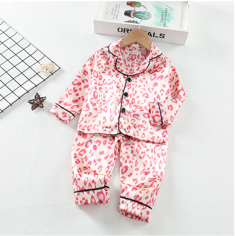 外贸儿童夏季冰丝家居服 棉绸童装睡衣 仿真丝男女童长袖空调服