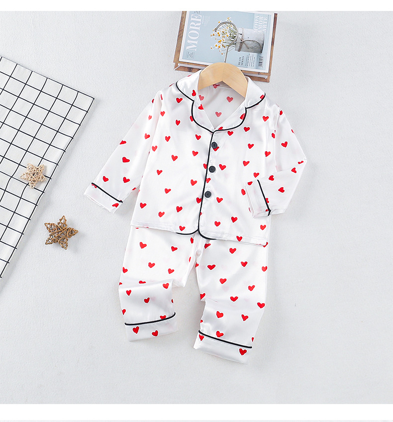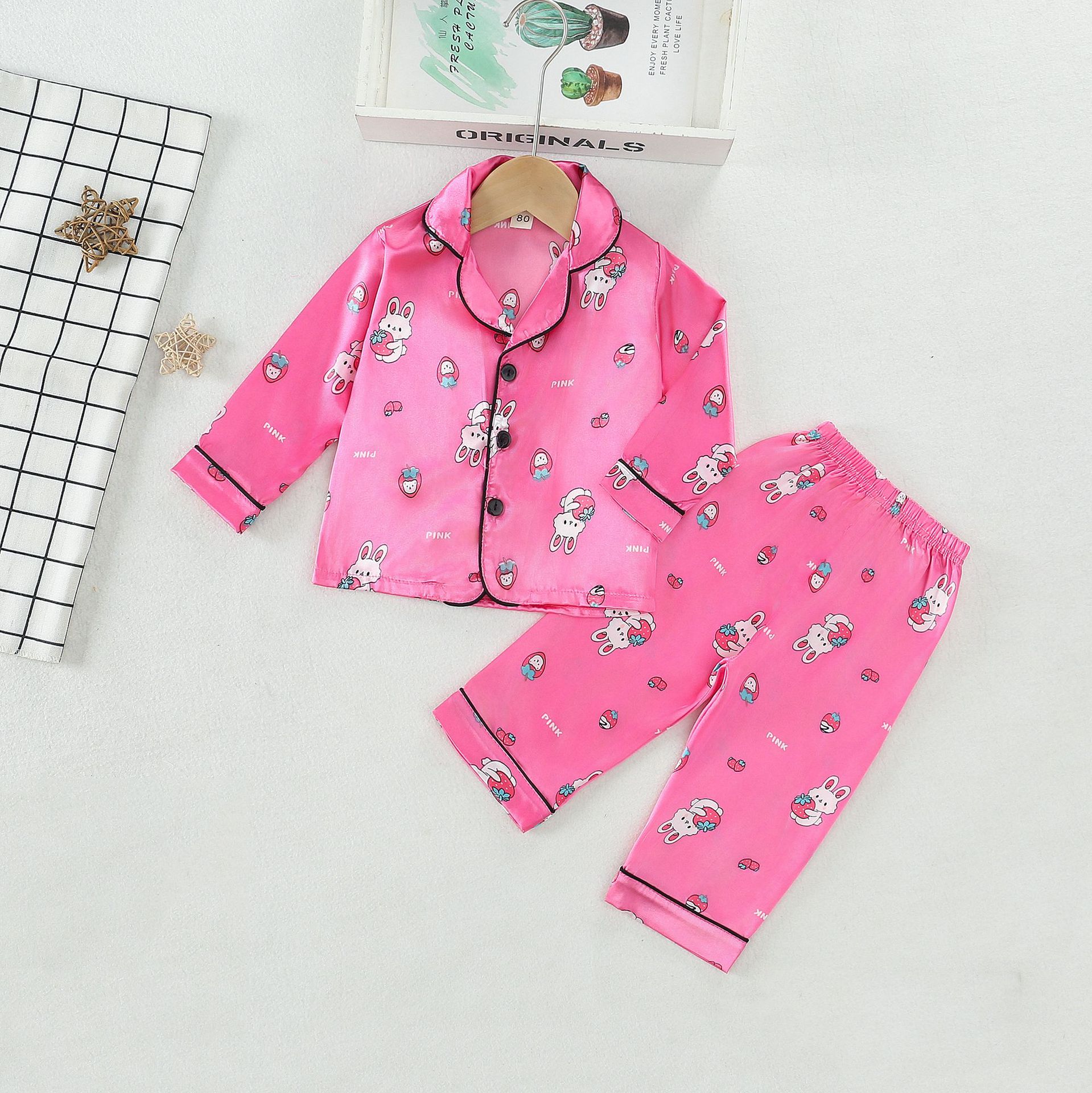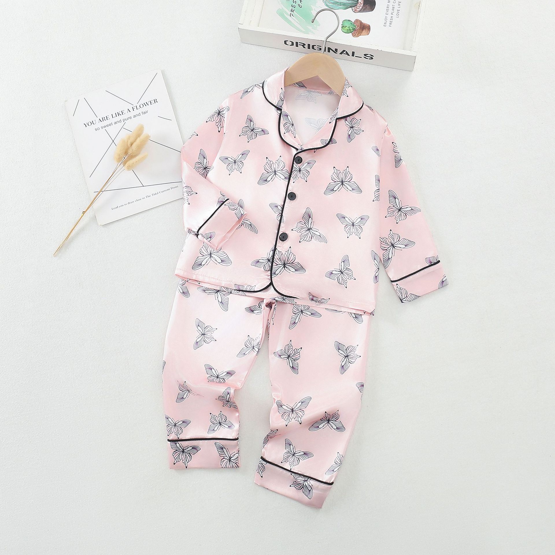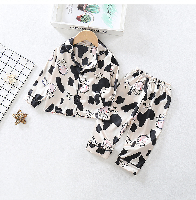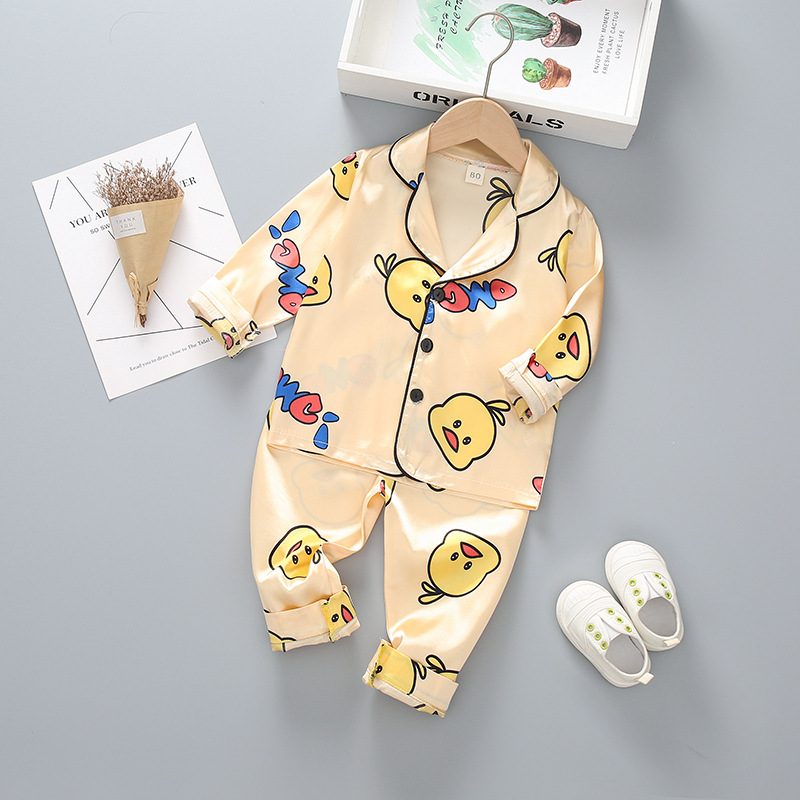 外贸儿童夏季冰丝家居服 棉绸童装睡衣 仿真丝男女童长袖空调服