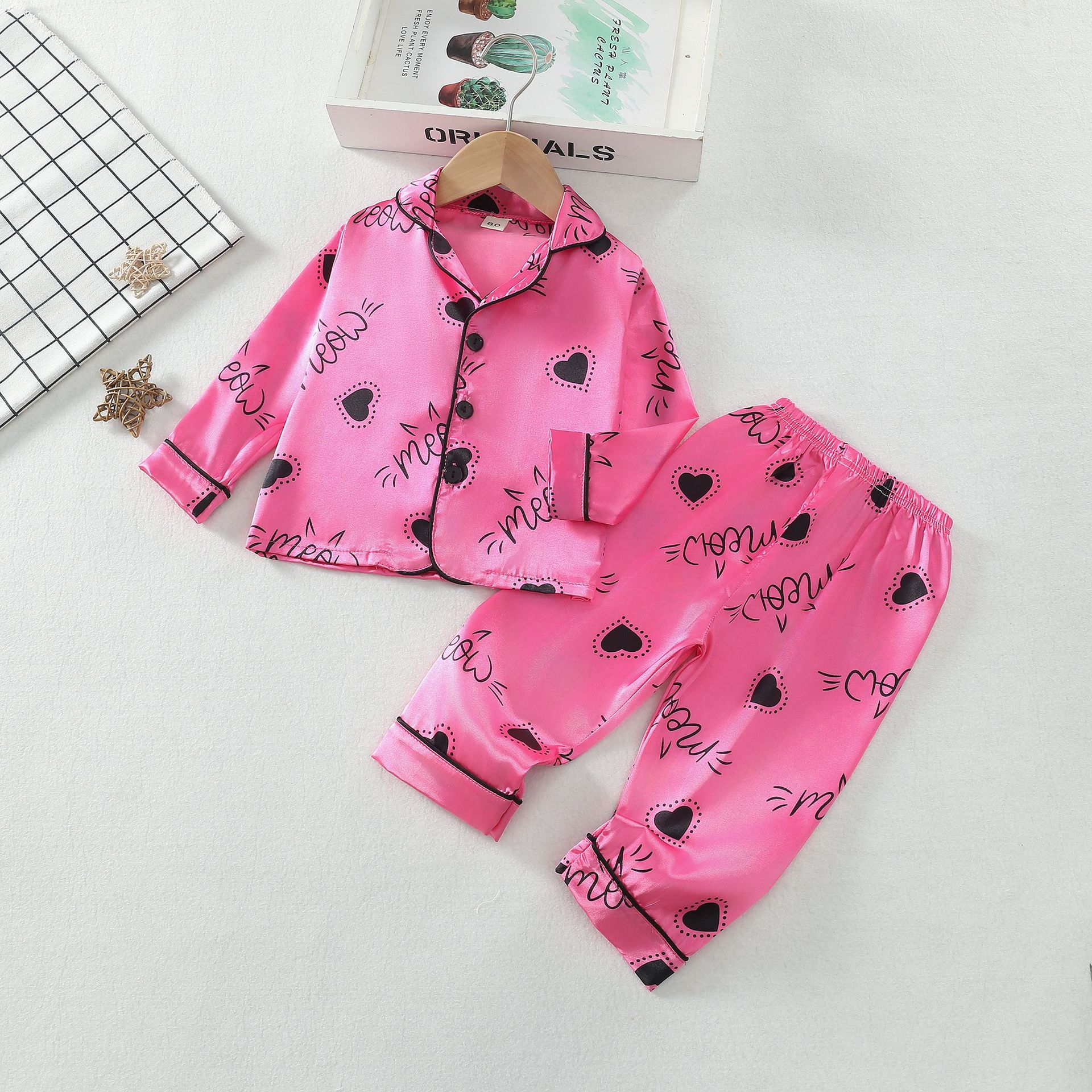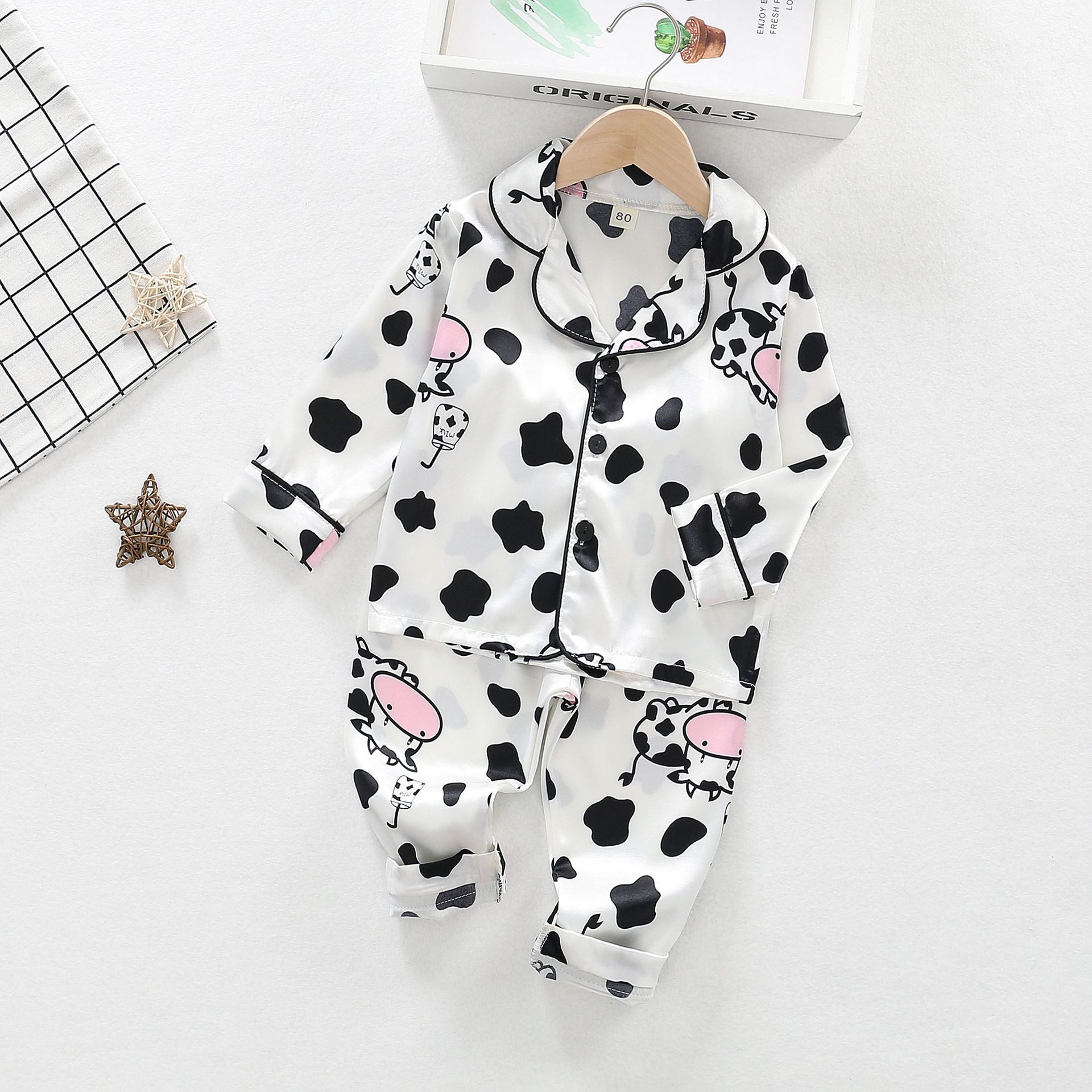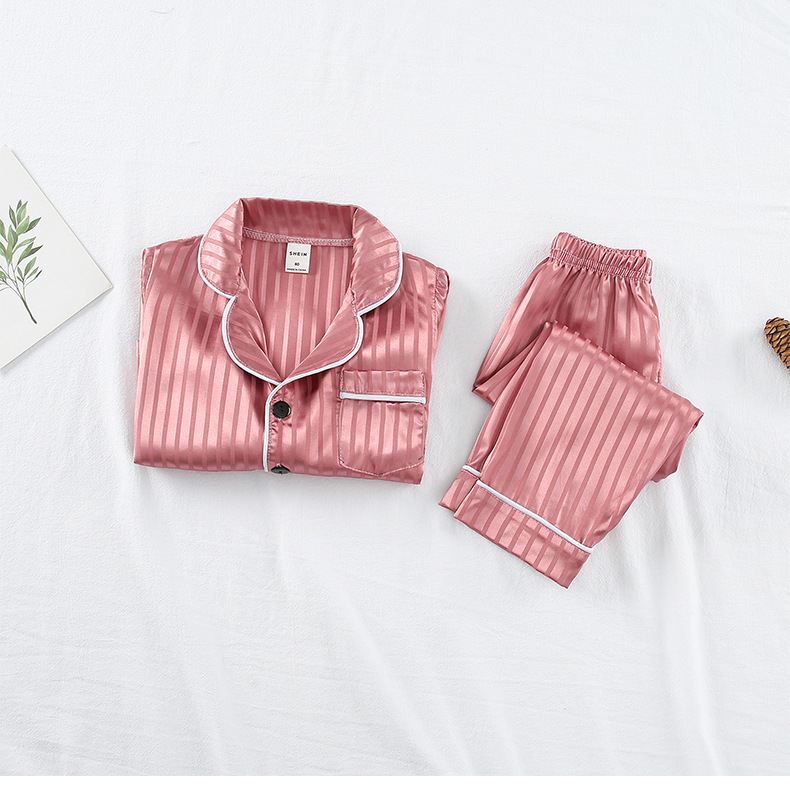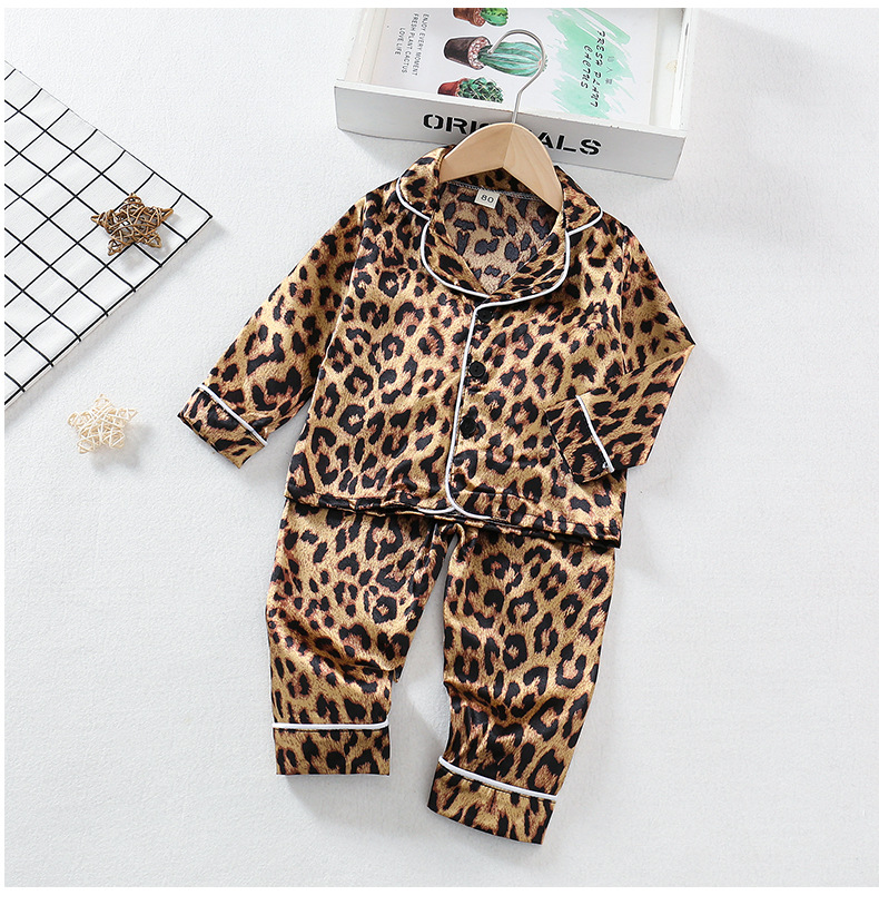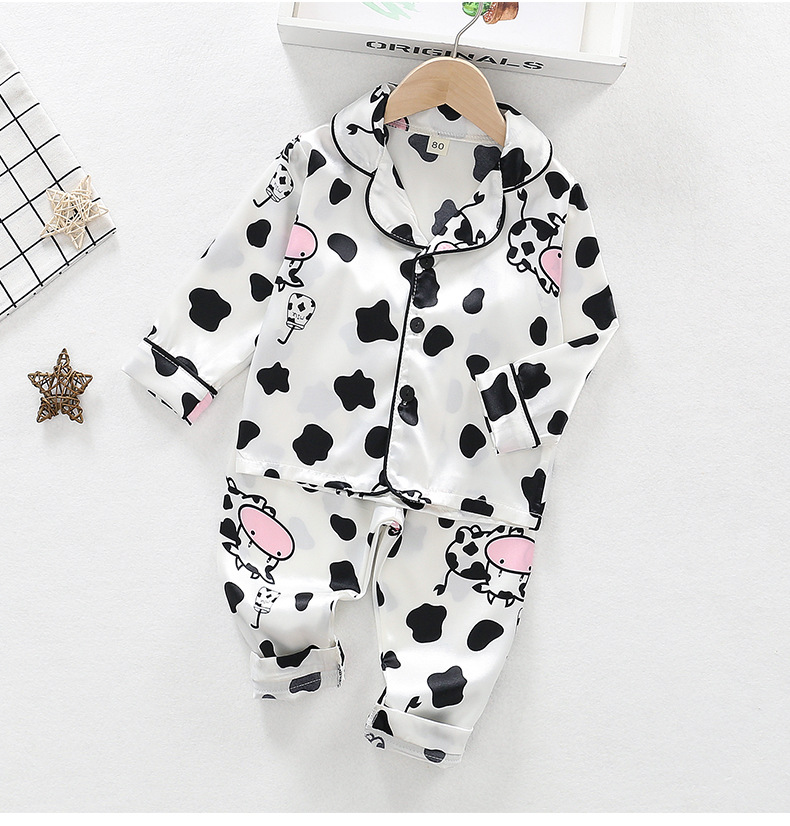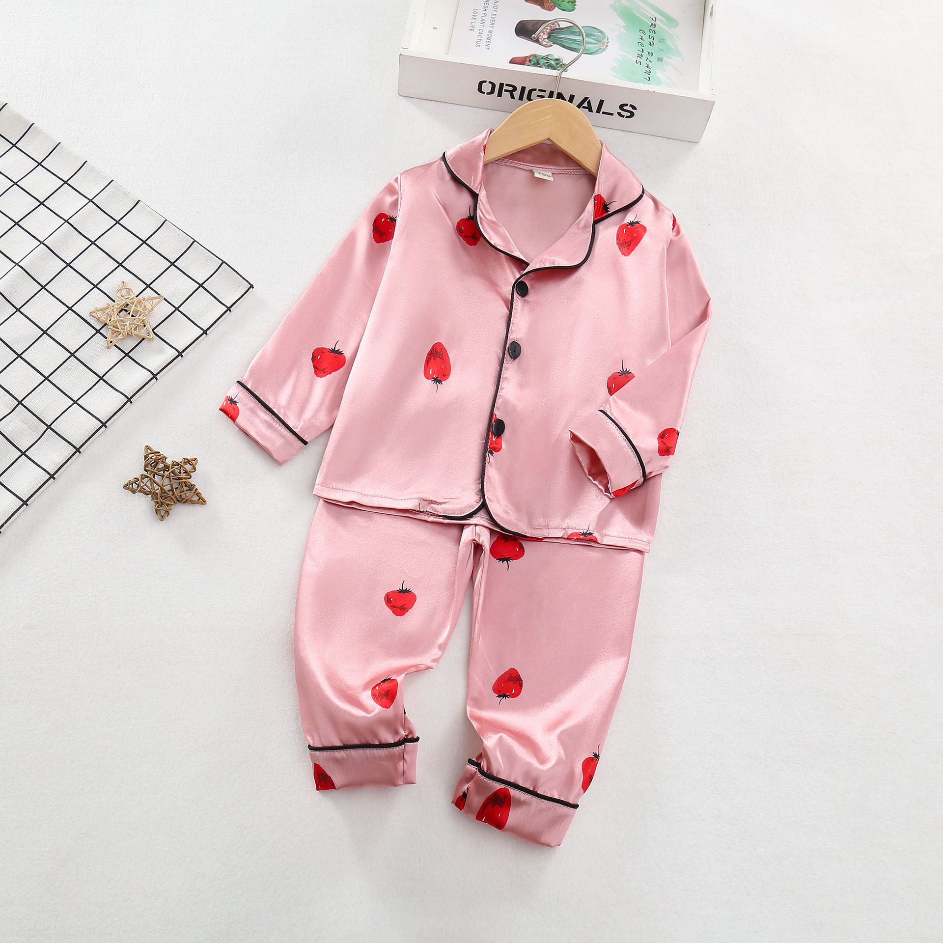外贸儿童夏季冰丝家居服 棉绸童装睡衣 仿真丝男女童长袖空调服