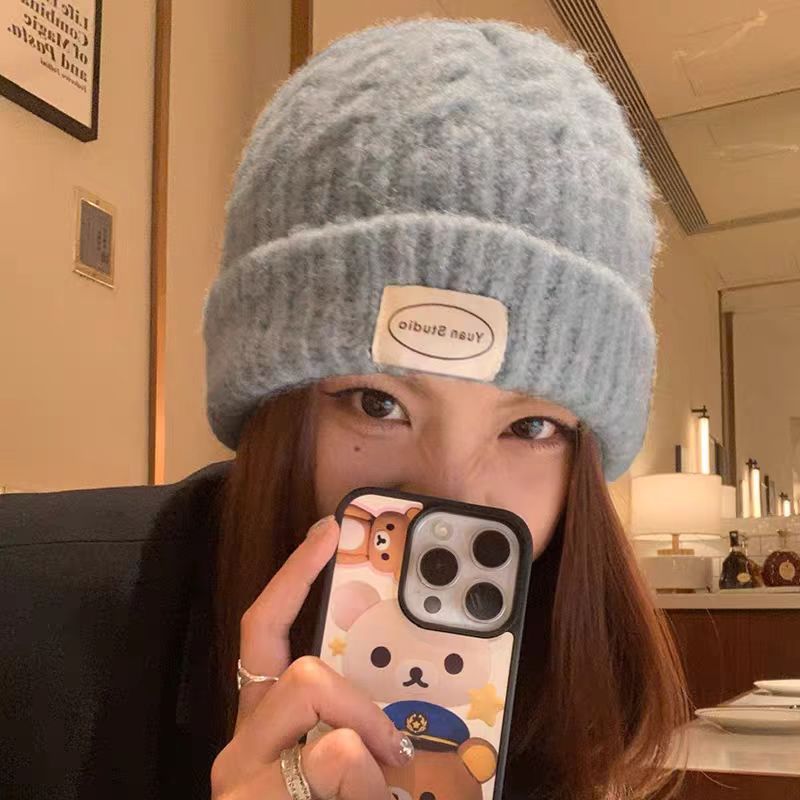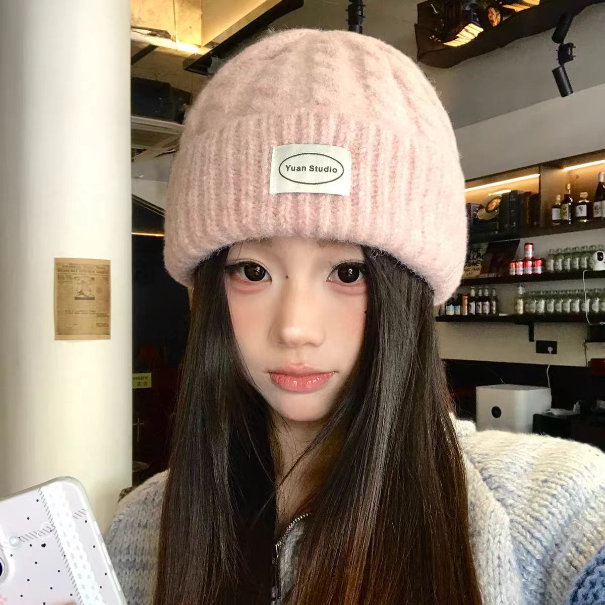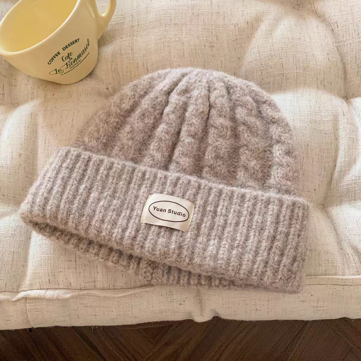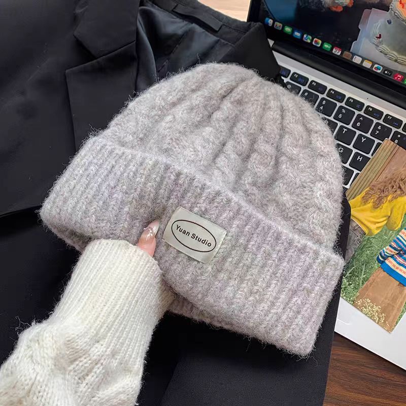 秋冬韩版字母麻花毛线帽保暖加厚护耳休闲百搭纯色编织针织帽冷帽