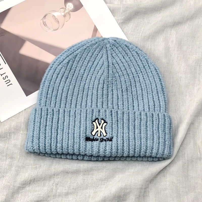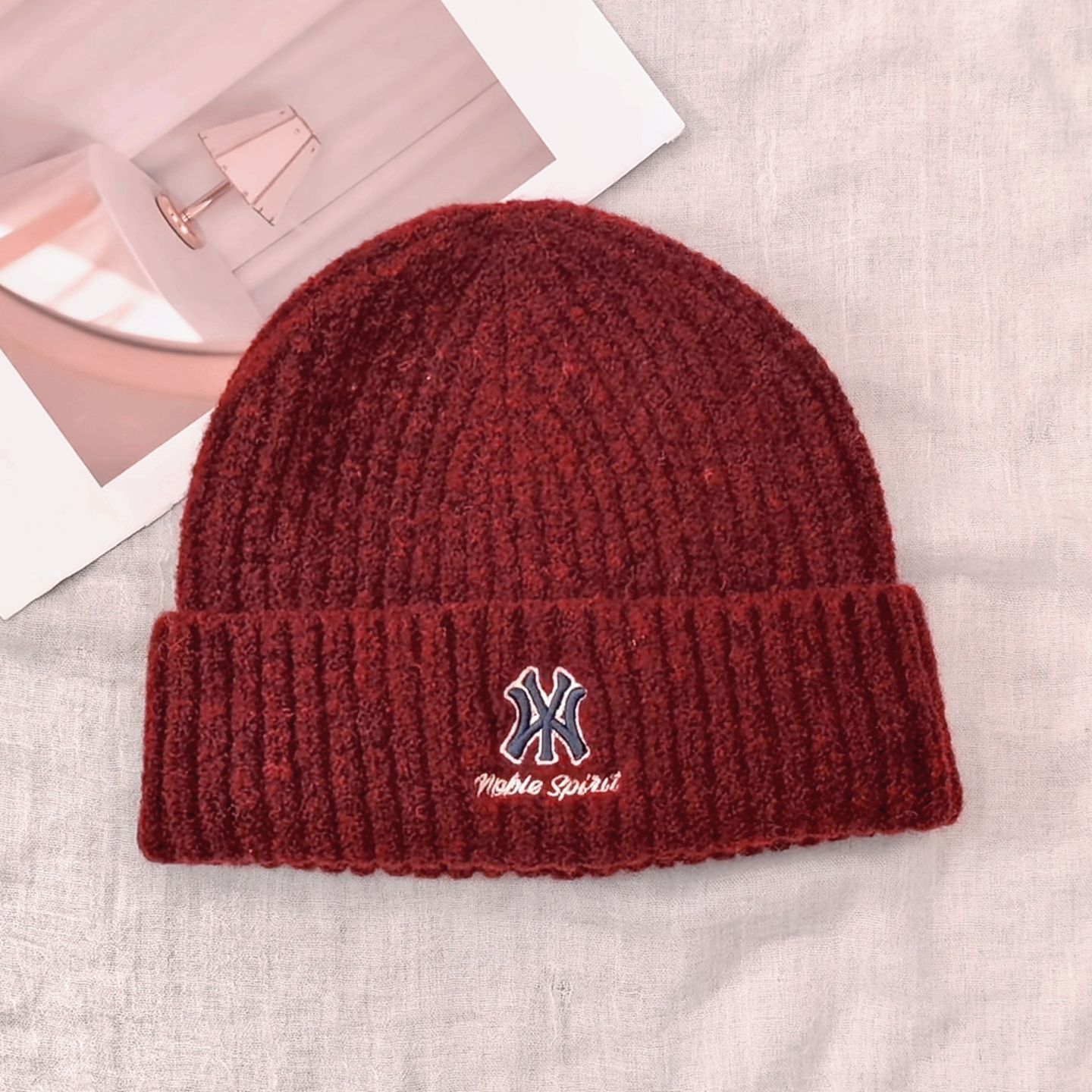 新款毛线帽针织帽秋冬男女同款韩版休闲百搭刺绣字母保暖防寒冷帽