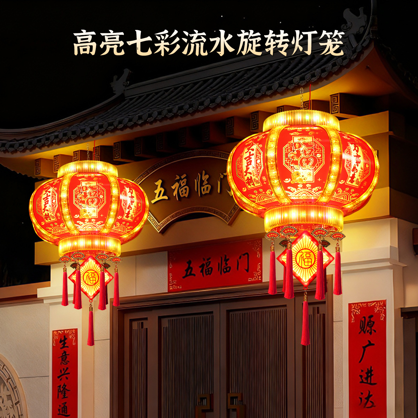新款旋转灯笼挂件七彩led走马灯阳台大门口宫灯挂饰新年装饰批发