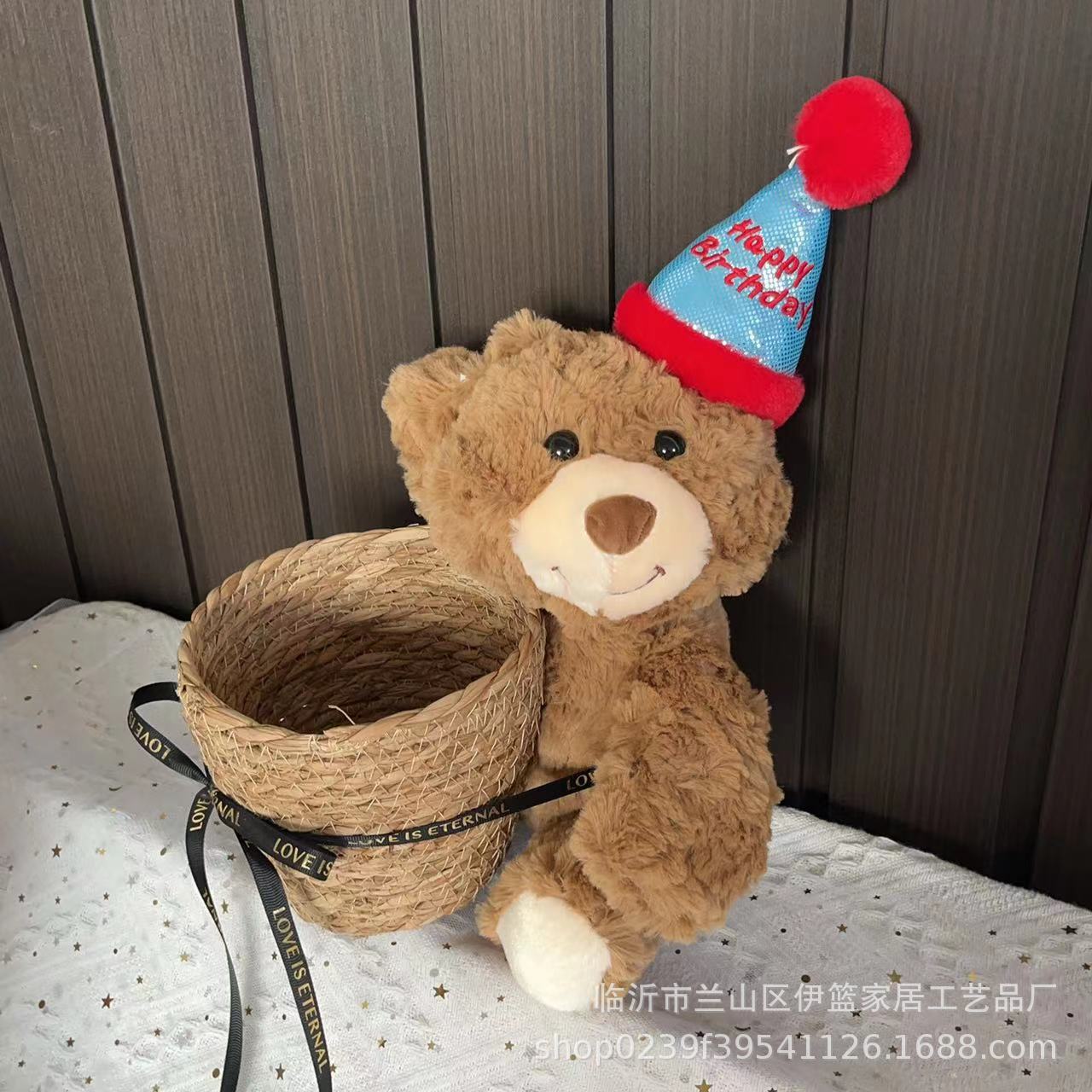 抱抱桶鲜花花束插花diy花艺包装材料草编花篮生日篮圣诞礼物