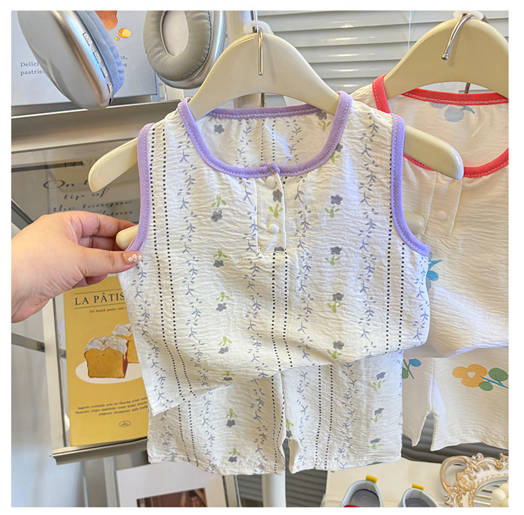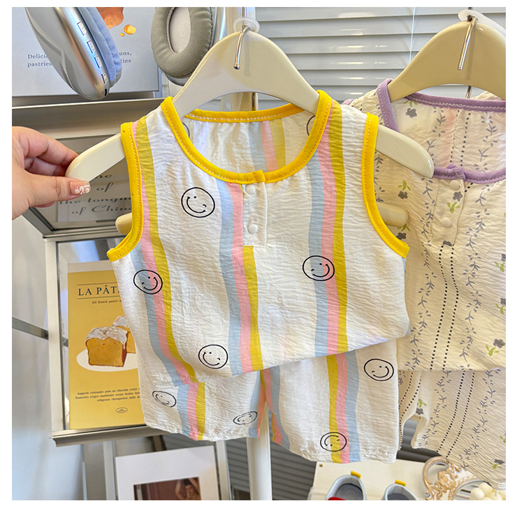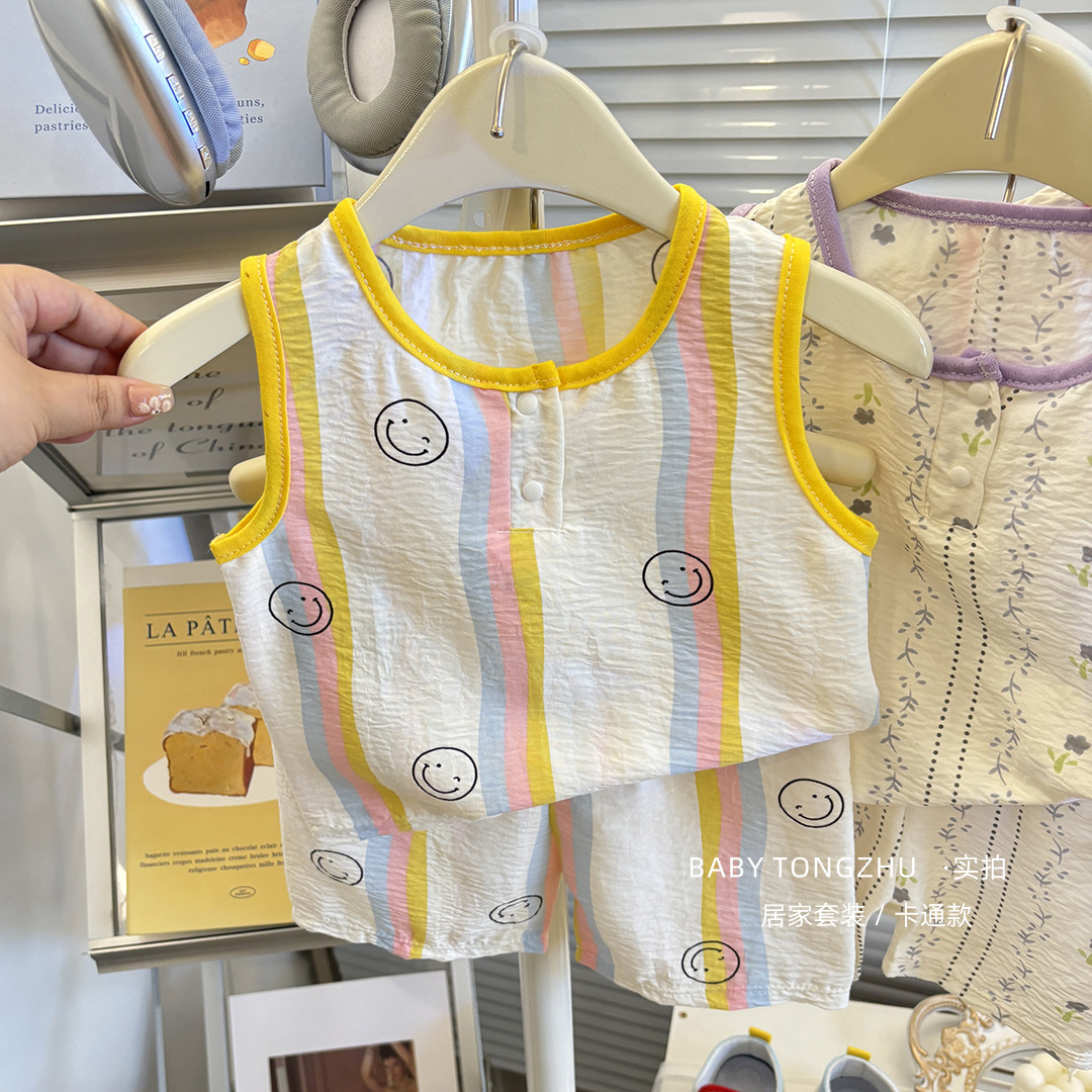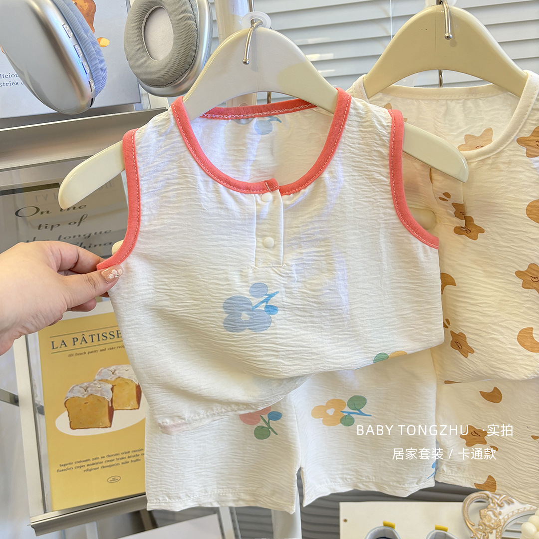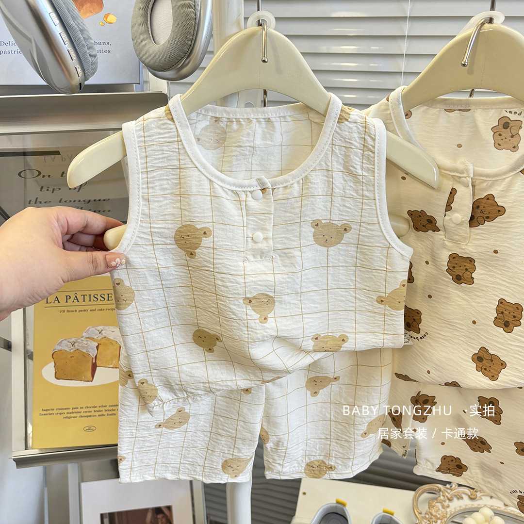 儿童背心套装夏季男女童短裤睡衣宝宝韩版家居服大童无袖短裤套装