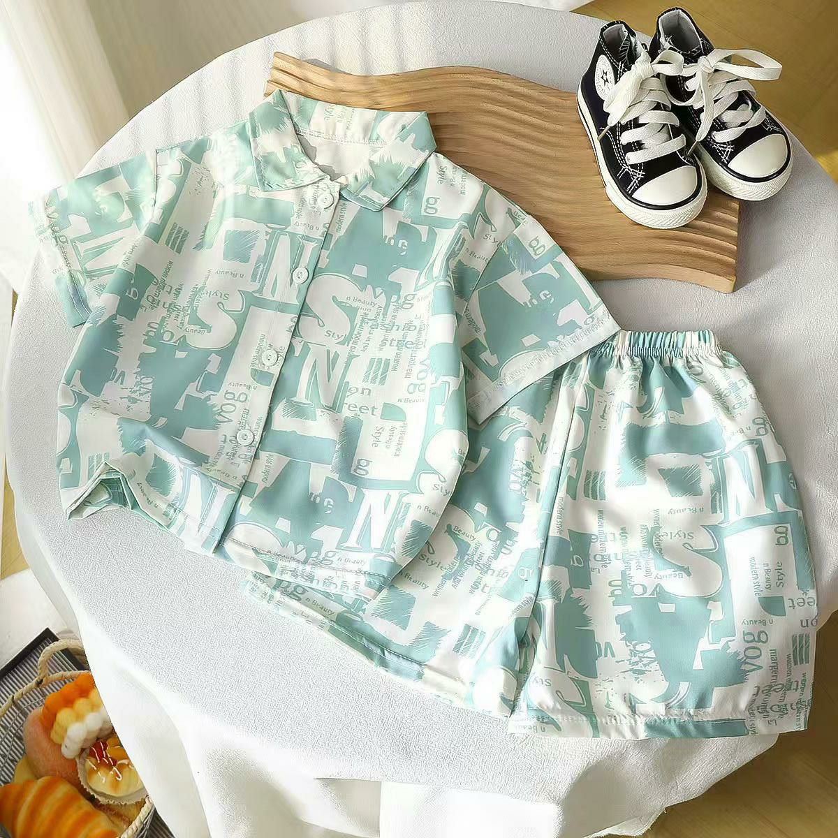 儿童夏季套装男童夏装宝宝短袖短裤中小童t恤宽松衬衫潮童装批发