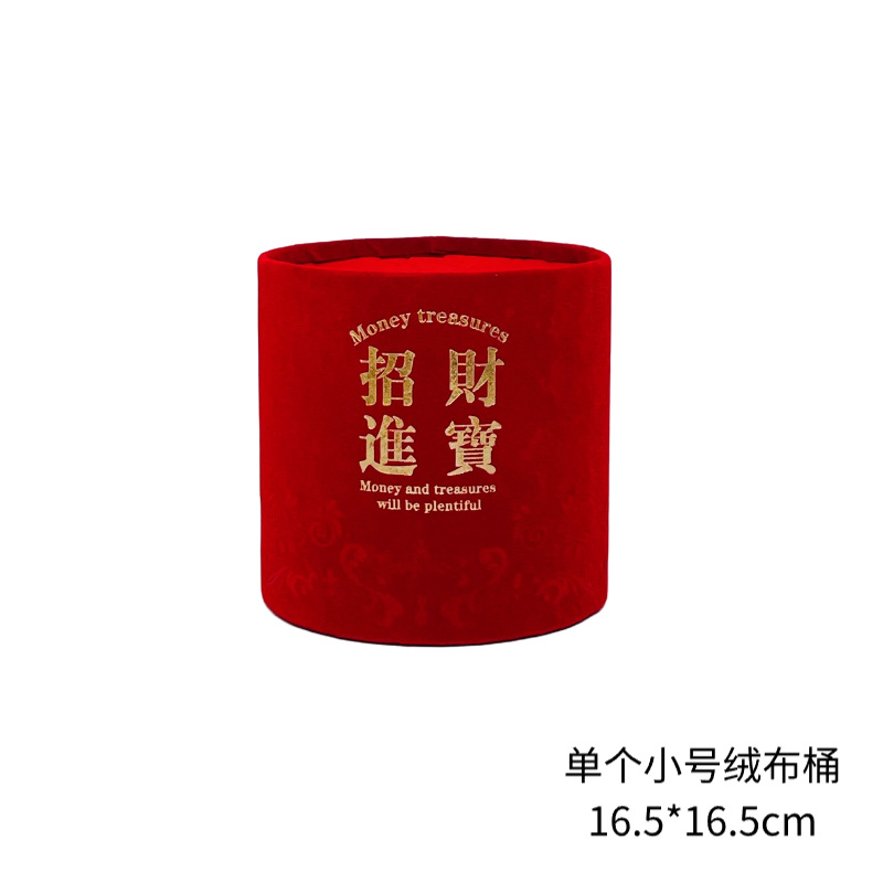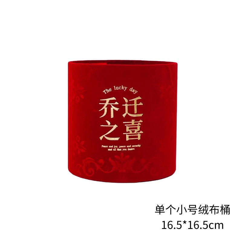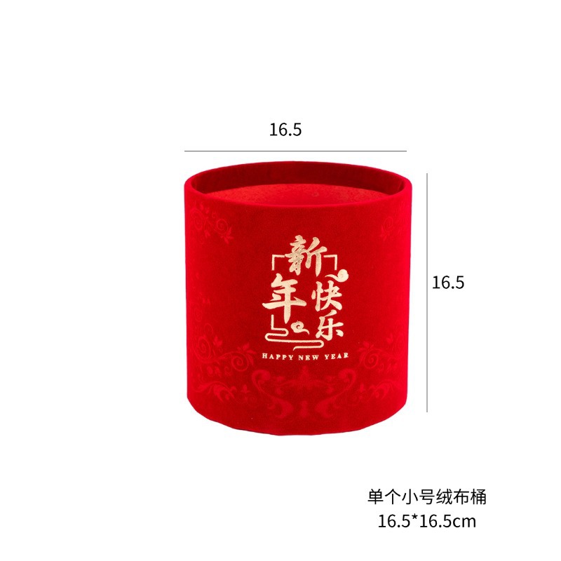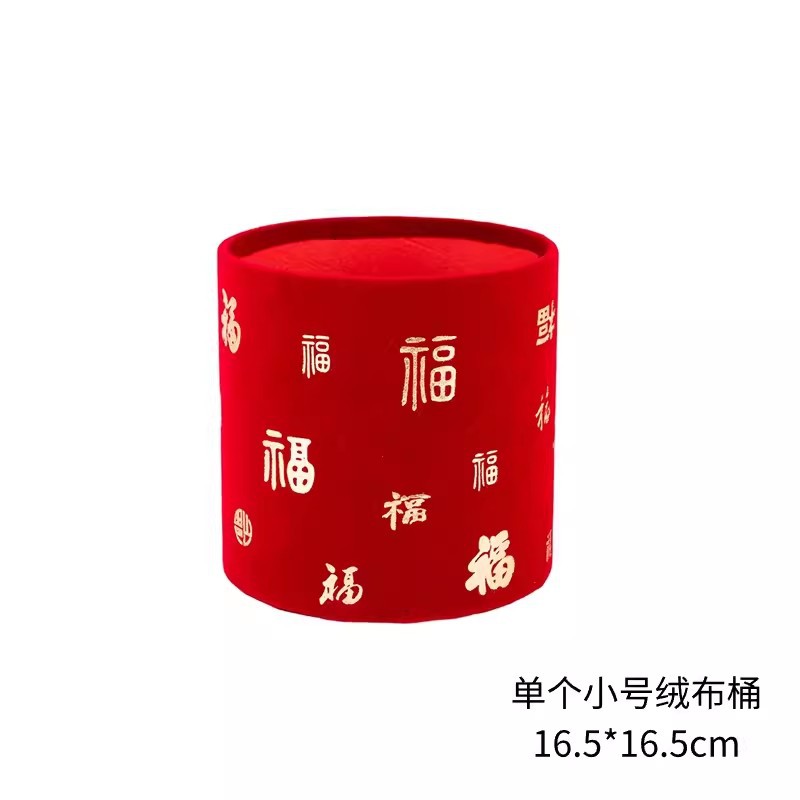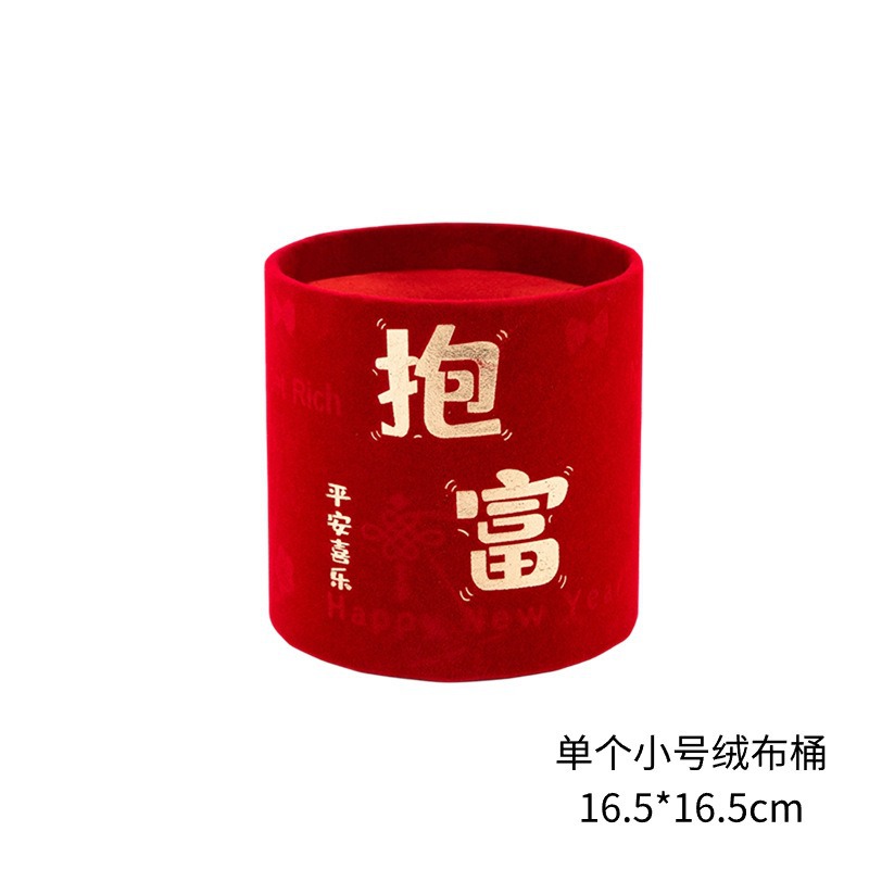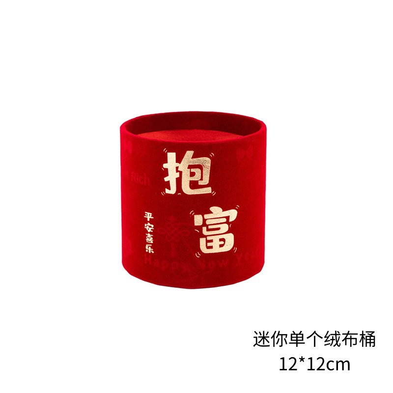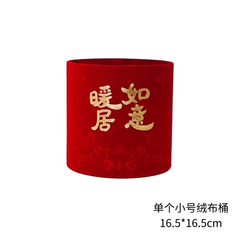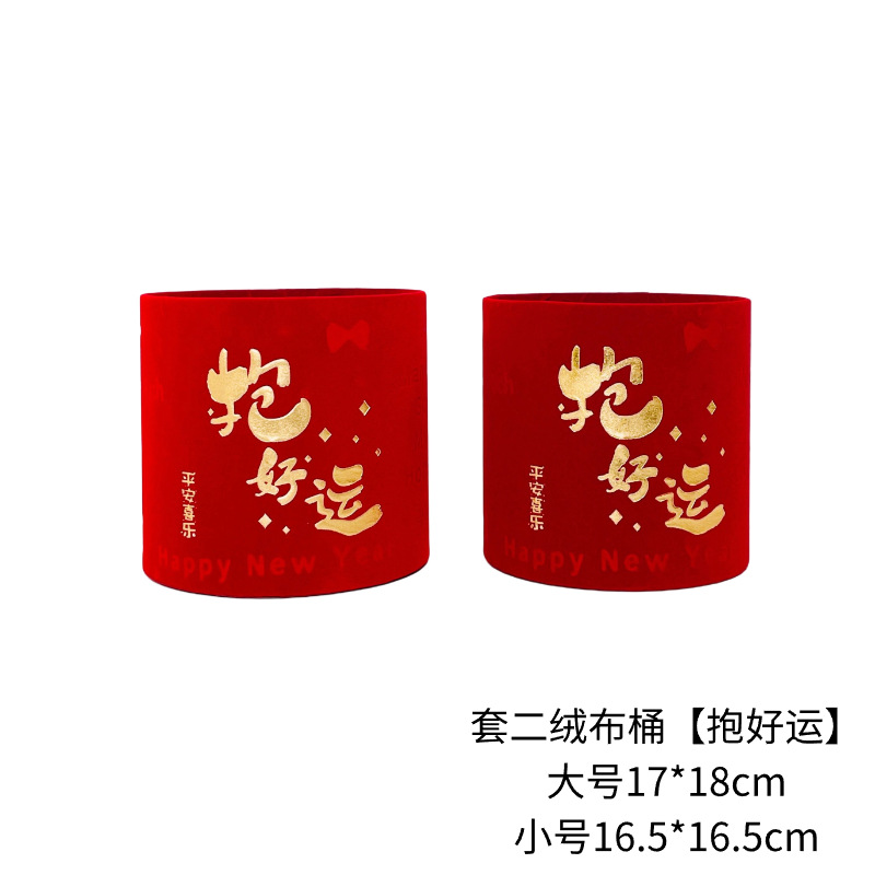 新年福桶套二圆形烫金红色抱抱桶批发福字绒布桶年宵花花束插花桶