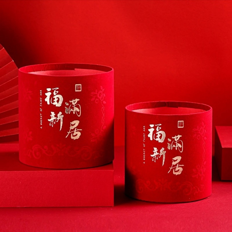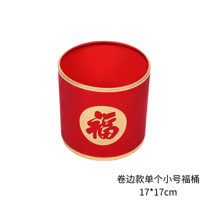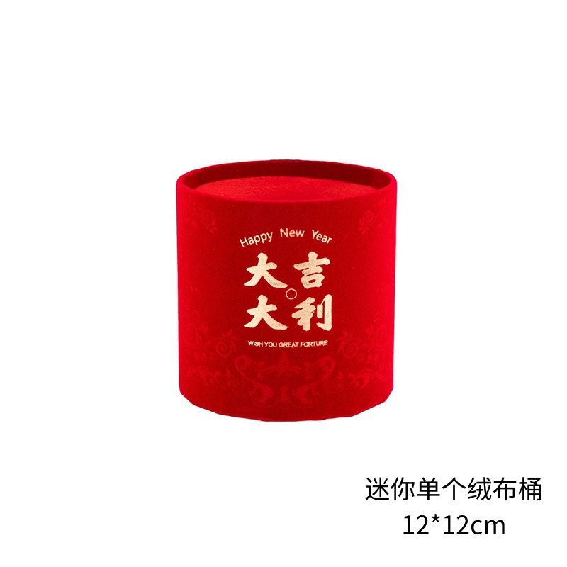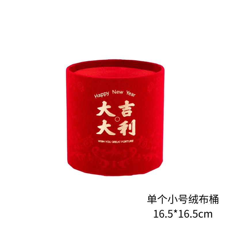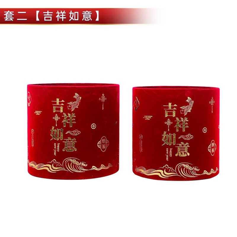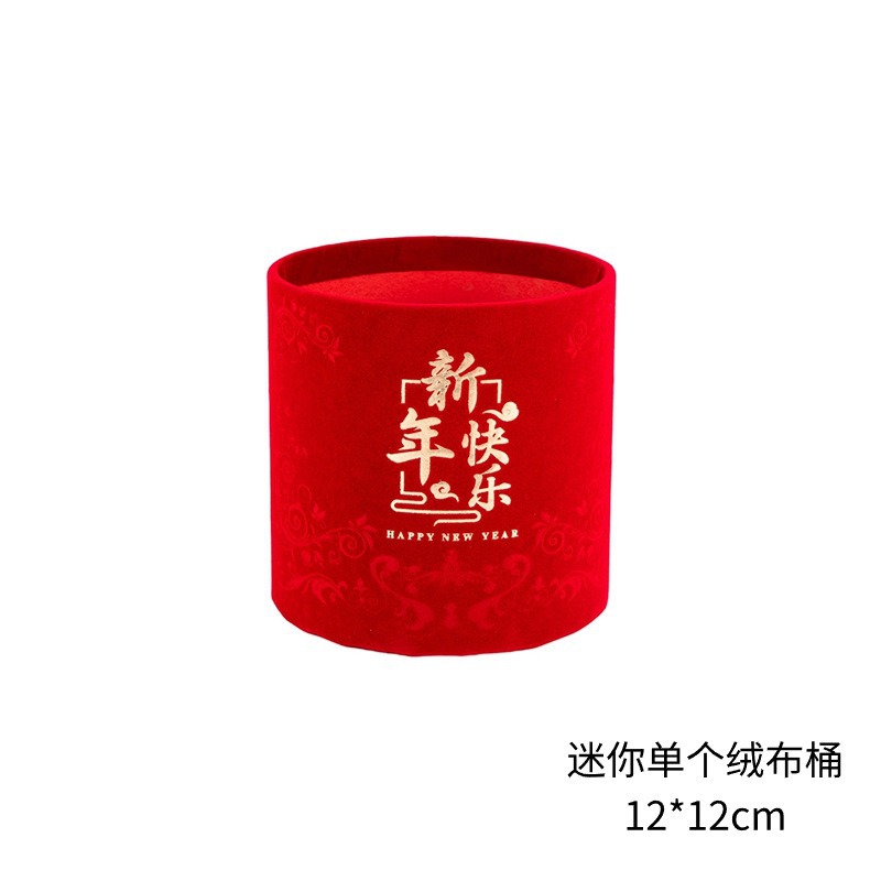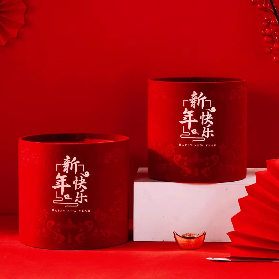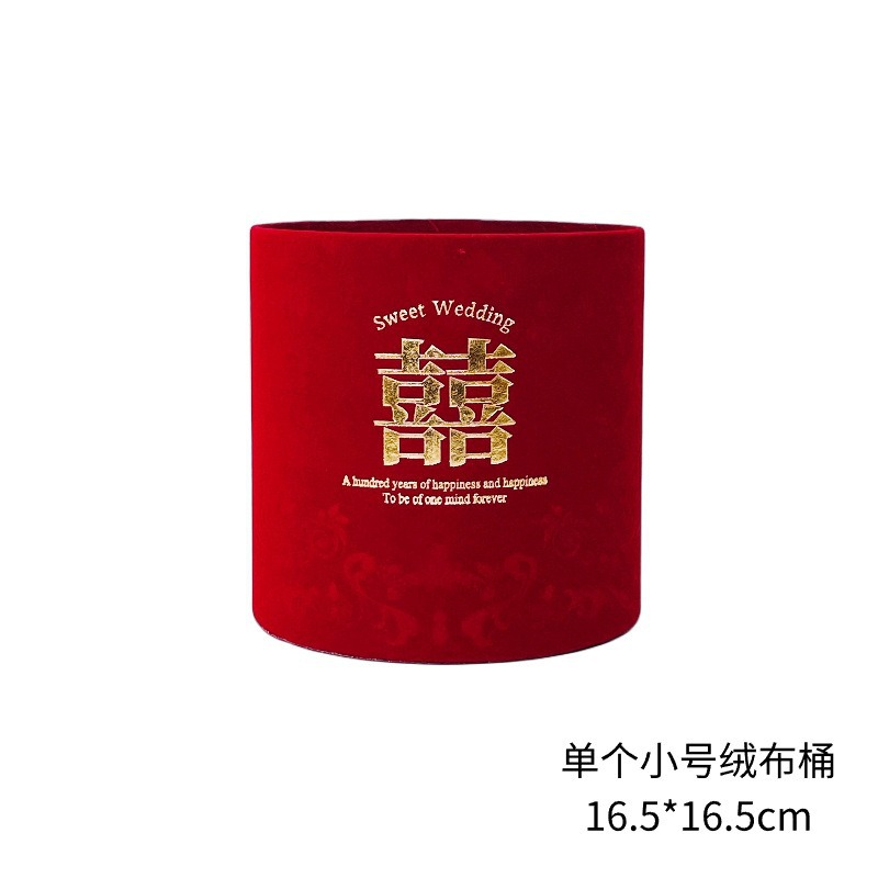 新年福桶套二圆形烫金红色抱抱桶批发福字绒布桶年宵花花束插花桶