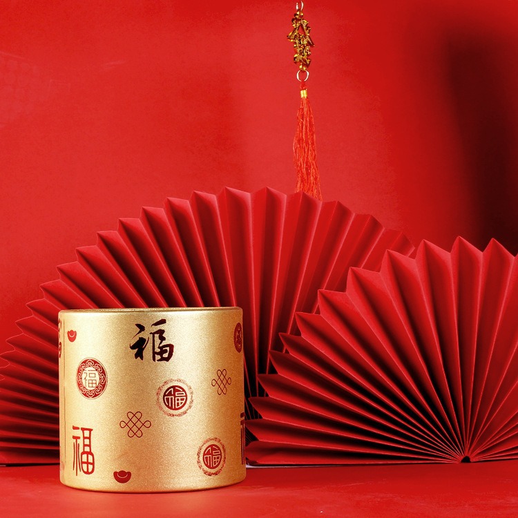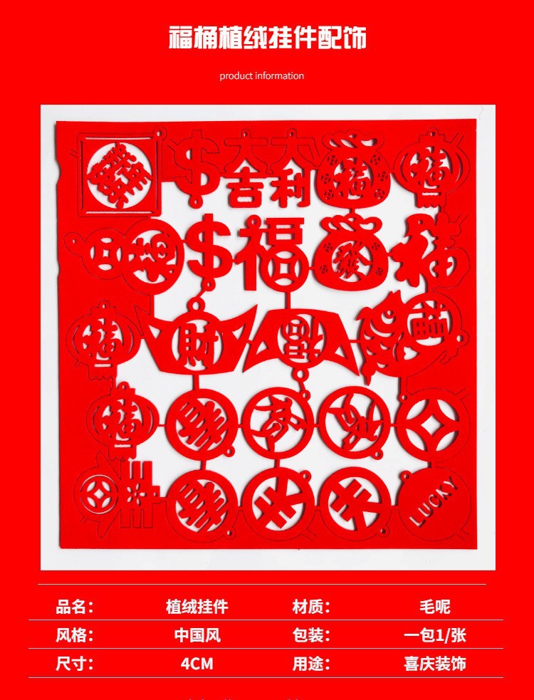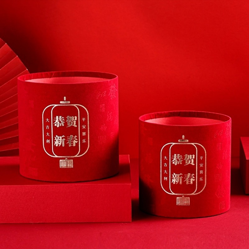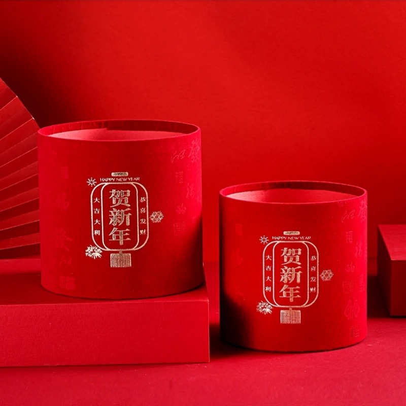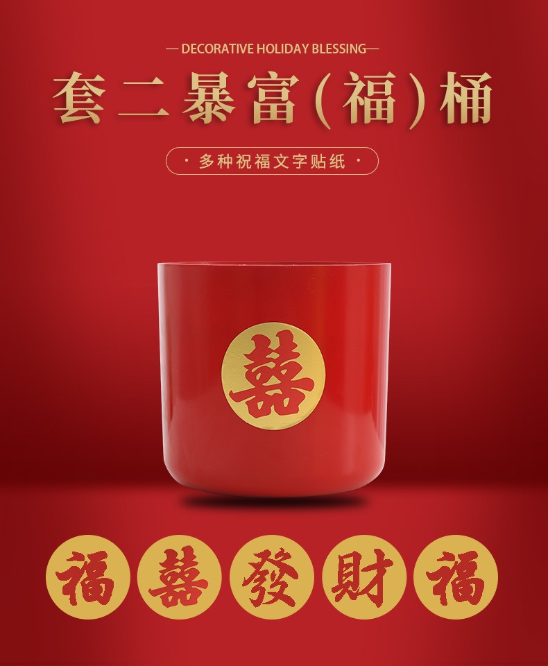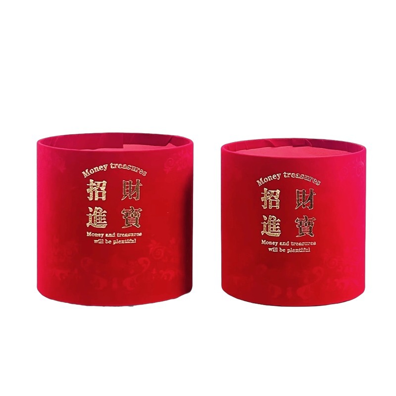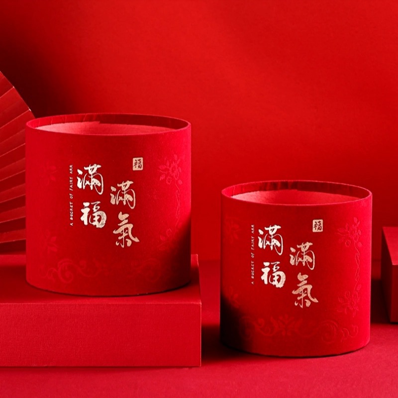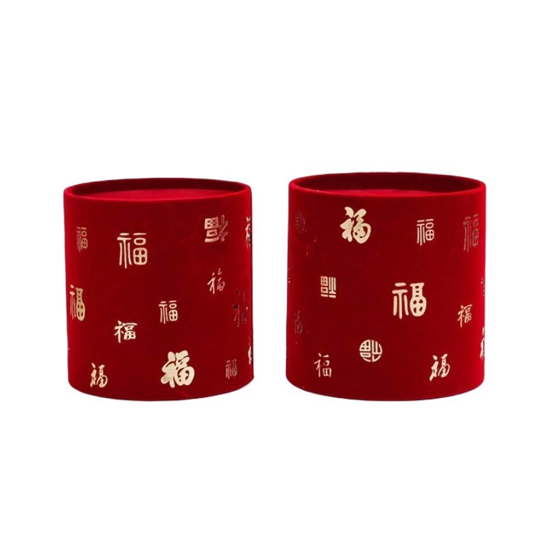 新年福桶套二圆形烫金红色抱抱桶批发福字绒布桶年宵花花束插花桶