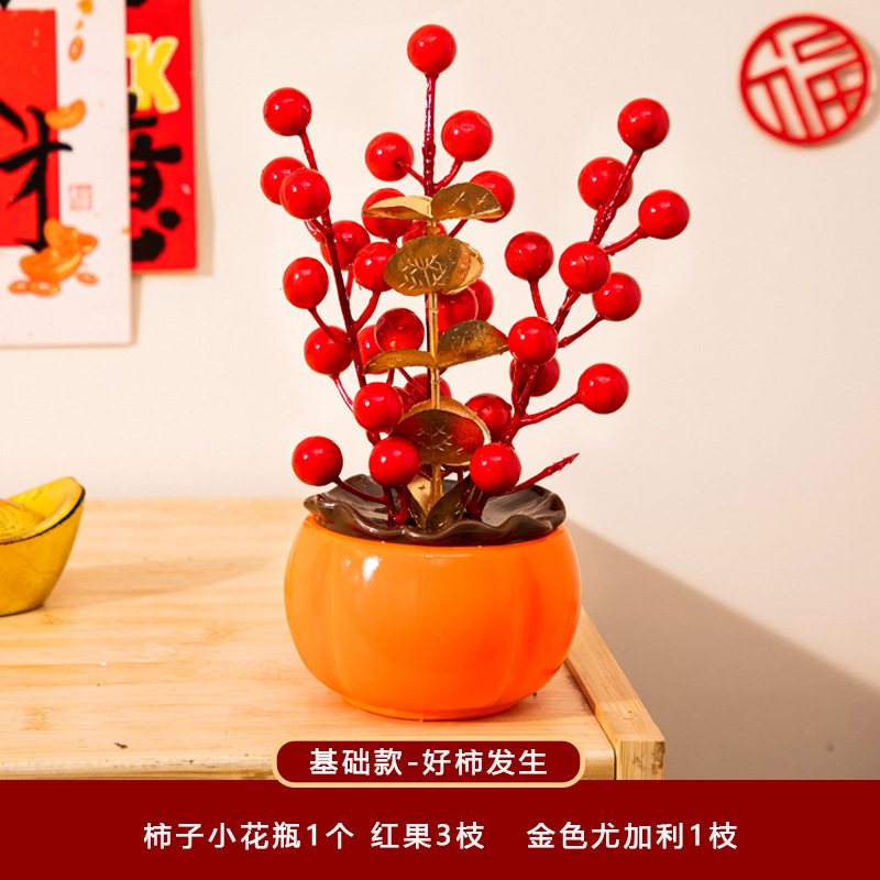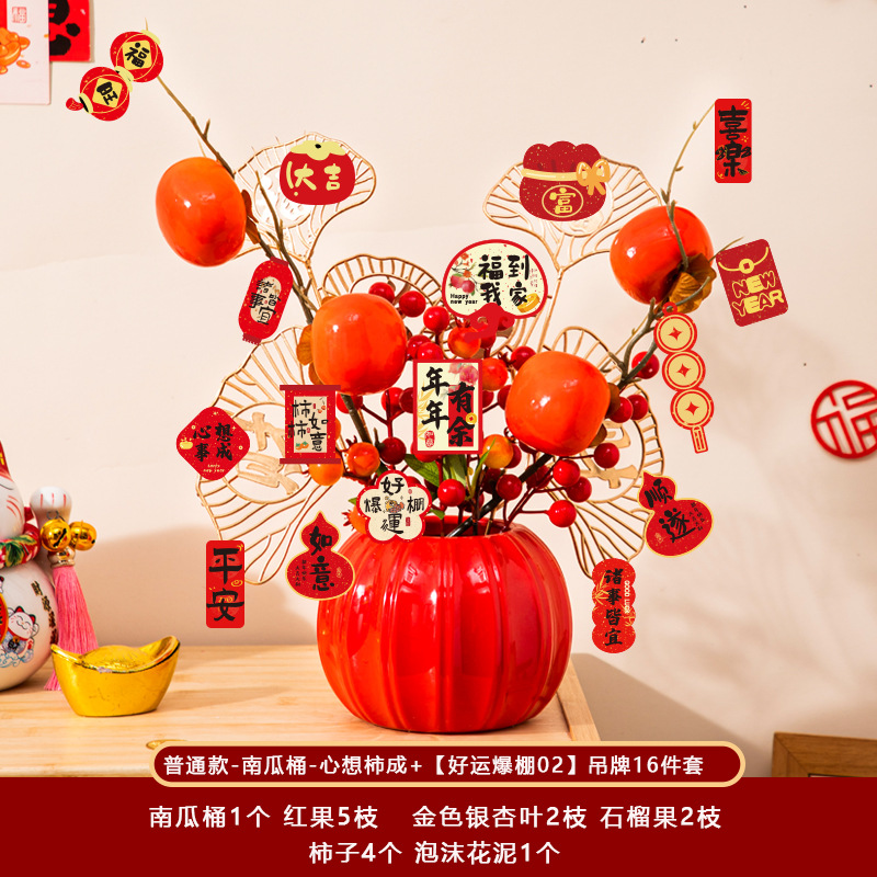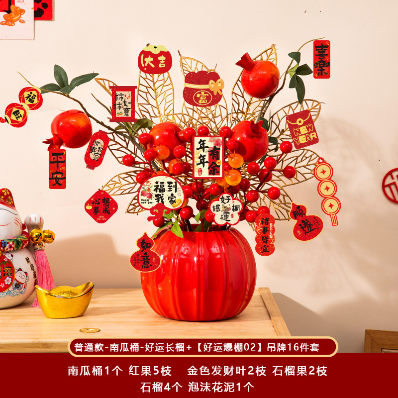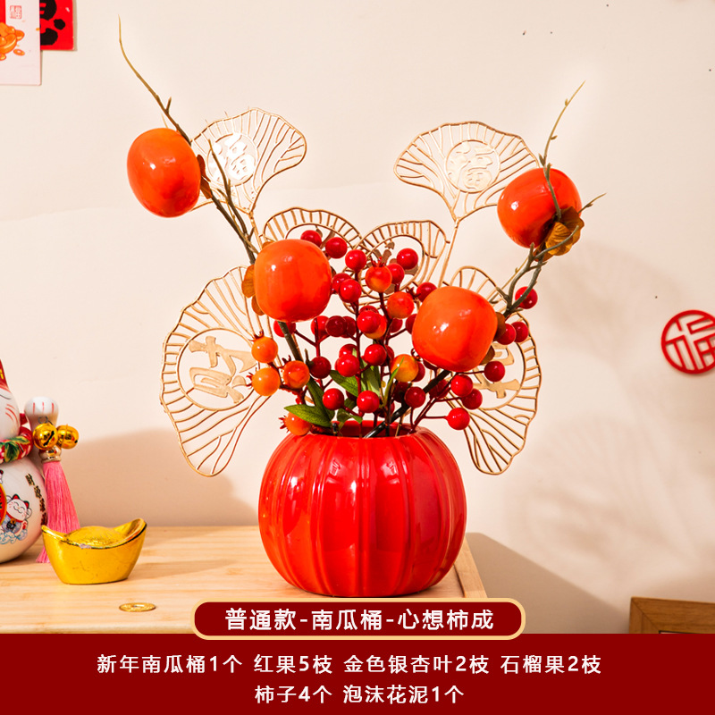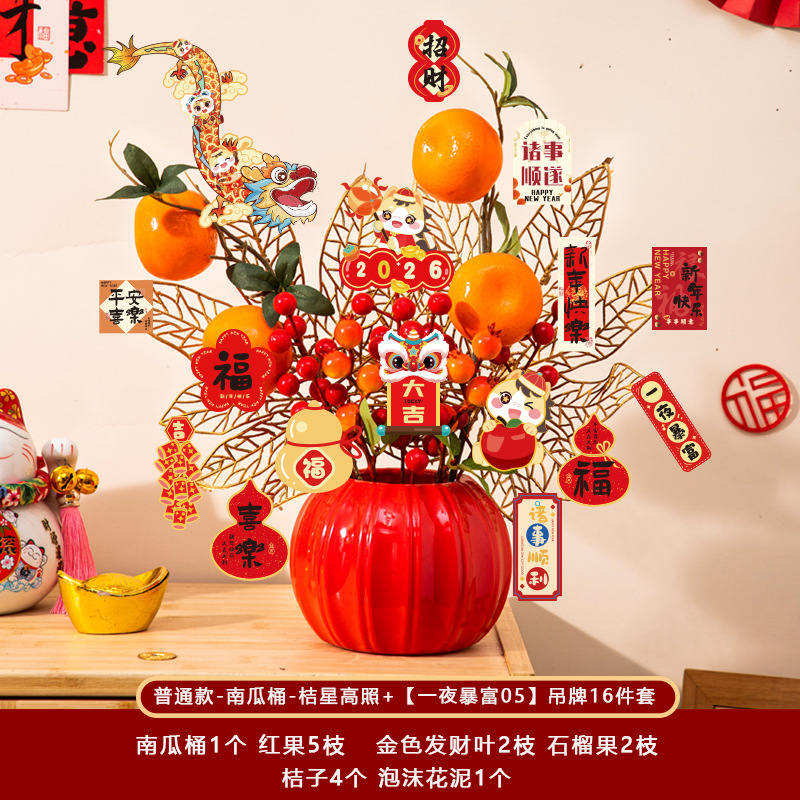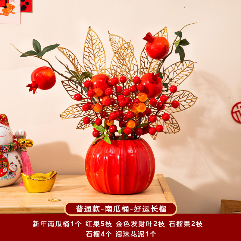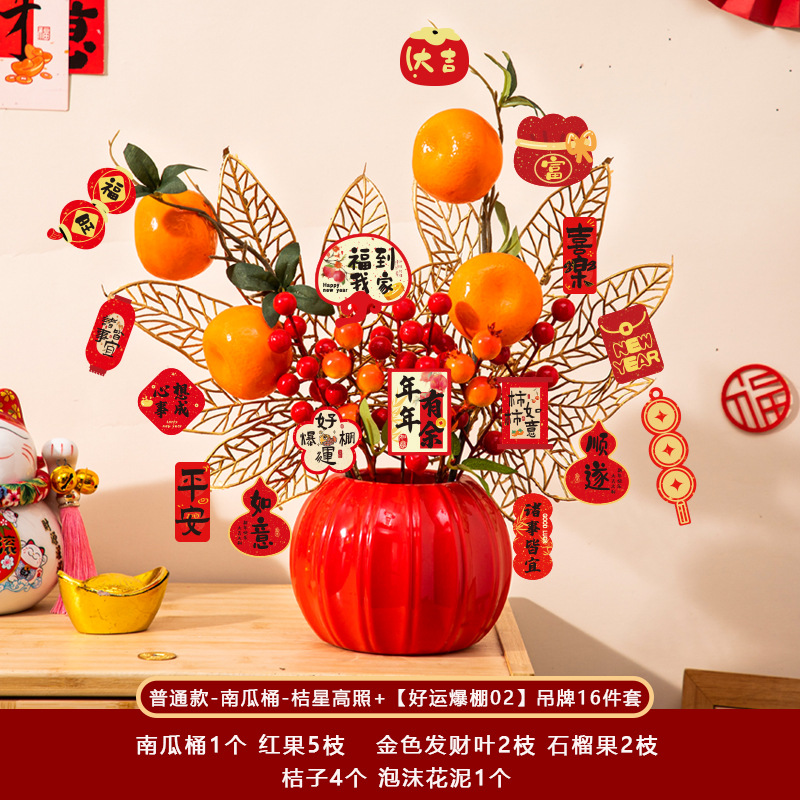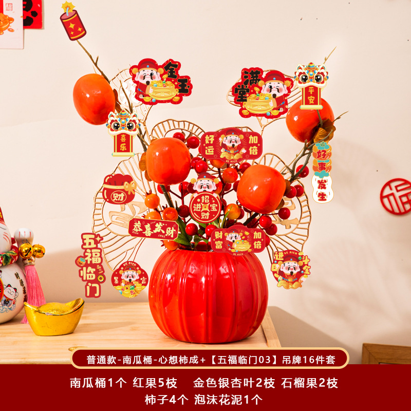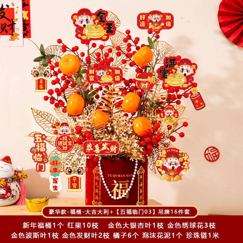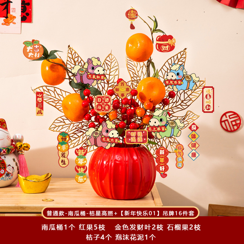 新年福桶摆件2026马年装饰发财红果春节过年花盆栽抱抱桶过年布置