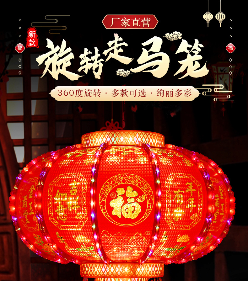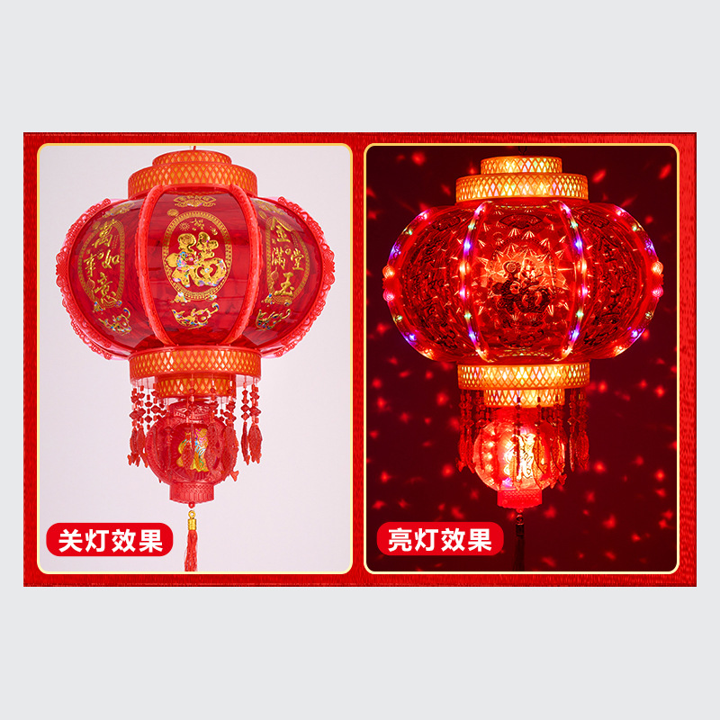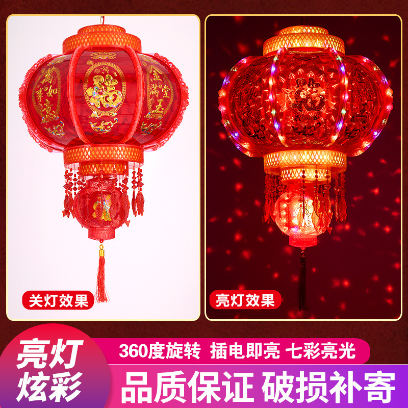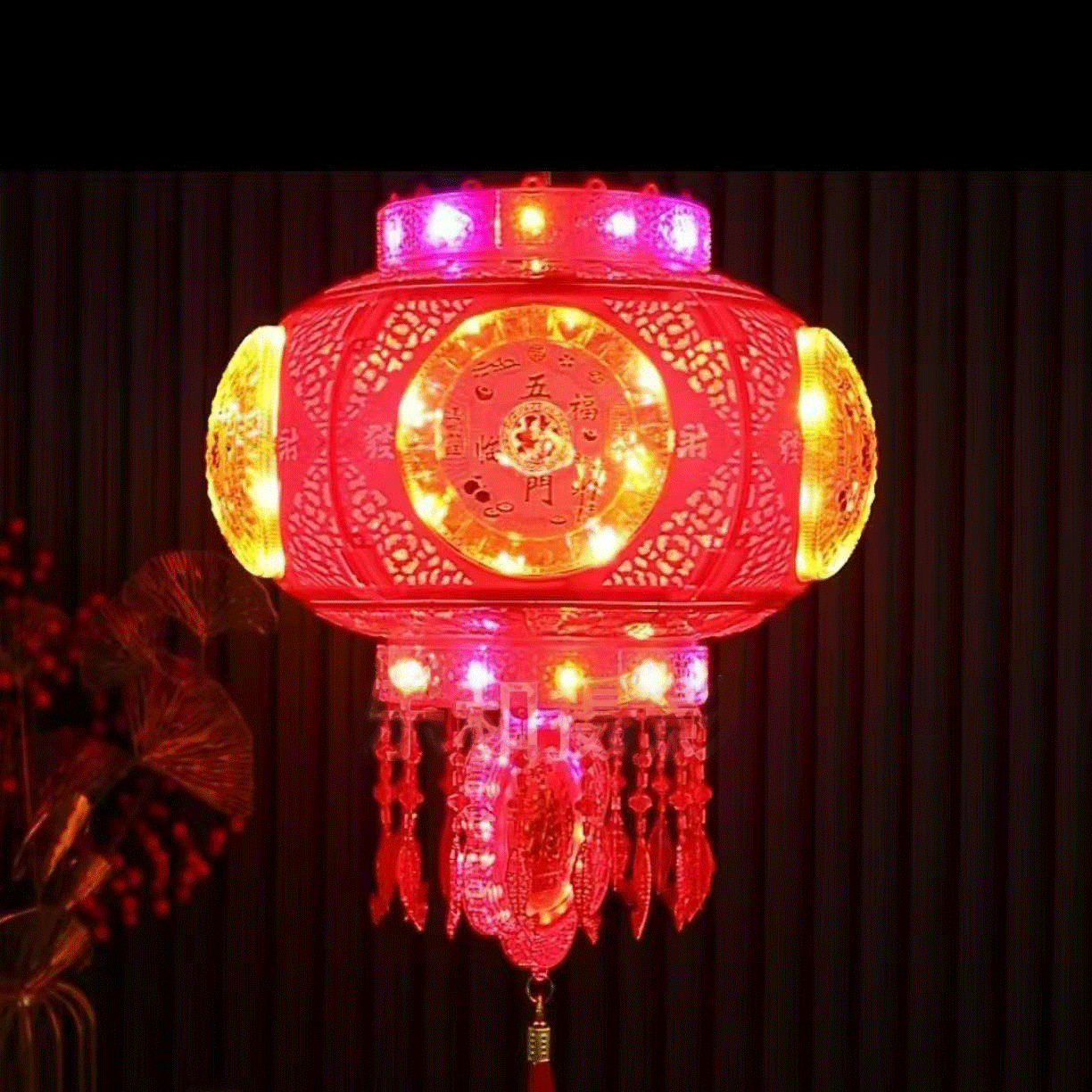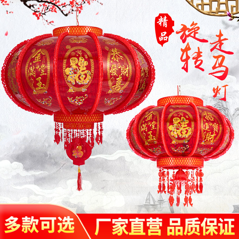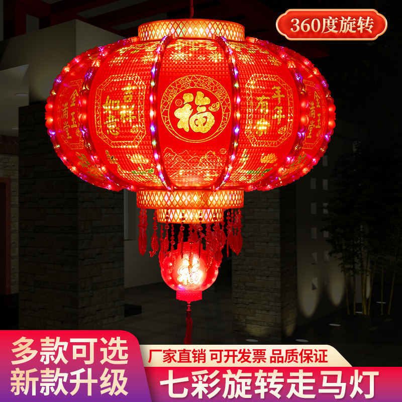 新款大红灯笼灯吊灯电动旋转春节新年七彩led走马灯厂家批发灯笼