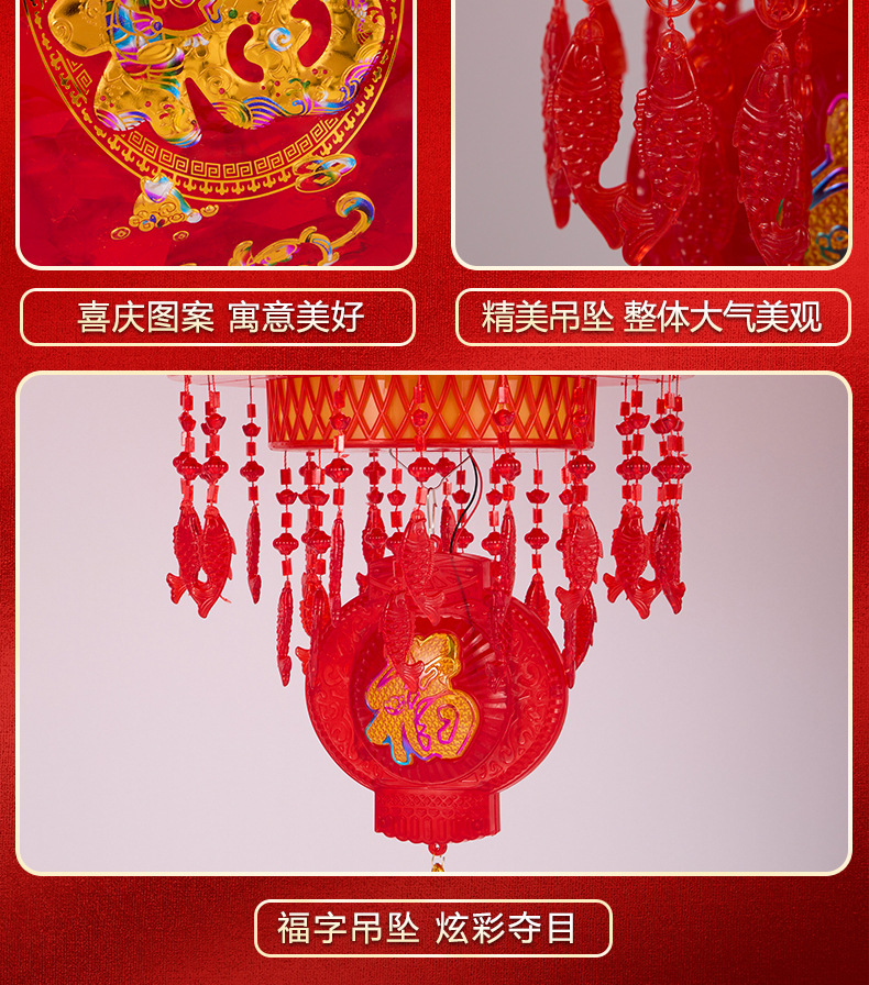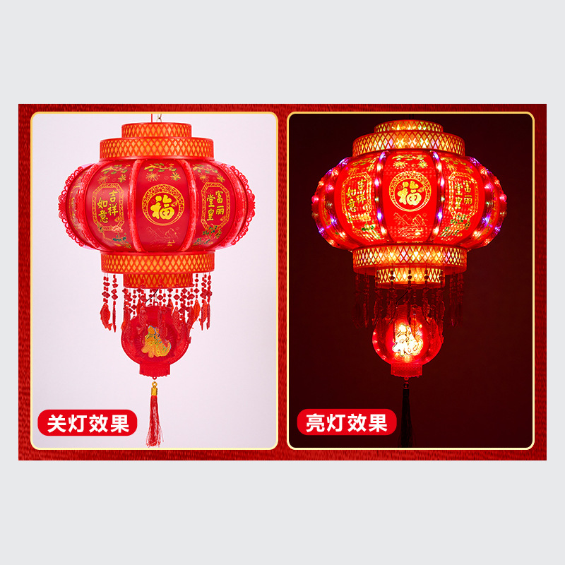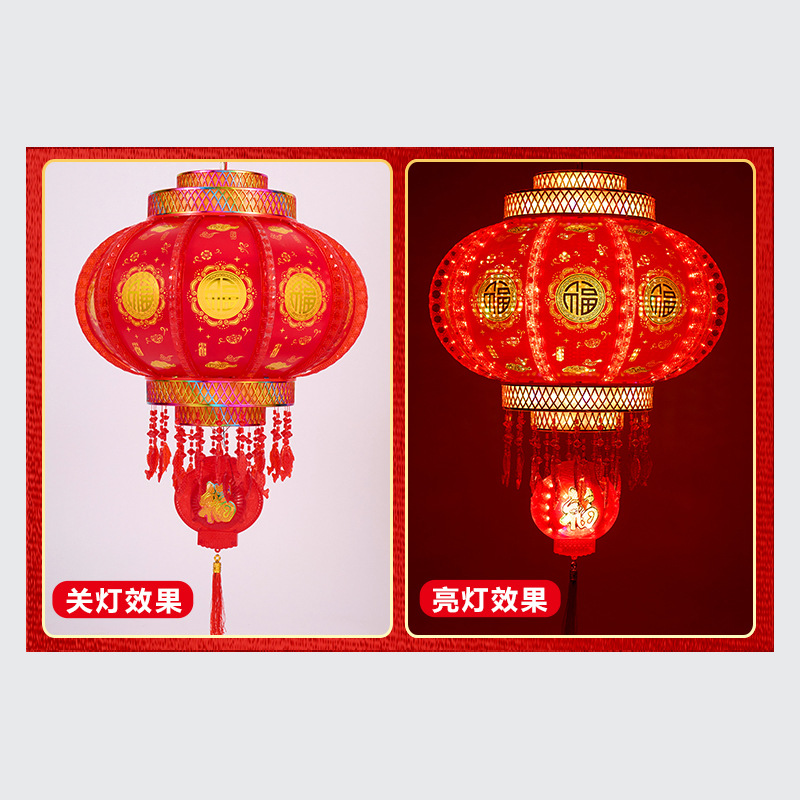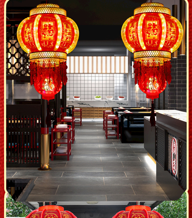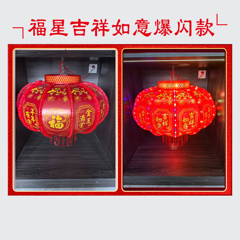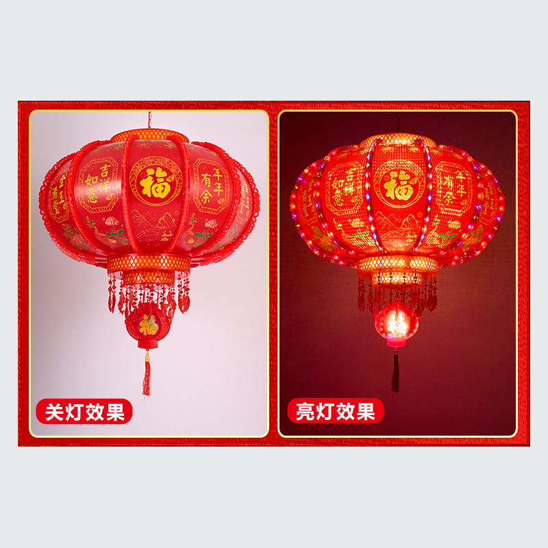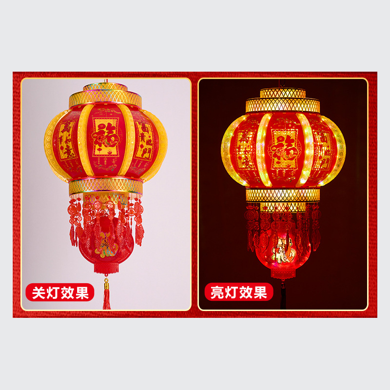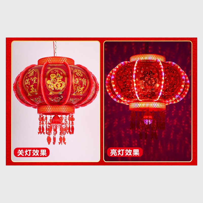 新款大红灯笼灯吊灯电动旋转春节新年七彩led走马灯厂家批发灯笼