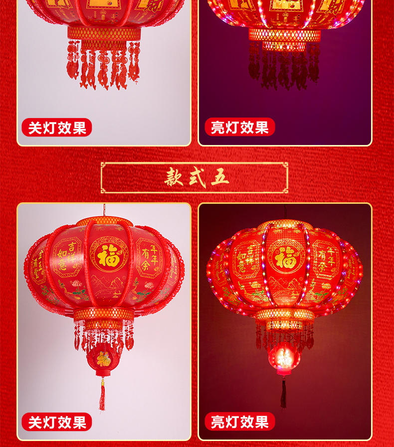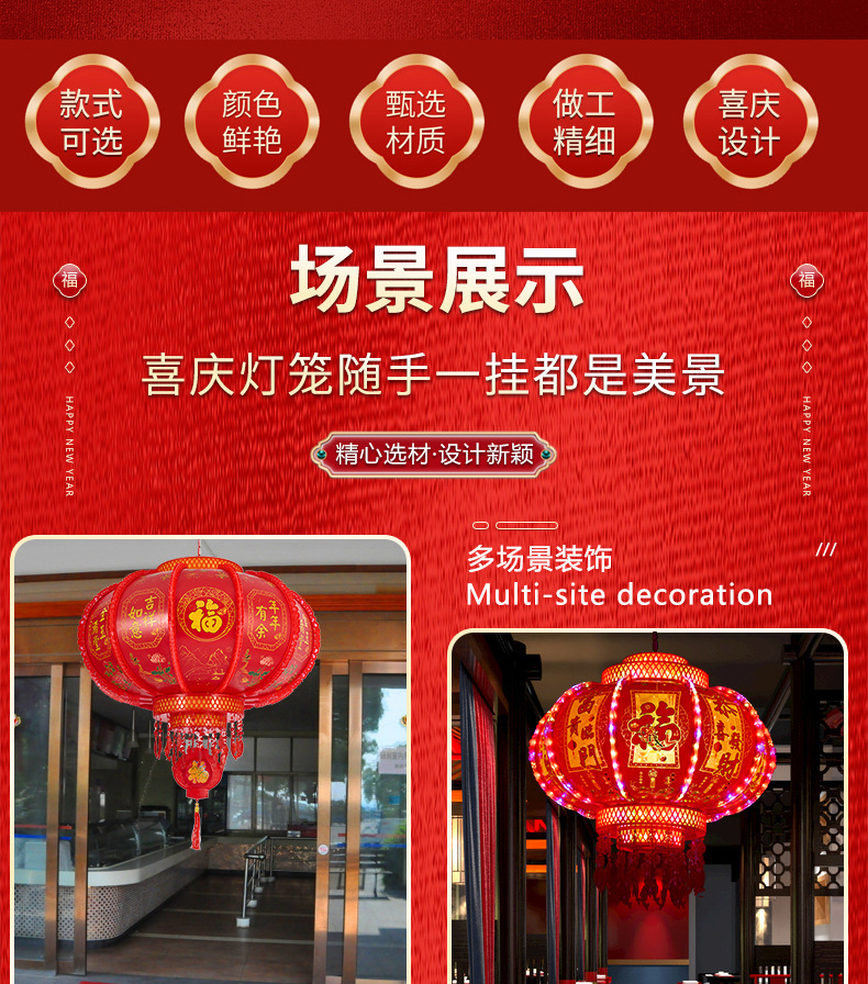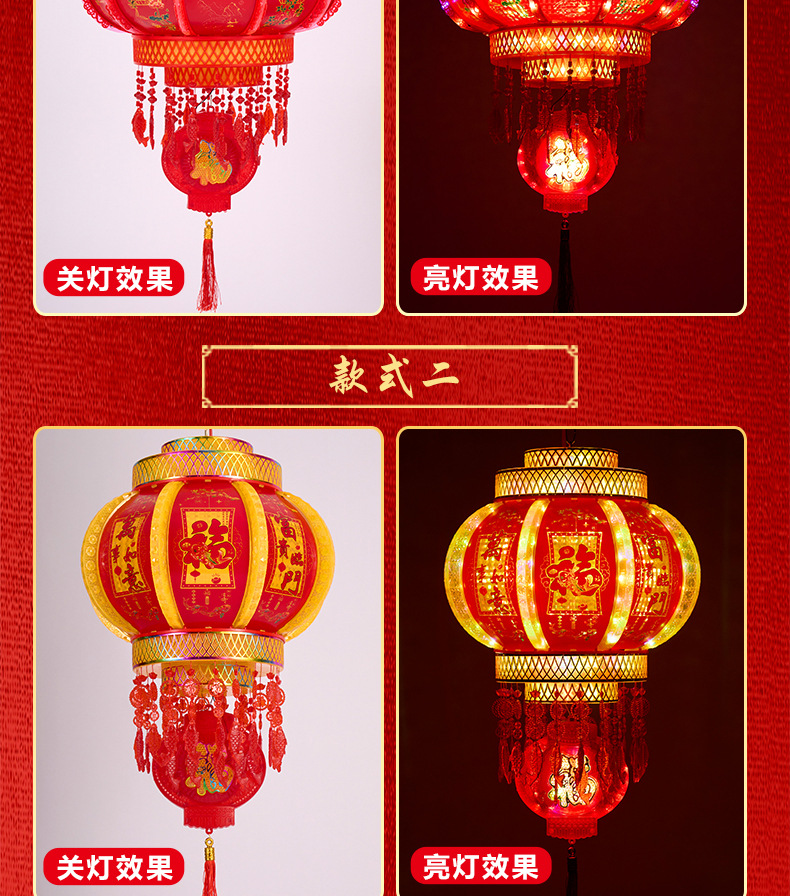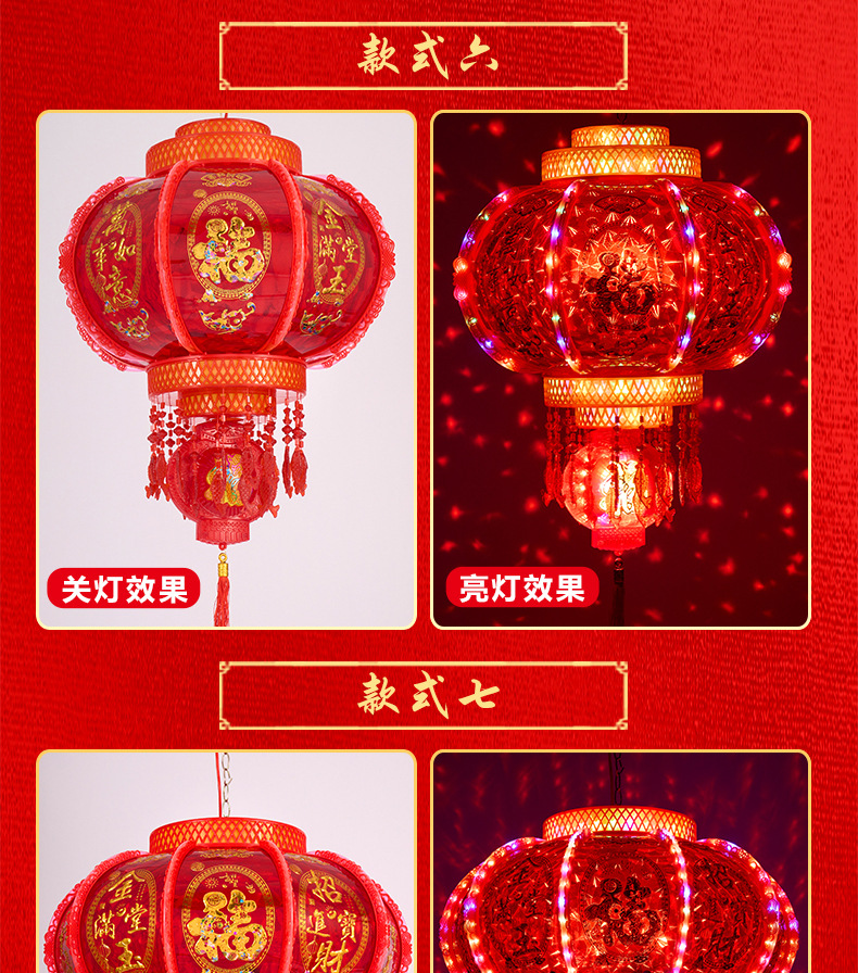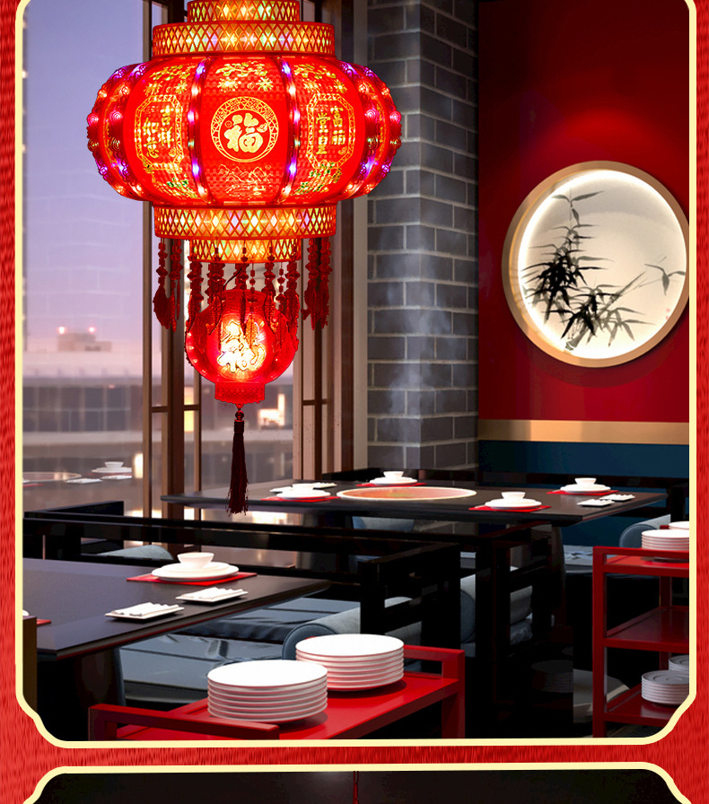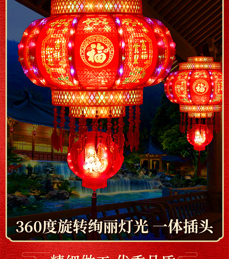 新款大红灯笼灯吊灯电动旋转春节新年七彩led走马灯厂家批发灯笼