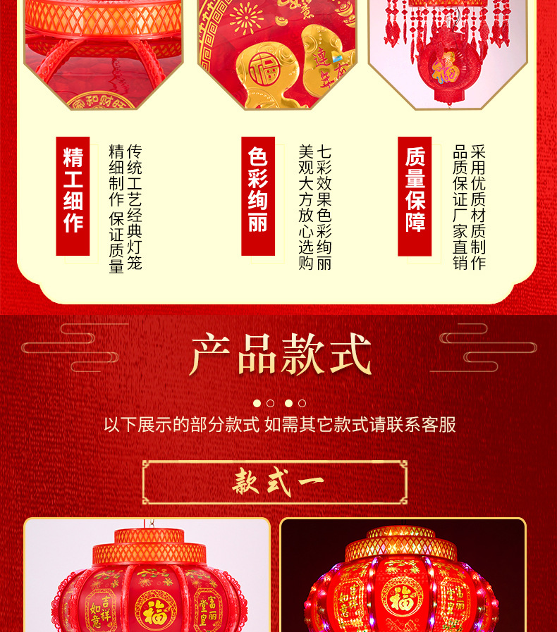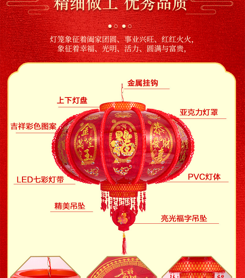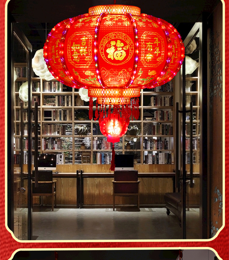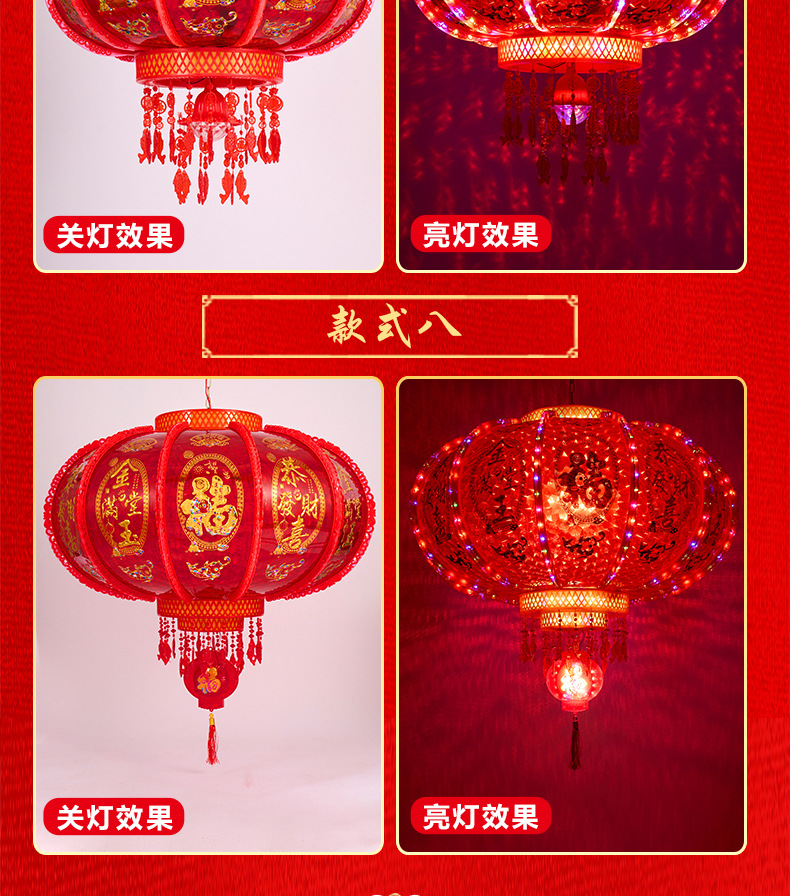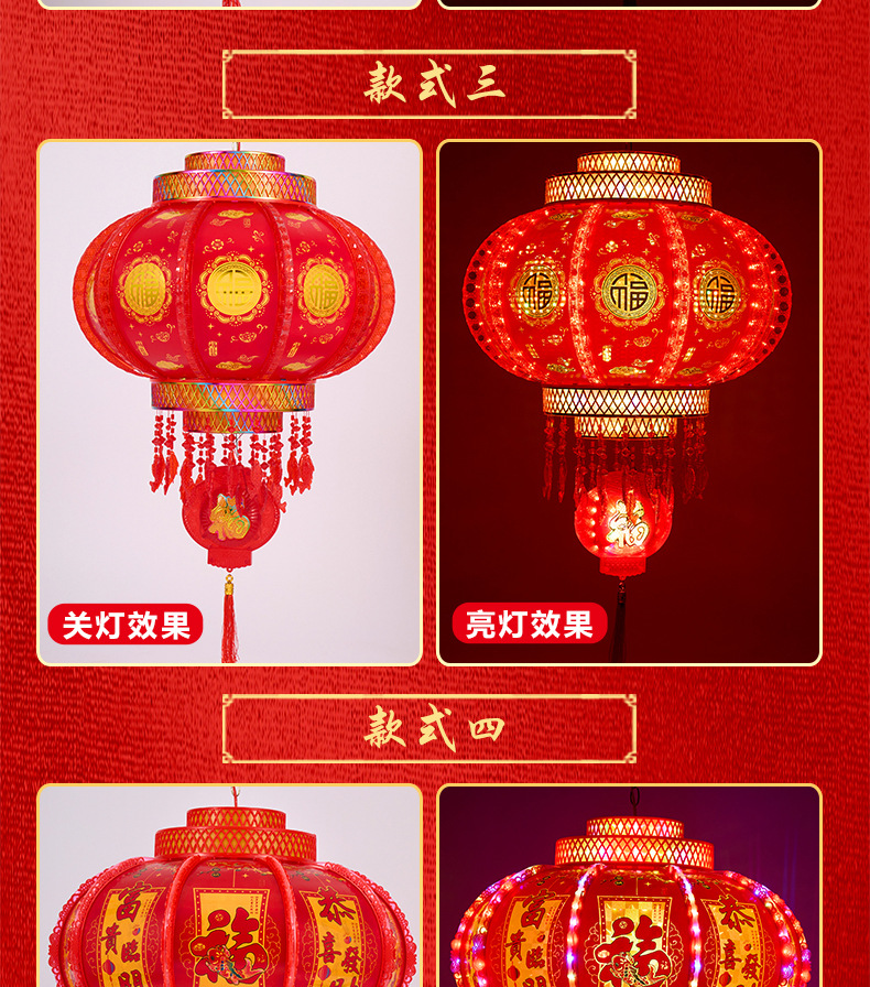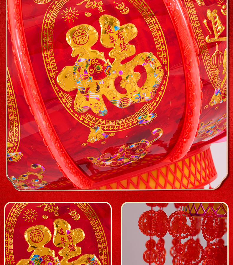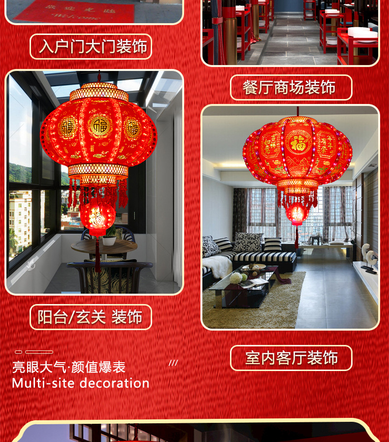 新款大红灯笼灯吊灯电动旋转春节新年七彩led走马灯厂家批发灯笼
