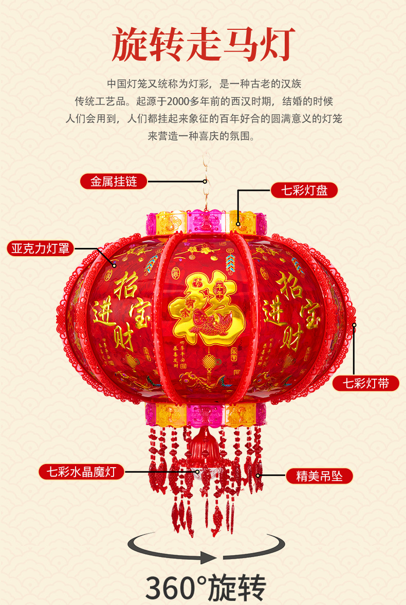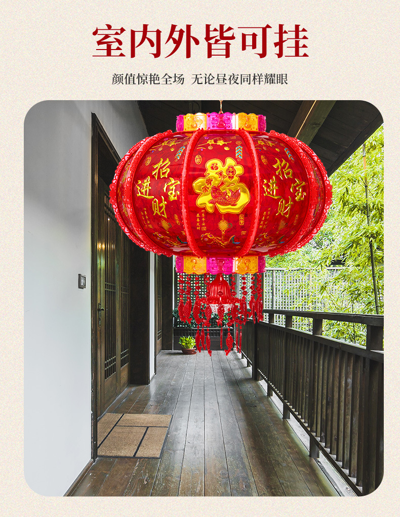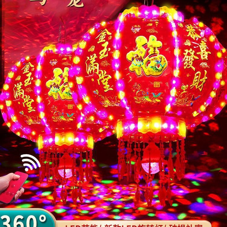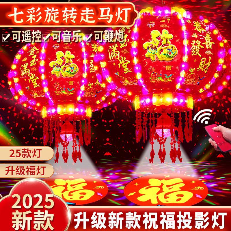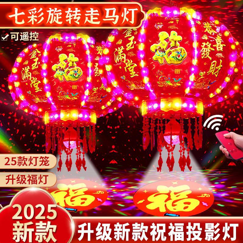 2026新款旋转灯笼大门口一对彩灯春节七彩福字走马灯阳台结婚乔迁