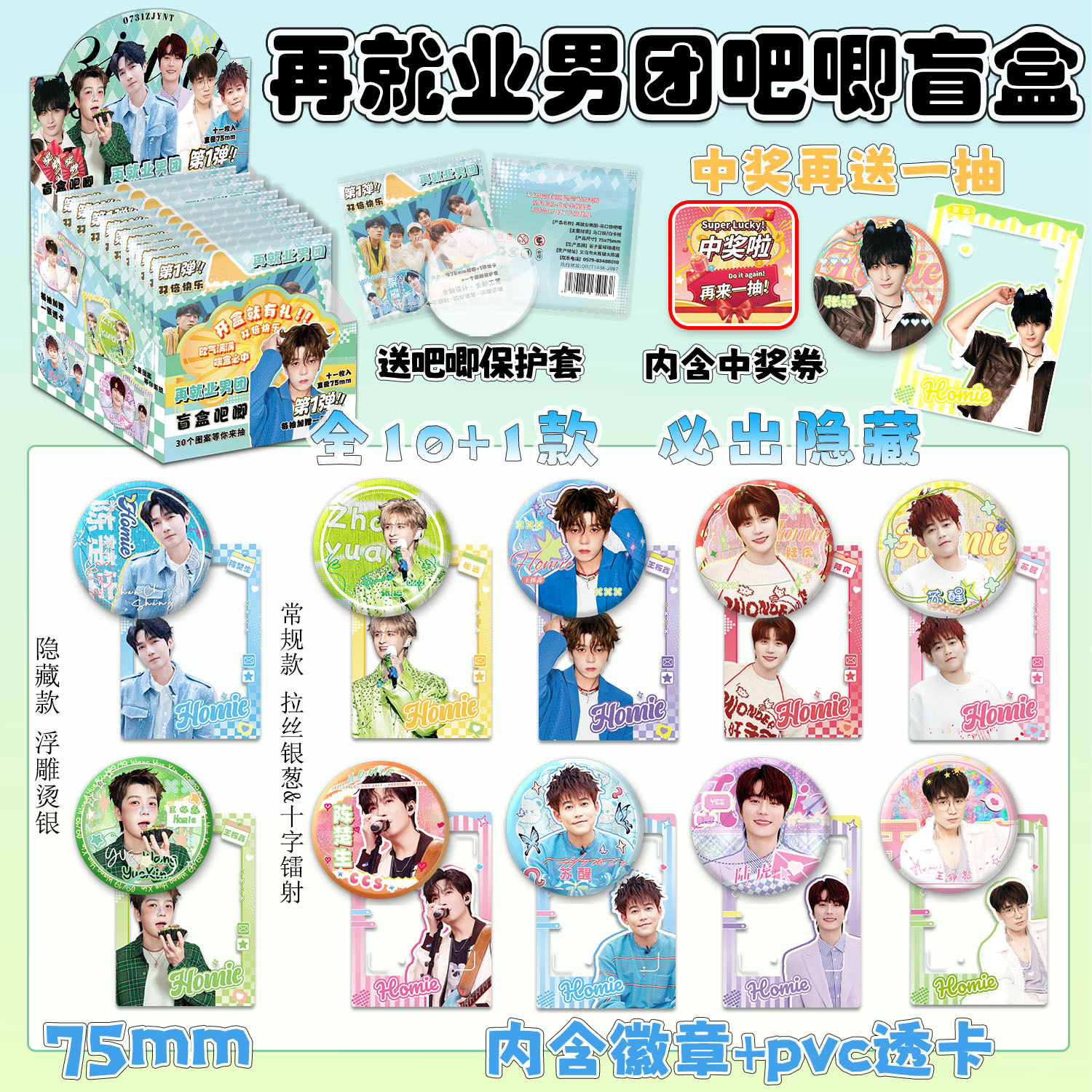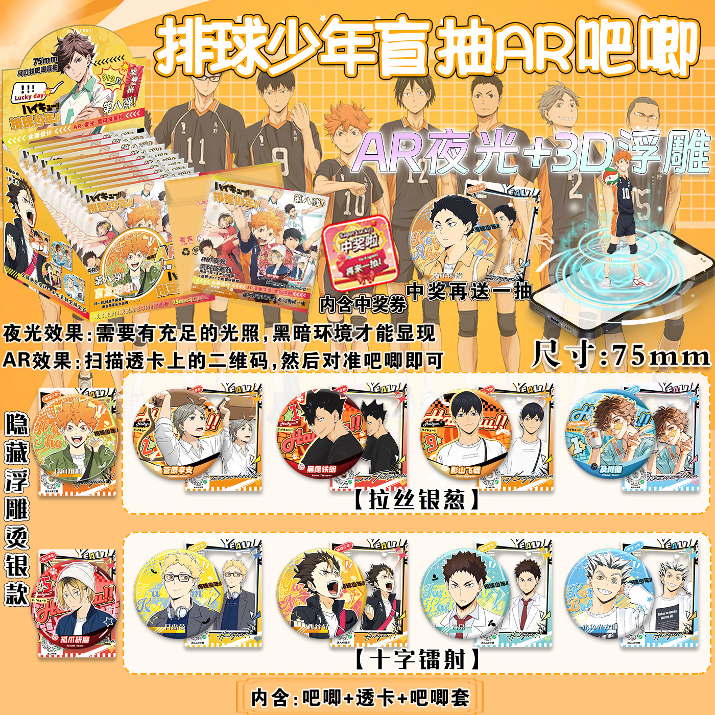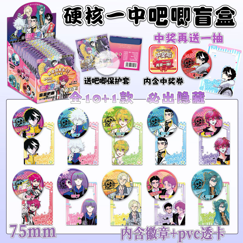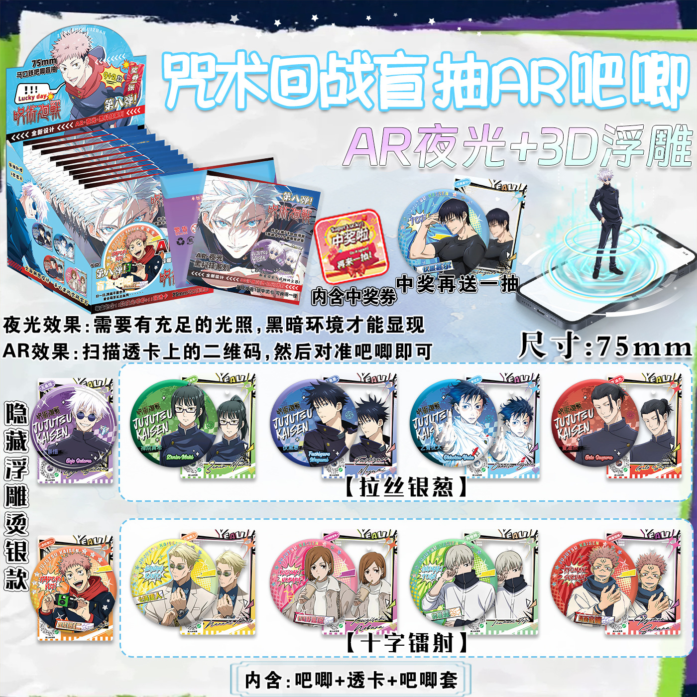 二次元动漫75mm双闪徽章咒术小卡盲抽谷子马口铁吧唧盲盒镭射盲袋