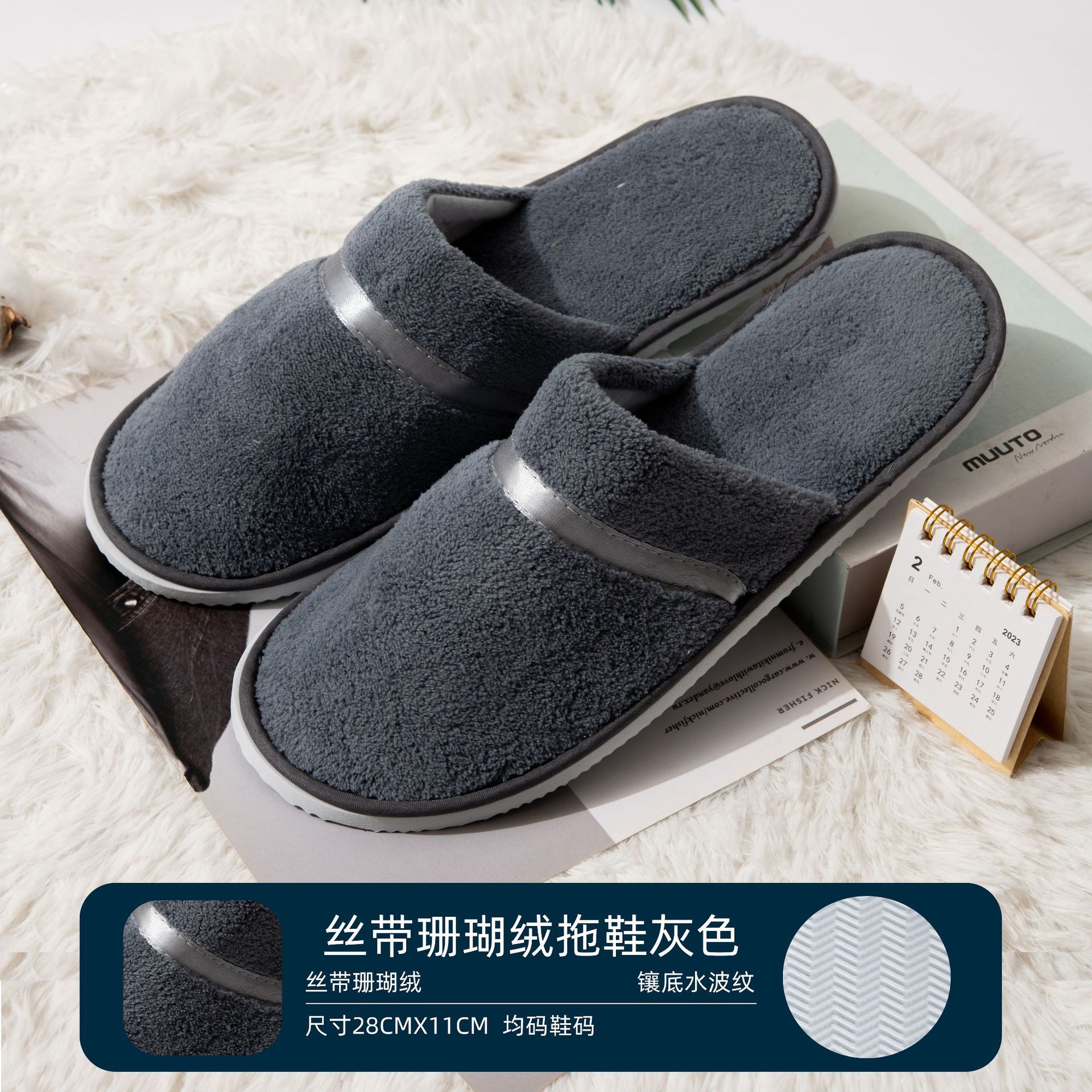 一次性拖鞋星级酒店无纺布拉毛绒防滑冬季居家待客宾馆民宿印logo