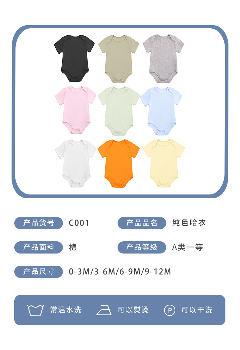 跨境婴儿短袖三角连体哈衣新生儿棉纯色短袖哈衣包屁衣爬服夏a类