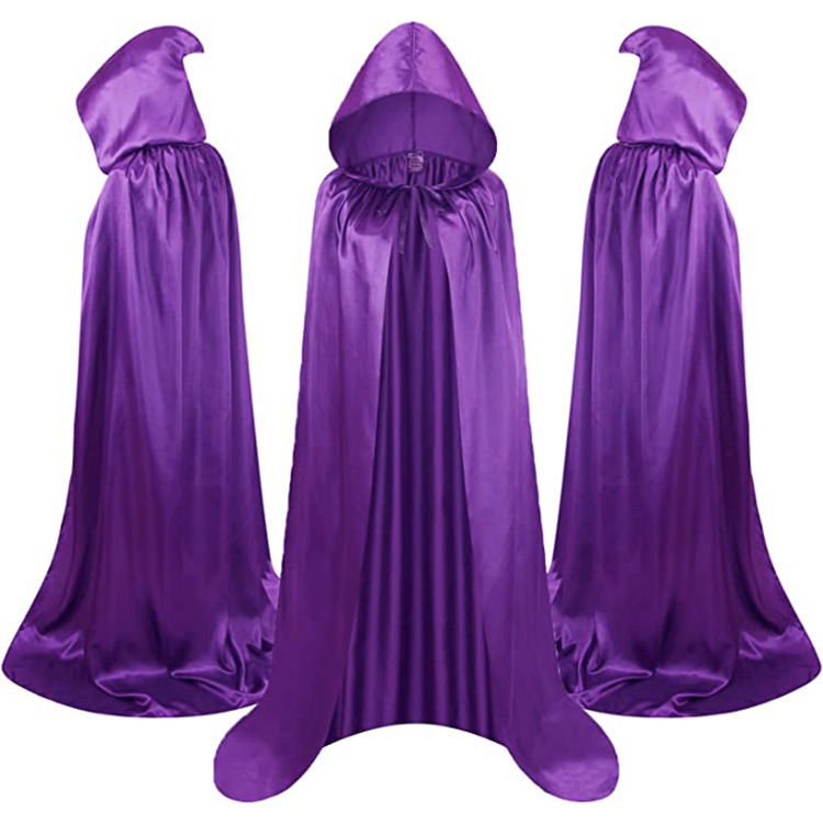 万圣节披风儿童成人色丁布披风立领带帽黑色死神披风斗篷黑色披风