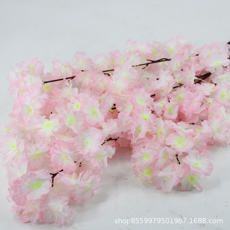 仿真樱花枝桃花枝假花装饰室内外樱花树婚庆梨花塑料绢花吊顶藤条