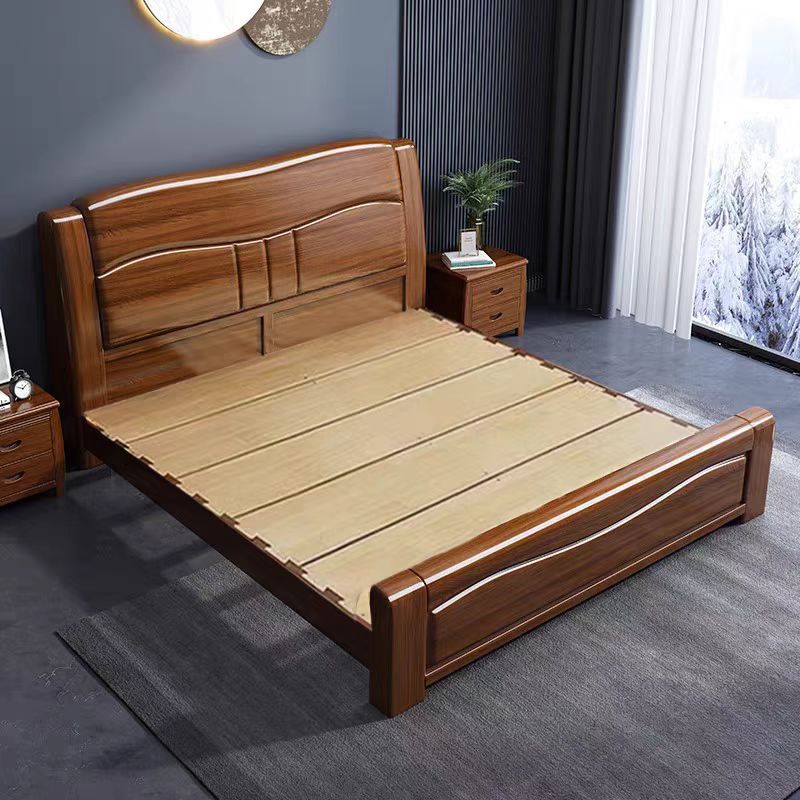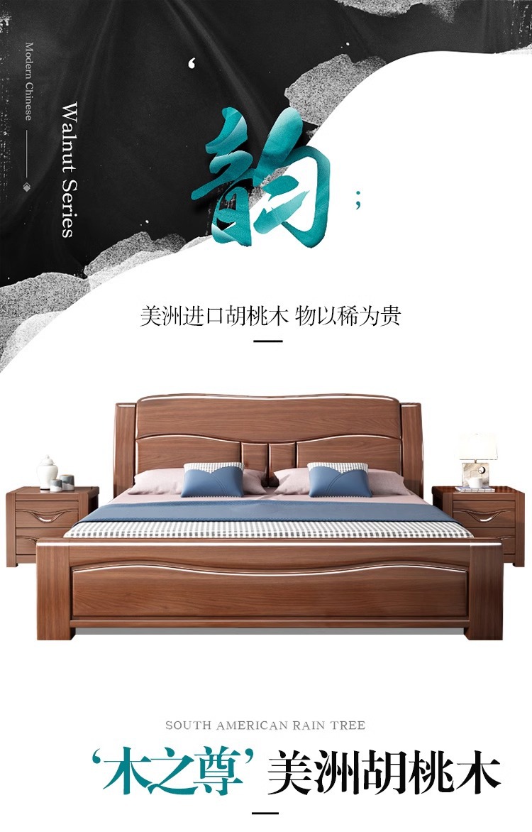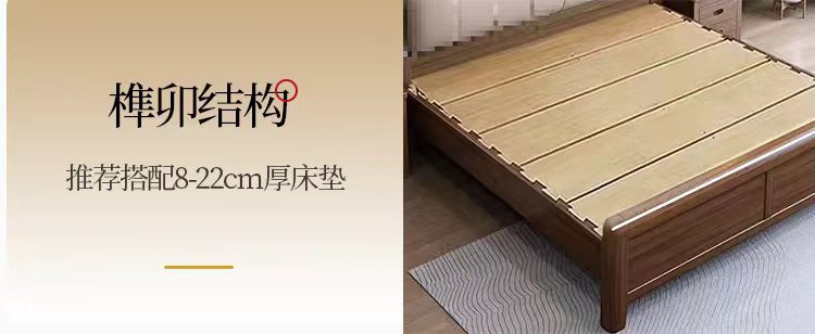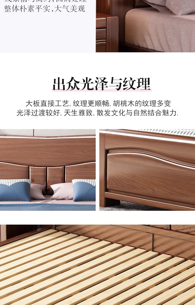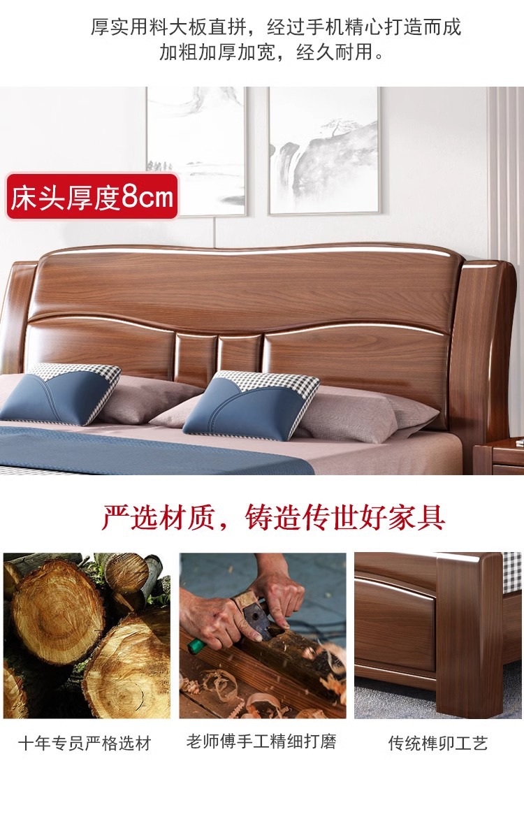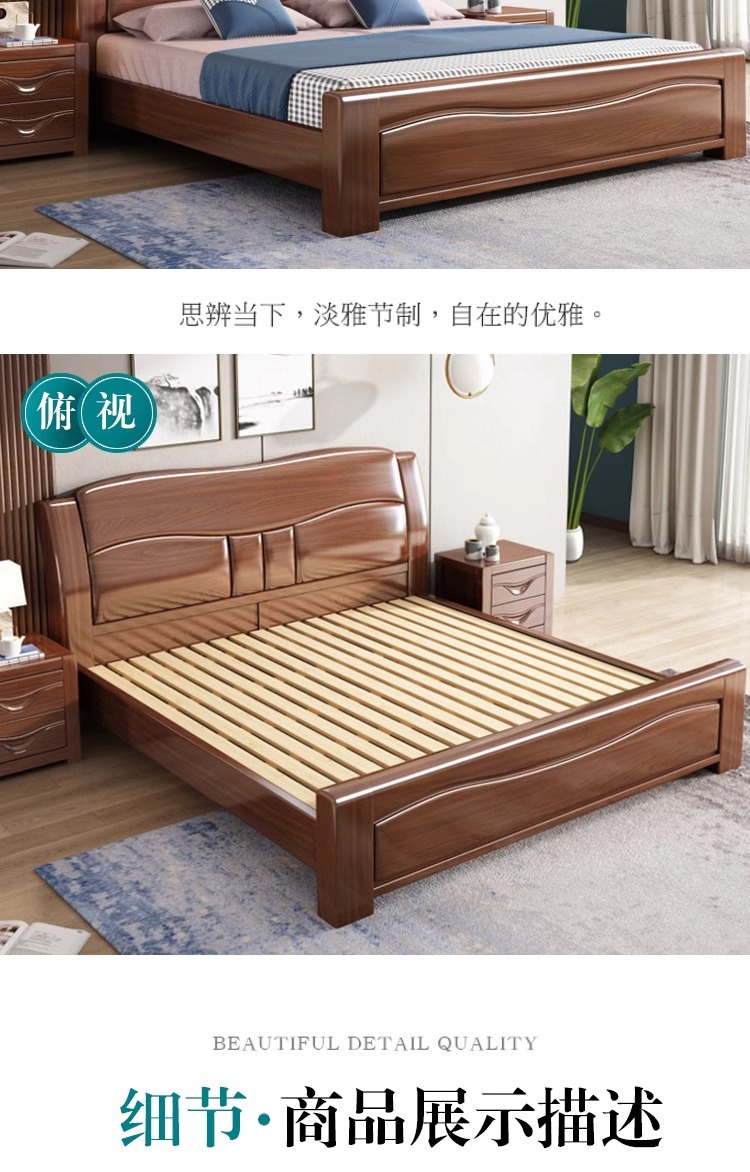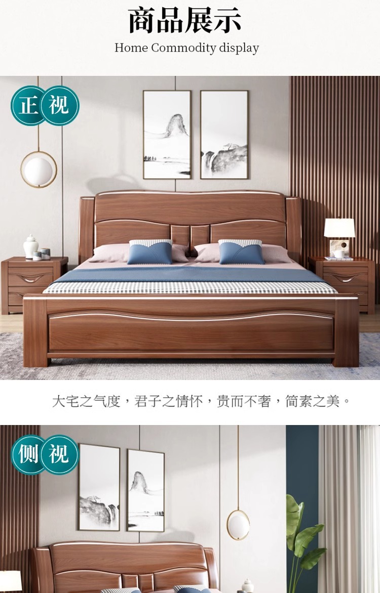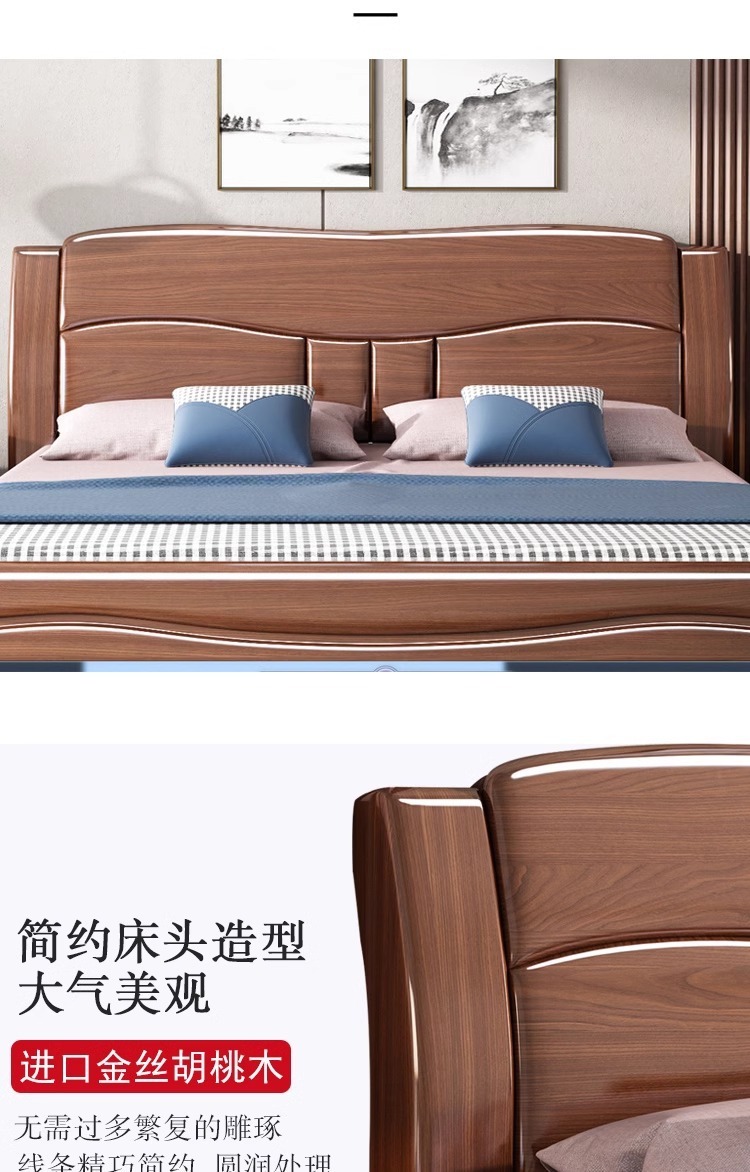 胡桃木色实木床1.8米双人床新中式实木床现代简约卧室单人大床