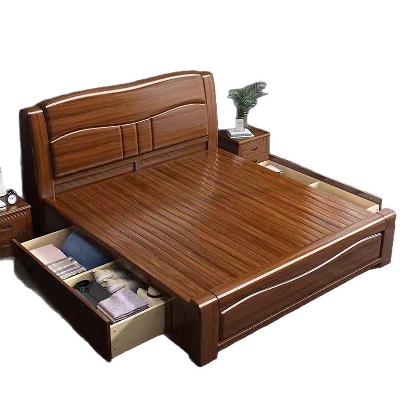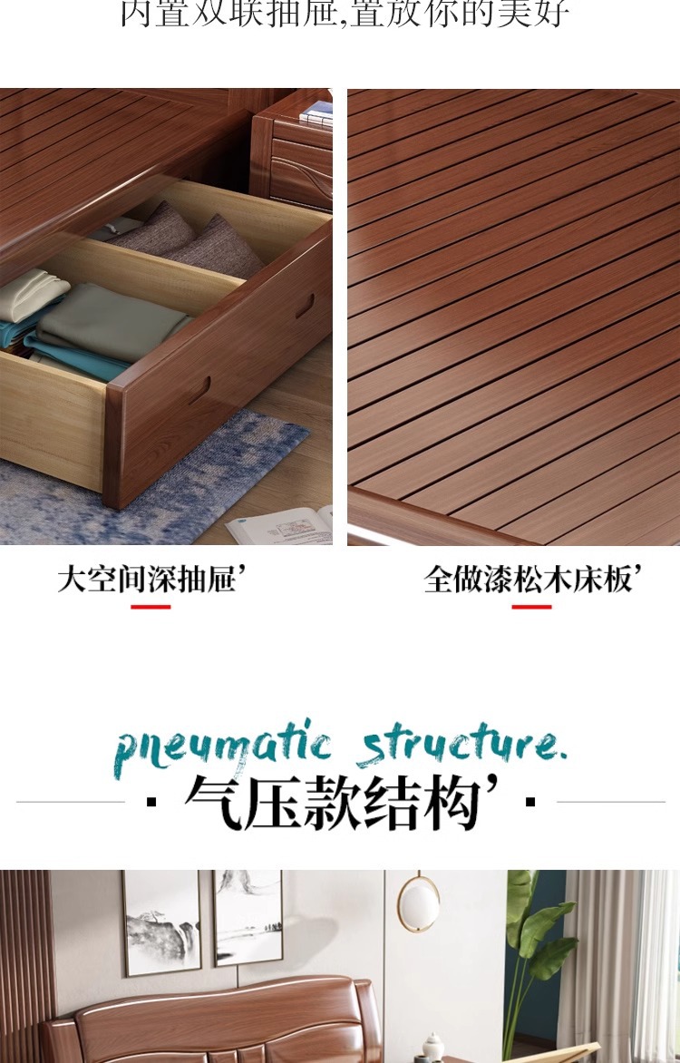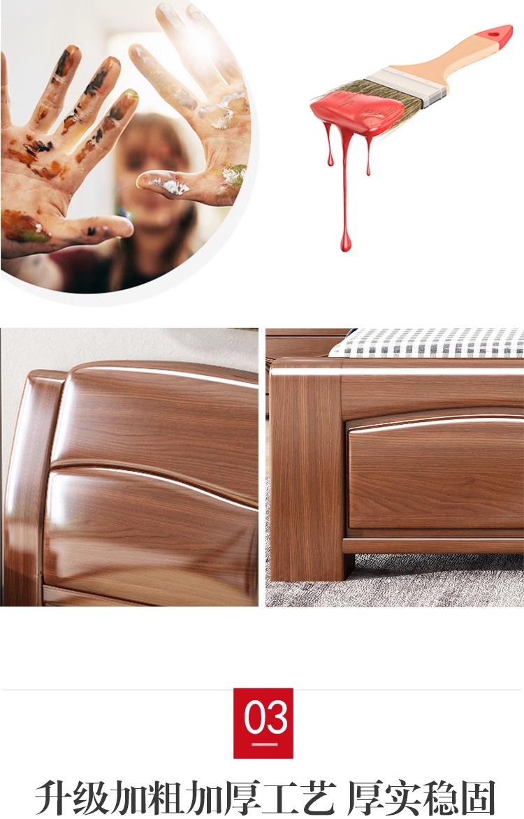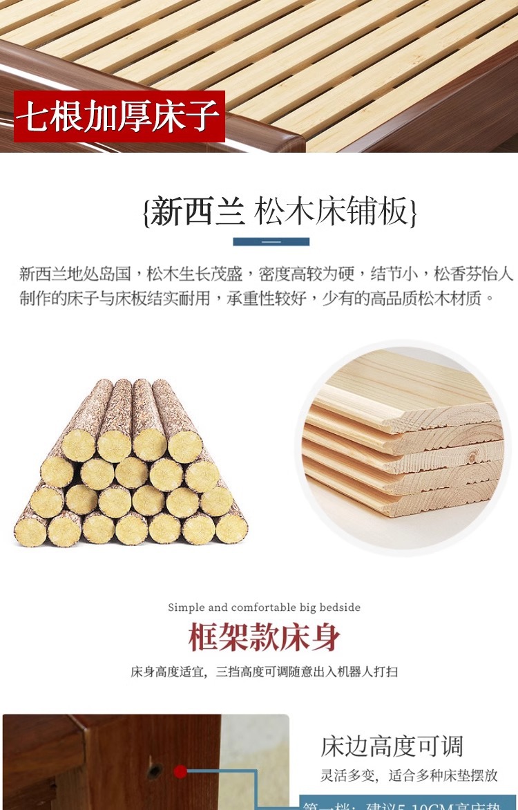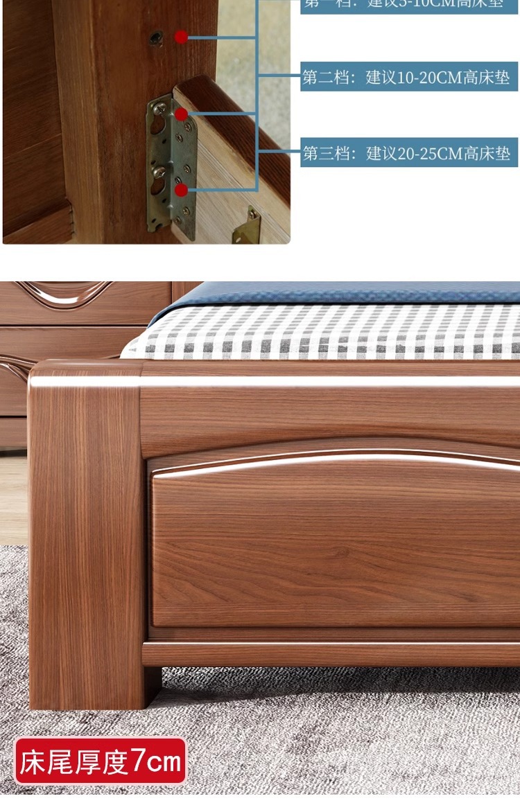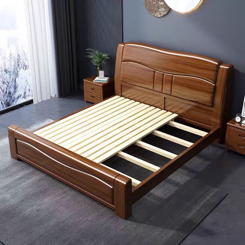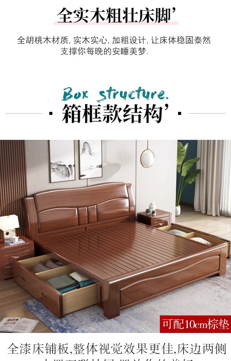 胡桃木色实木床1.8米双人床新中式实木床现代简约卧室单人大床