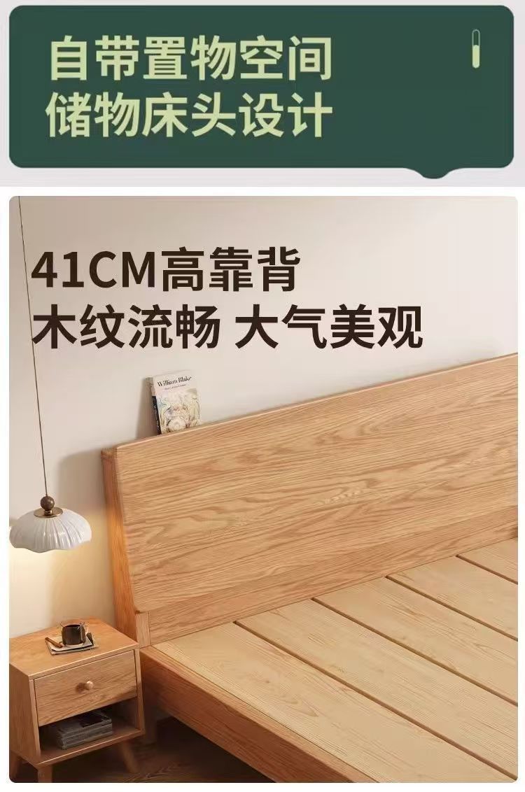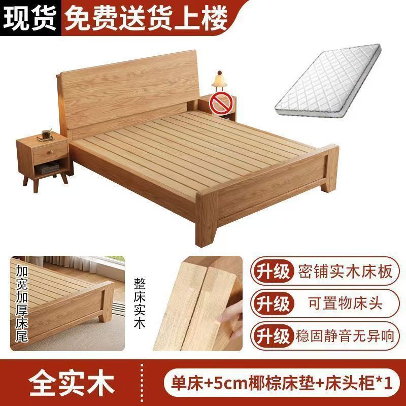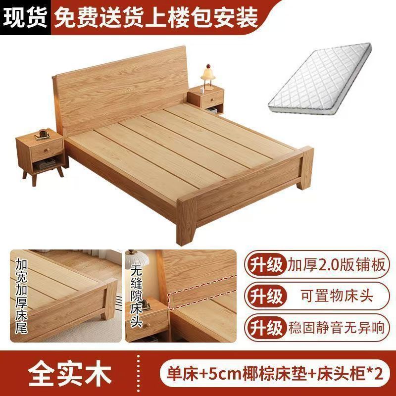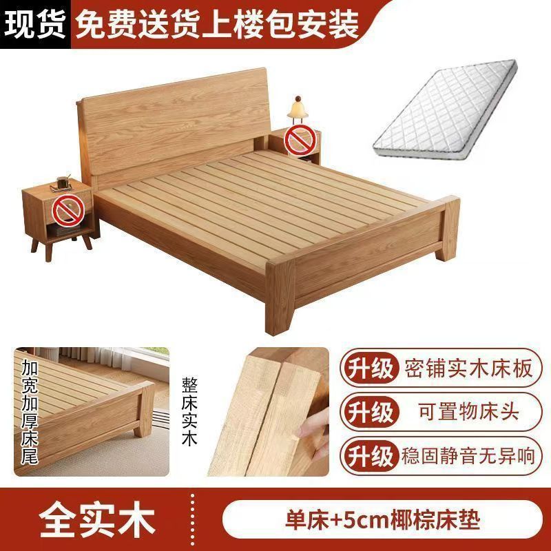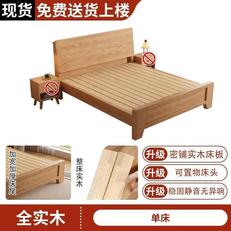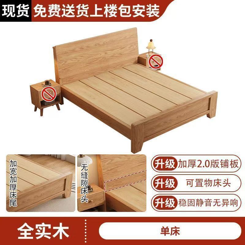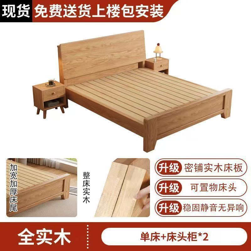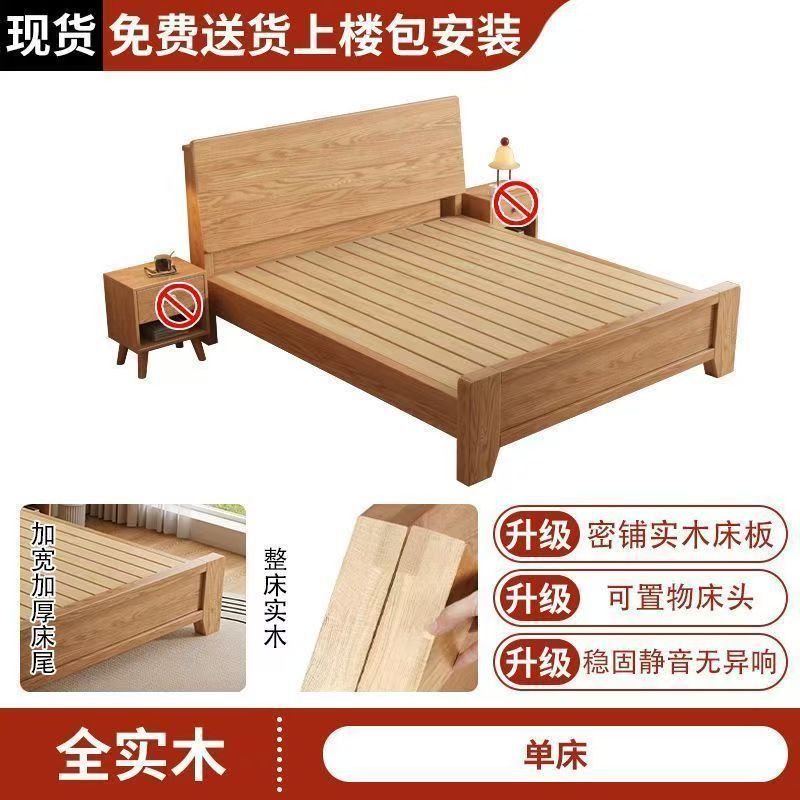 斜靠实木床加宽加厚排骨架橡木床家用主卧双人床出租屋1.5单人床