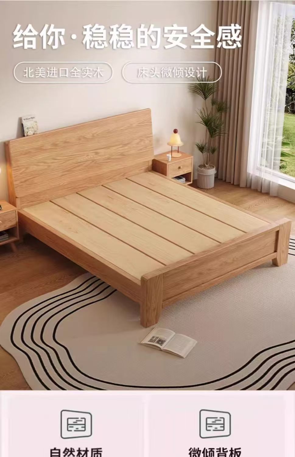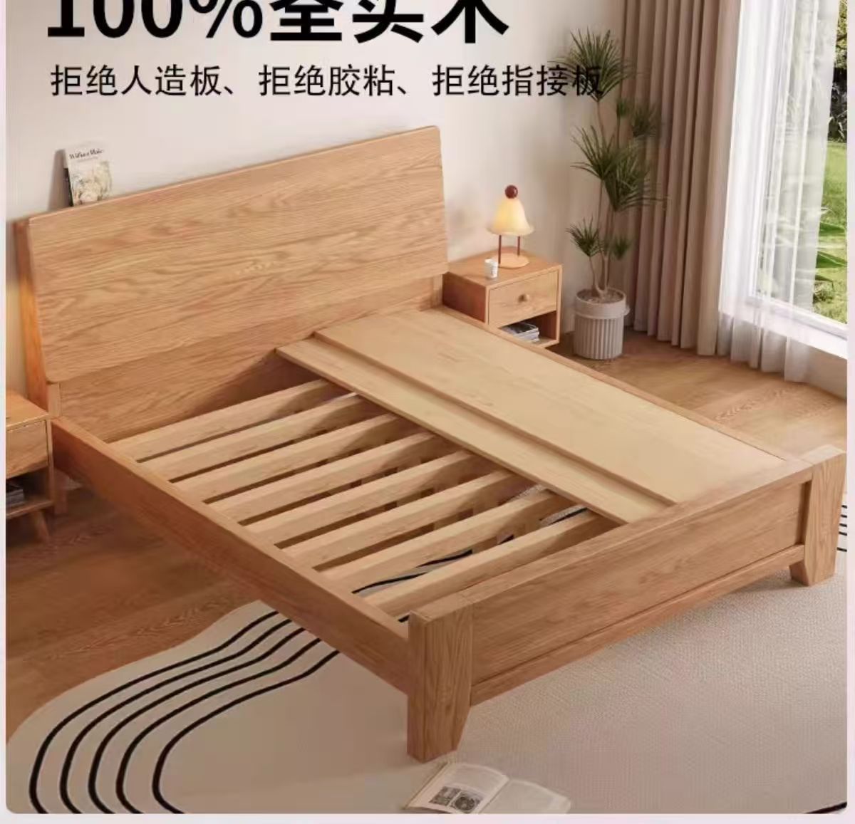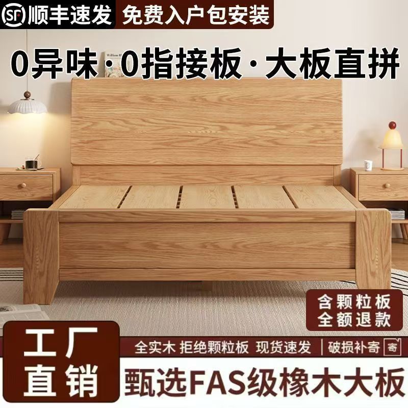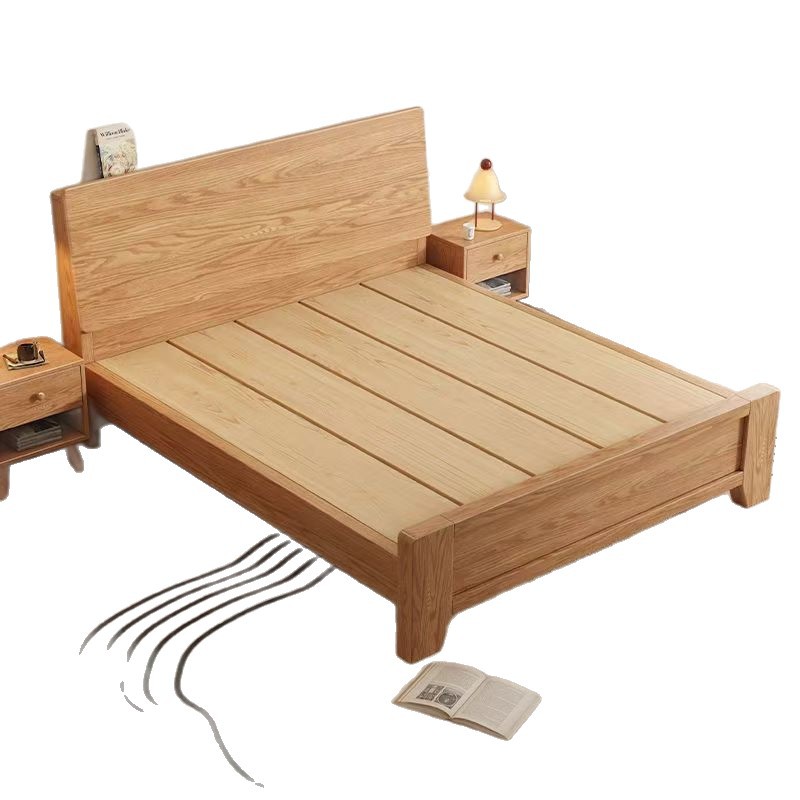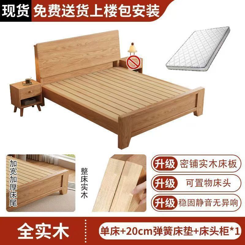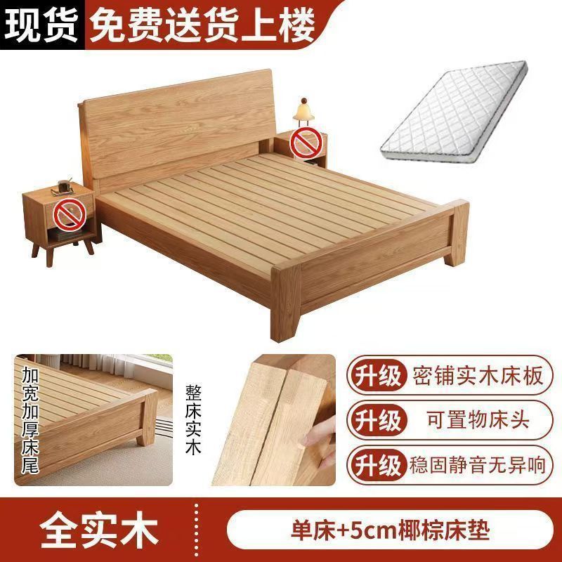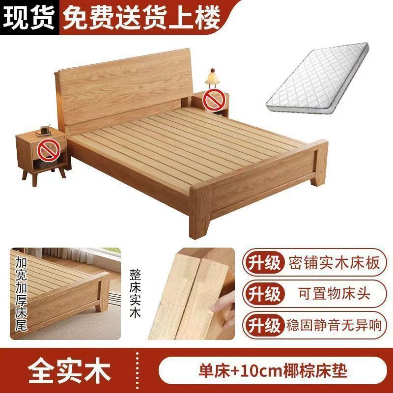 斜靠实木床加宽加厚排骨架橡木床家用主卧双人床出租屋1.5单人床