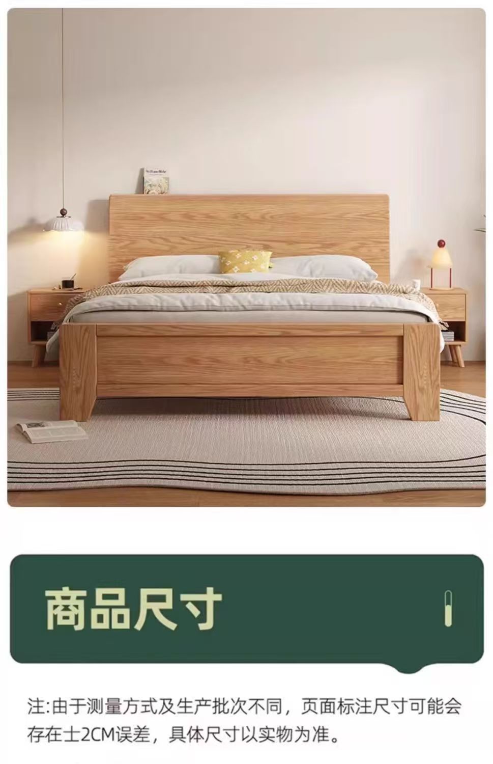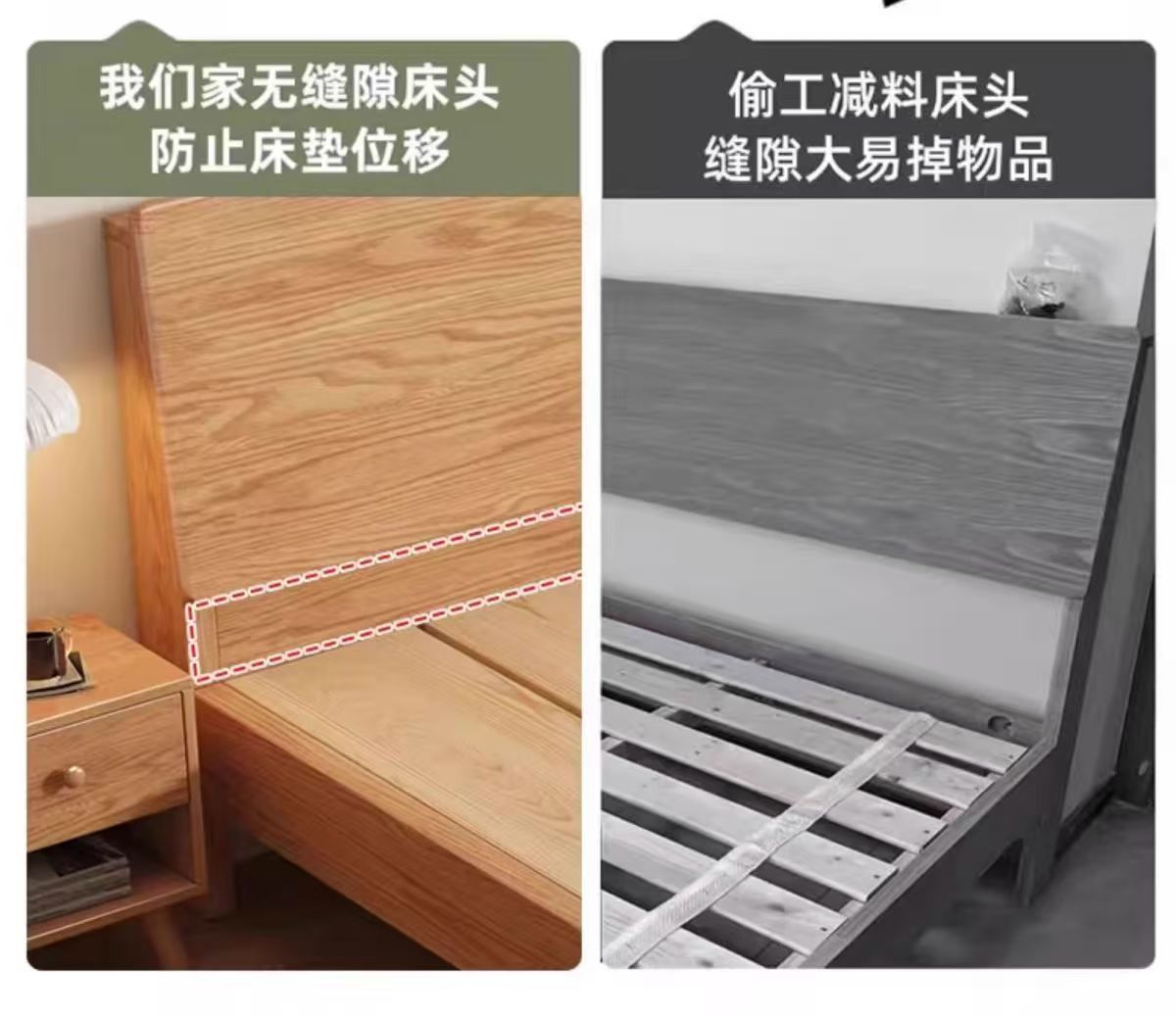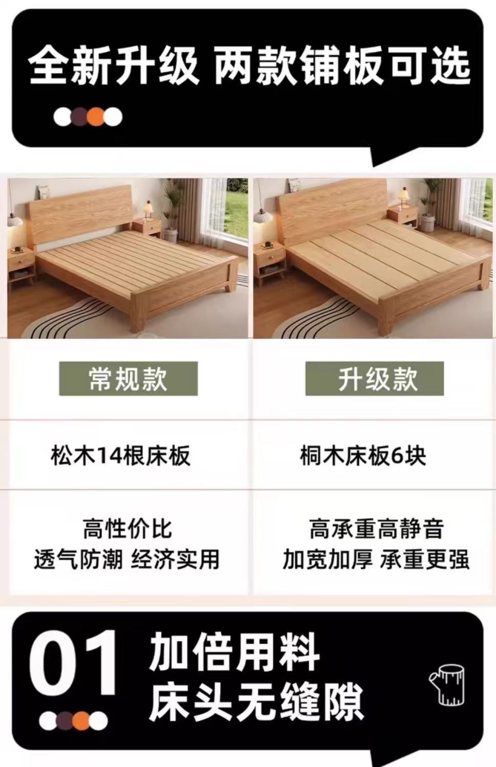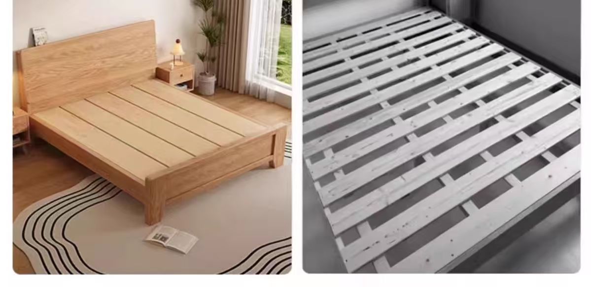斜靠实木床加宽加厚排骨架橡木床家用主卧双人床出租屋1.5单人床