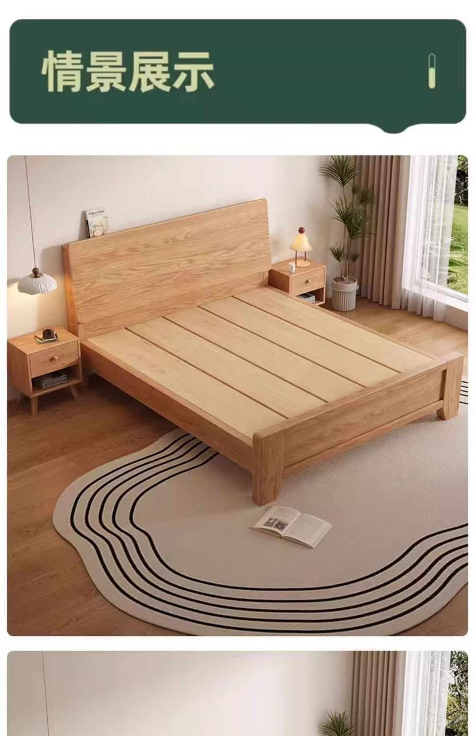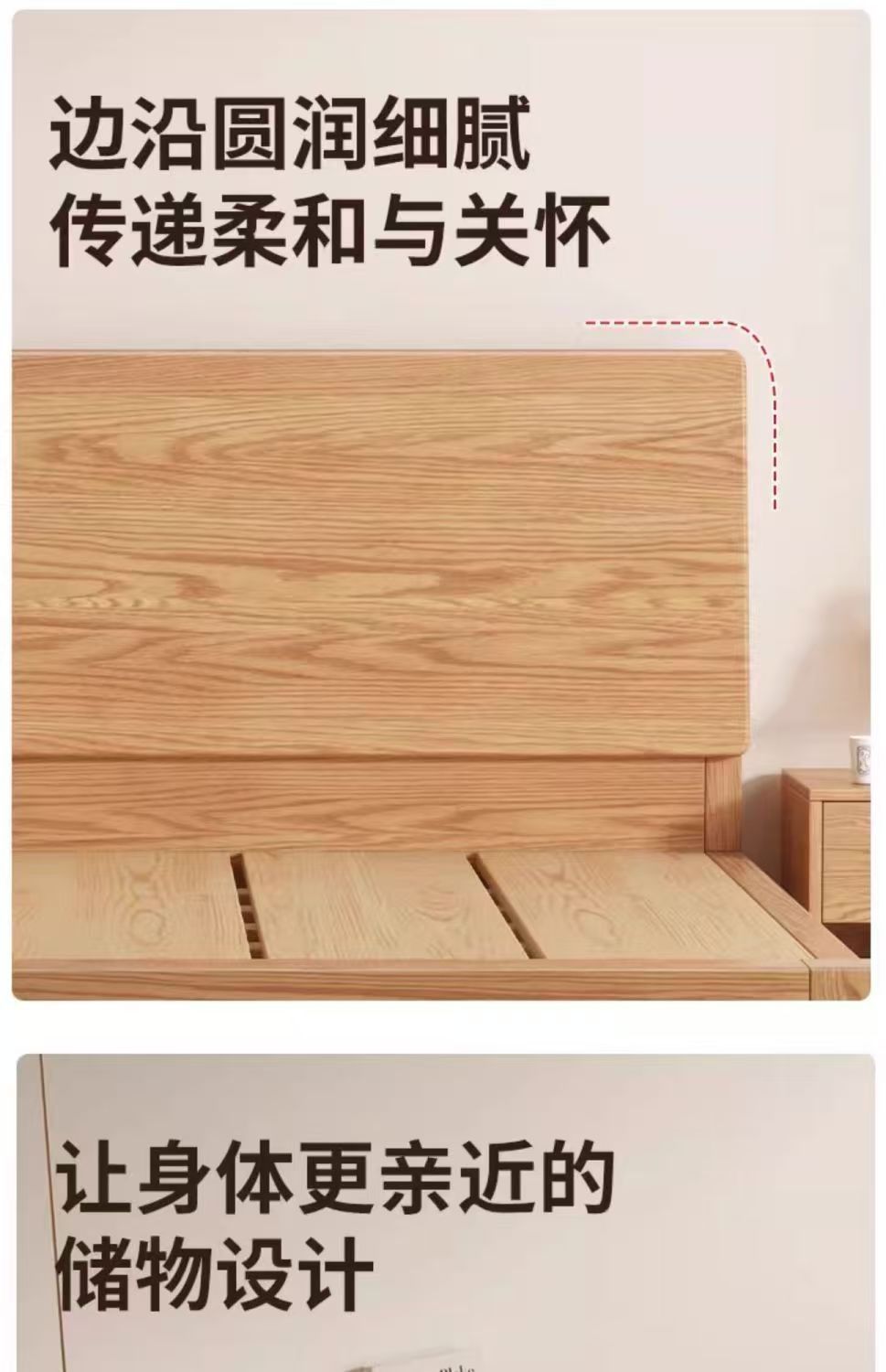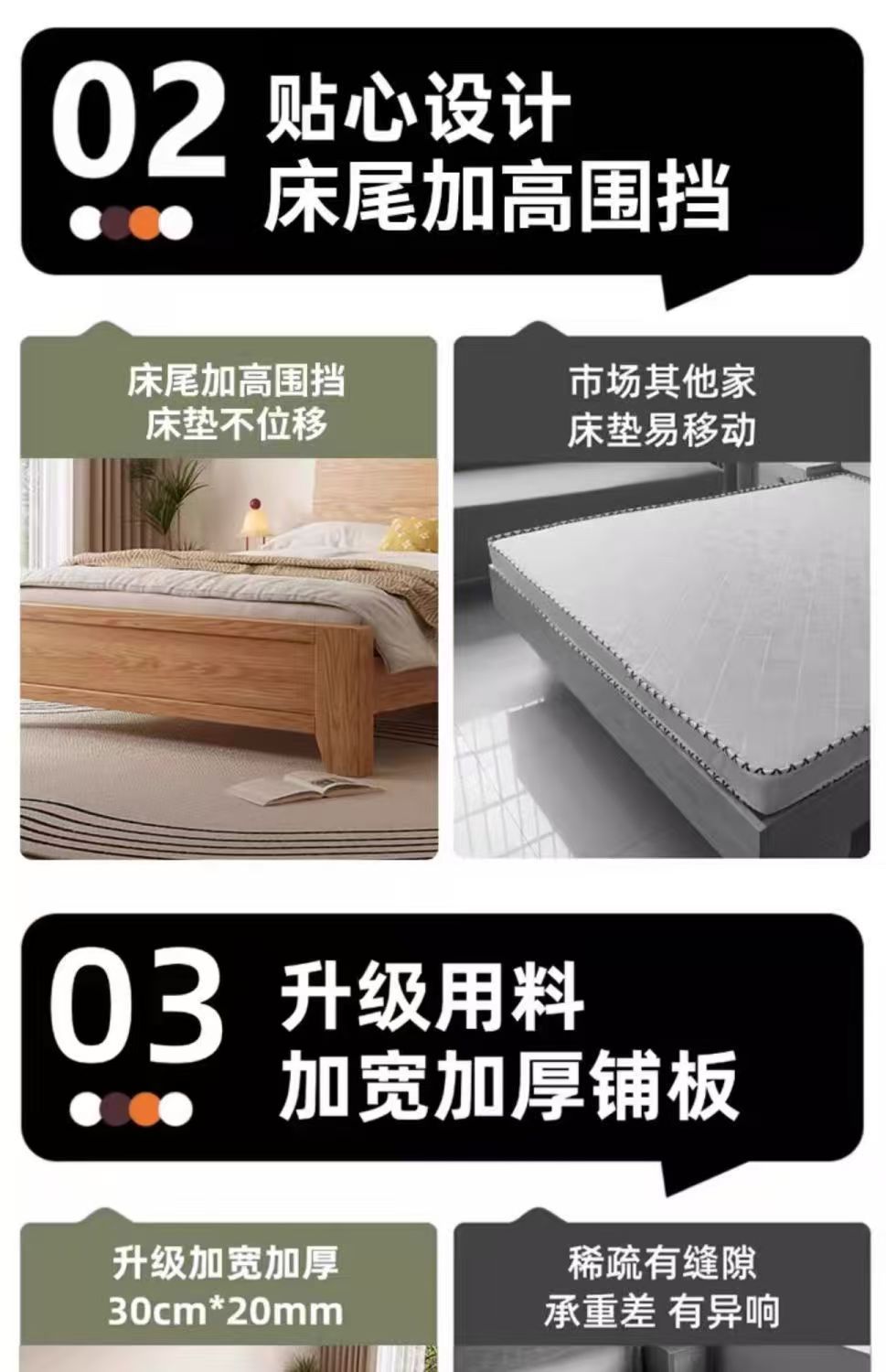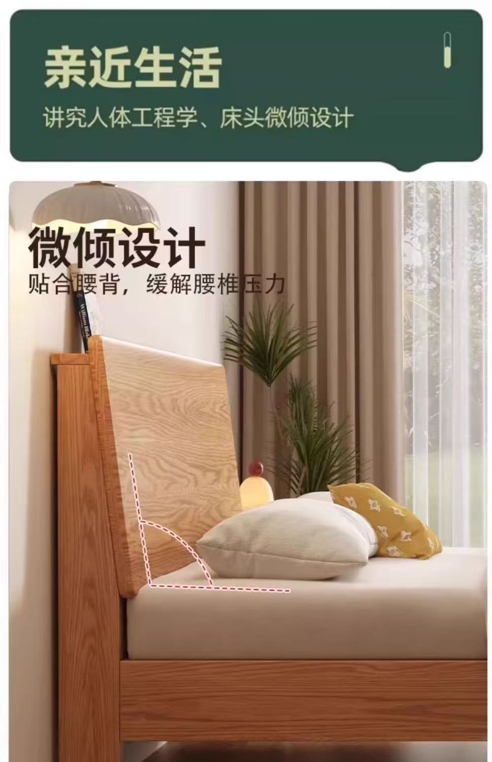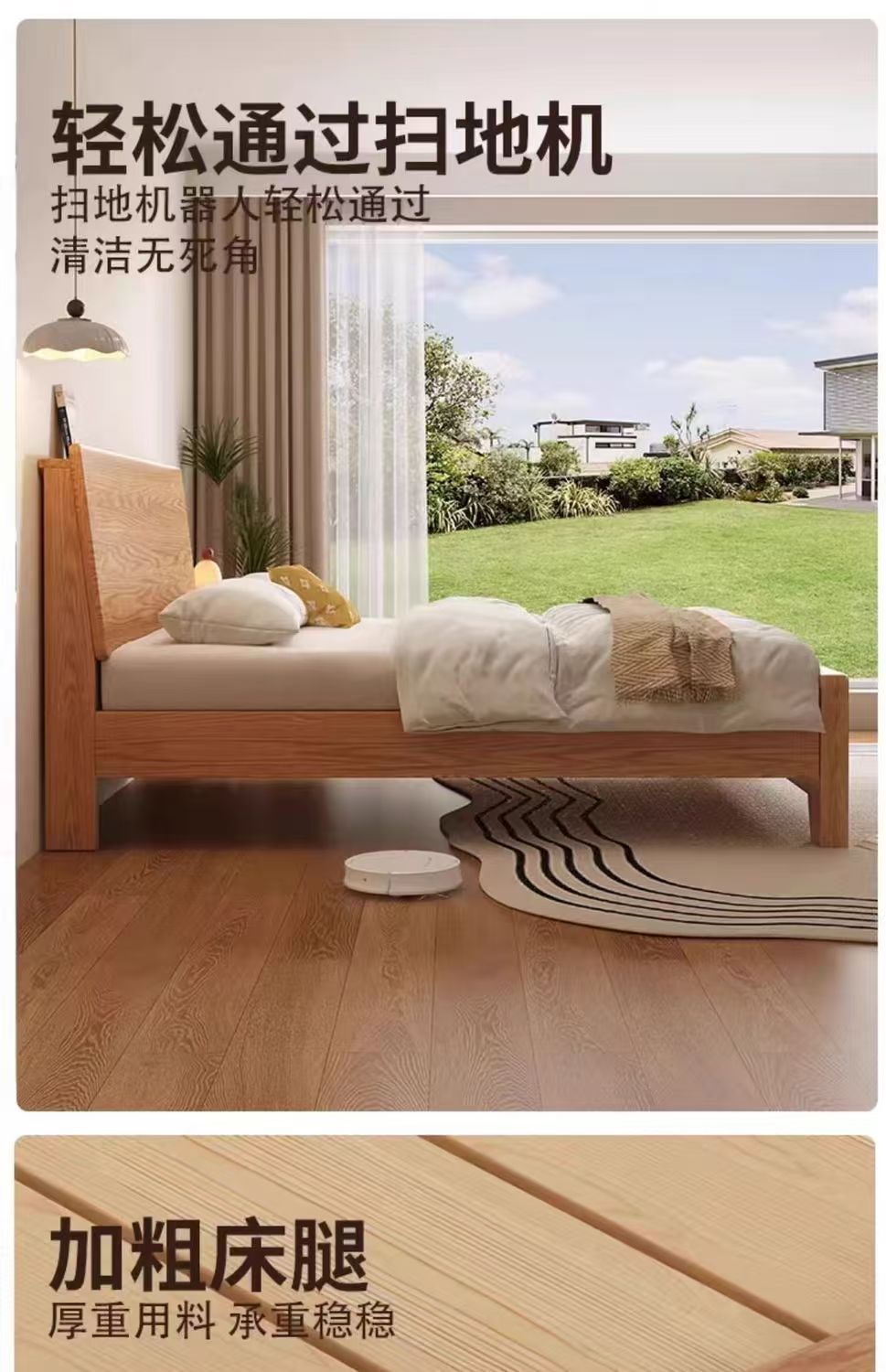 斜靠实木床加宽加厚排骨架橡木床家用主卧双人床出租屋1.5单人床