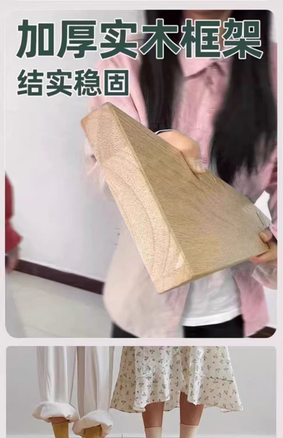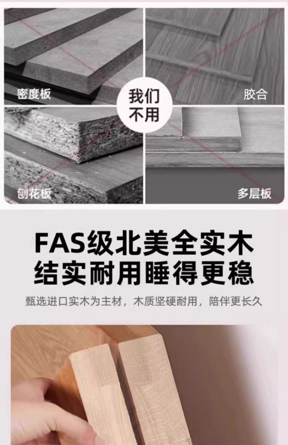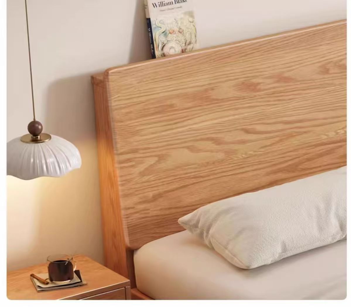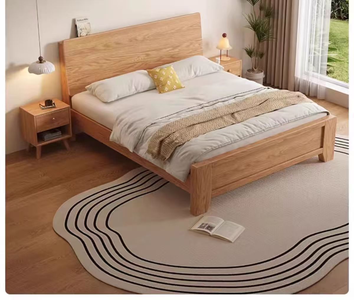 斜靠实木床加宽加厚排骨架橡木床家用主卧双人床出租屋1.5单人床