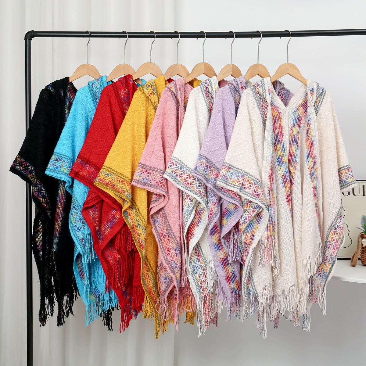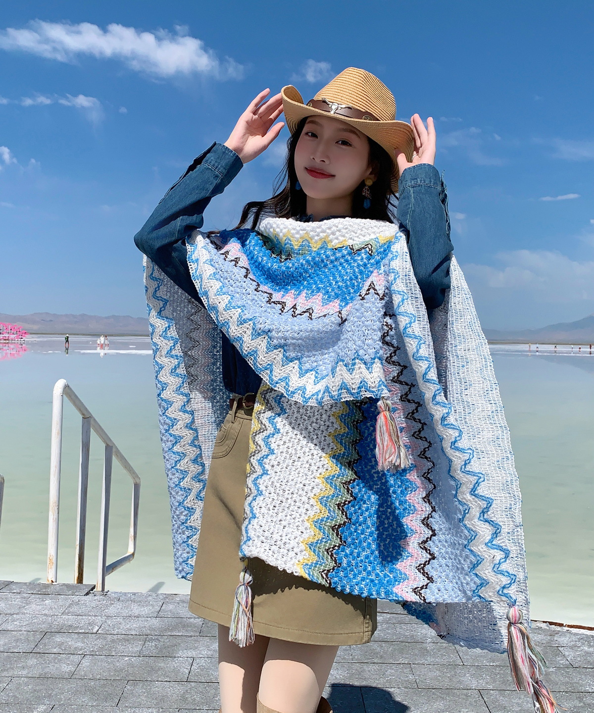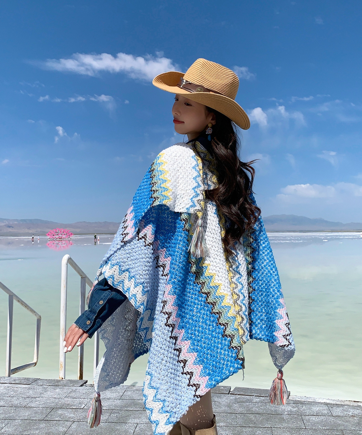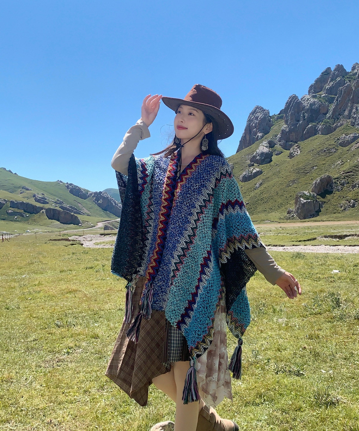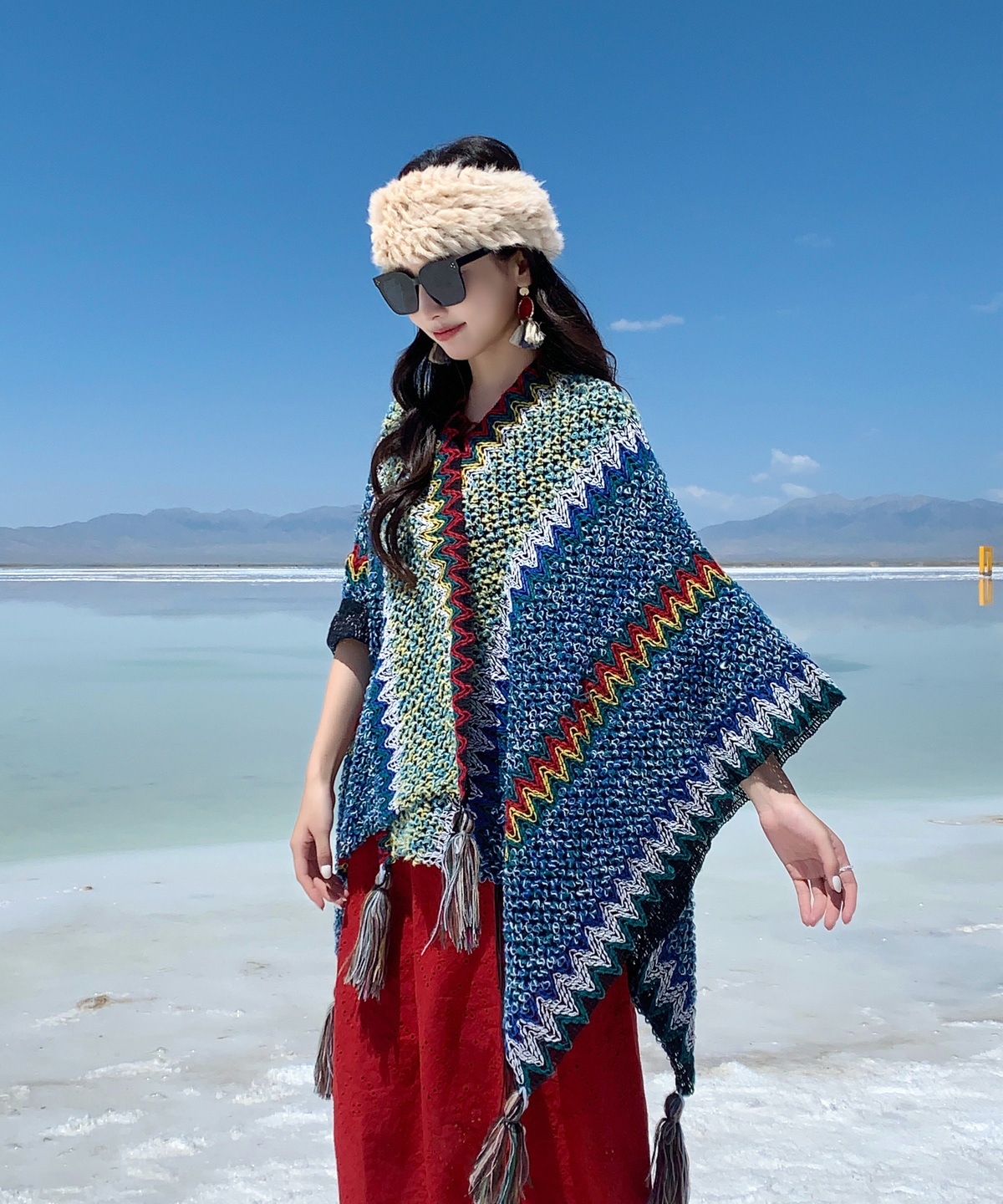 新款夏季民族风披肩女云南川藏旅游装饰外搭长款复古斗篷披风围巾