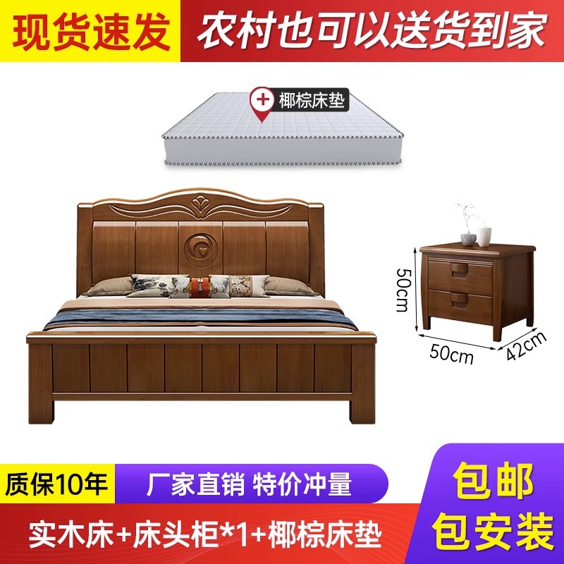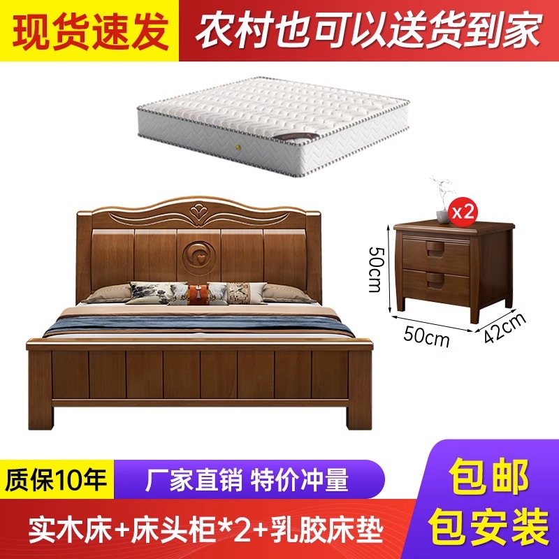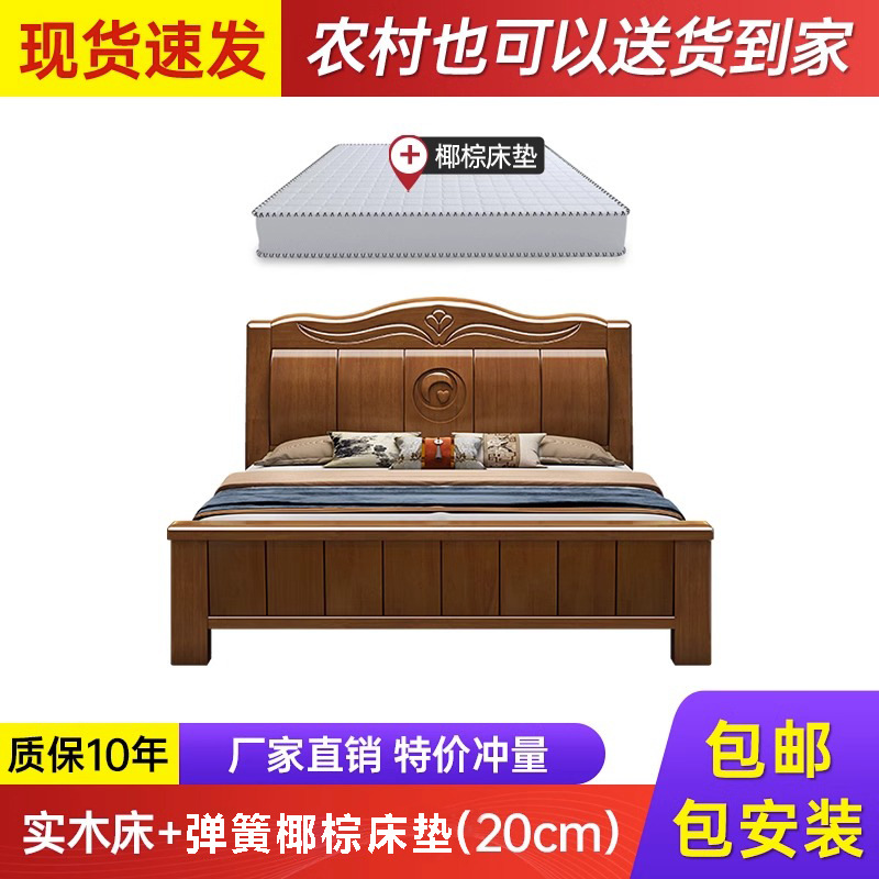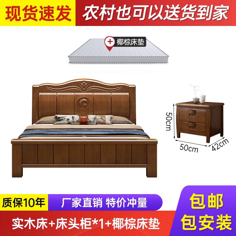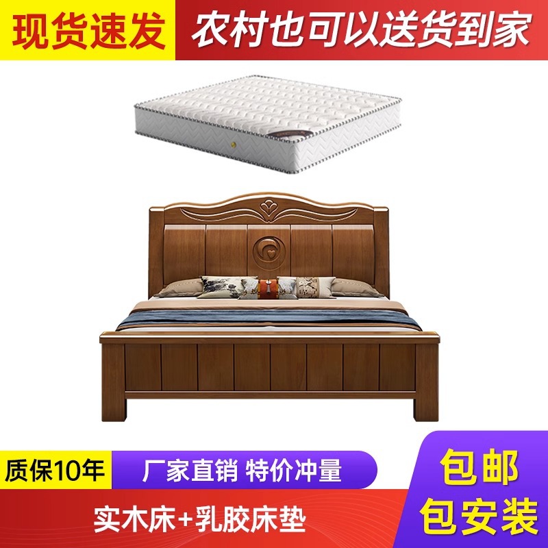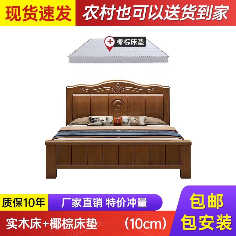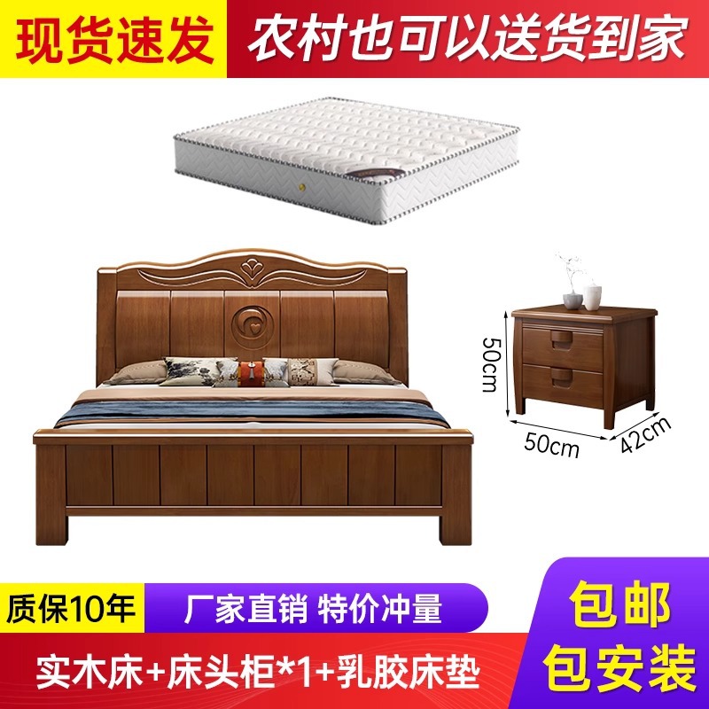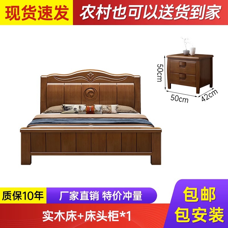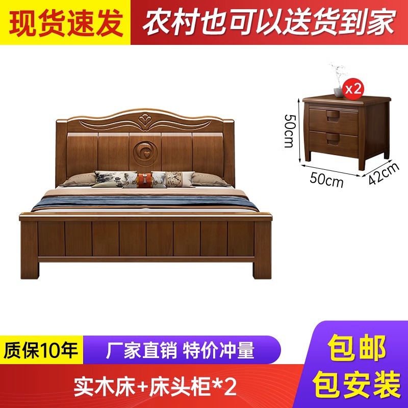 中式实木床现代简约1米8双人床主卧全实木1.5米单人床工厂直销床