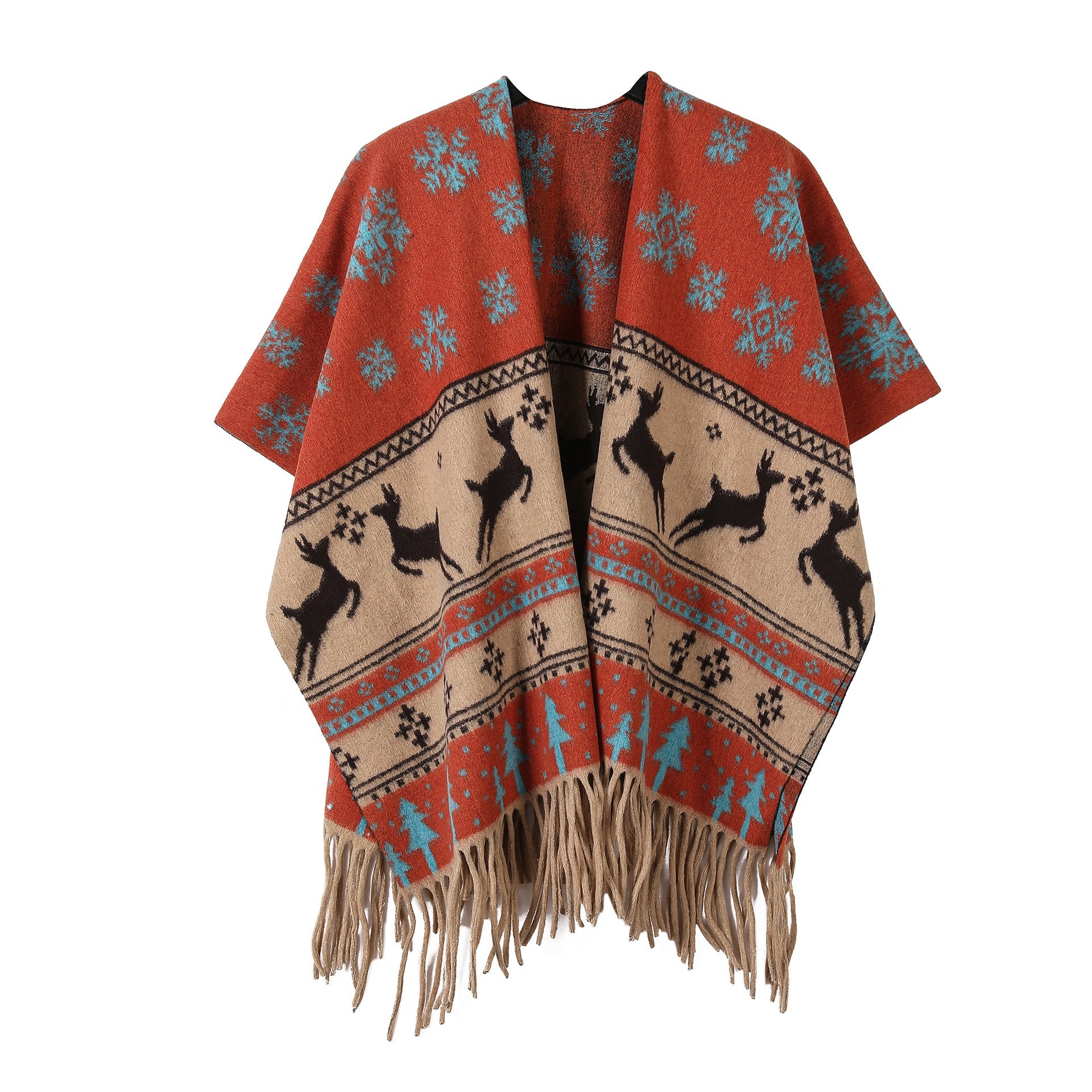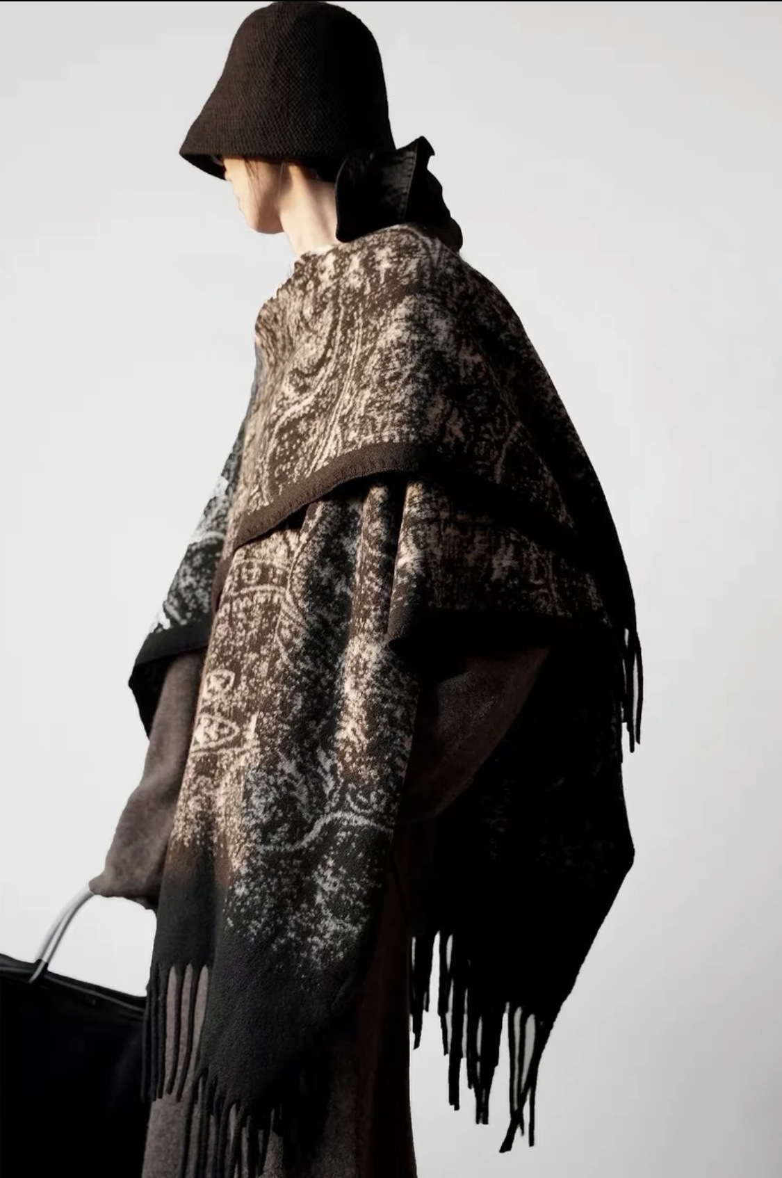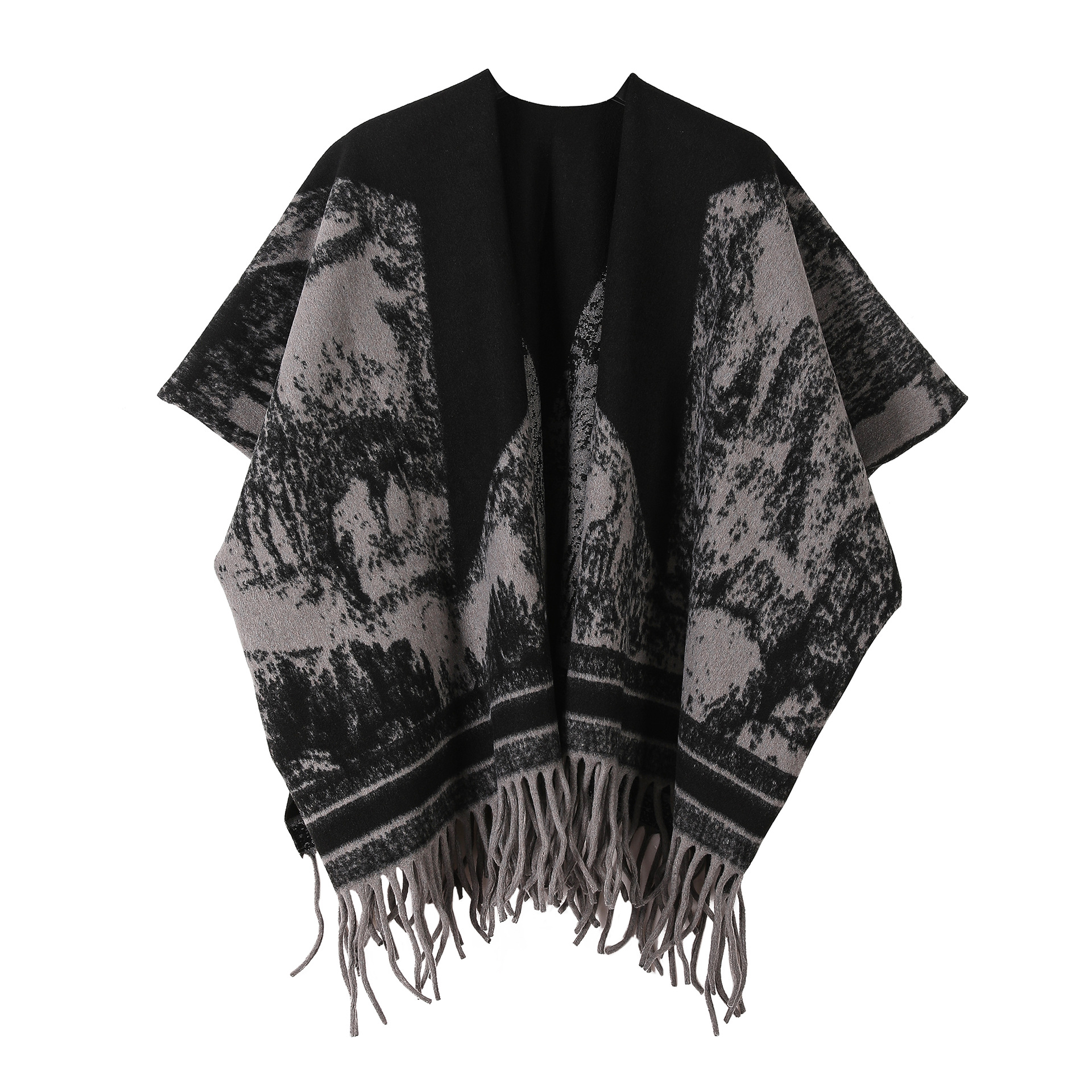 新款水墨画披肩高级感旅游装饰外搭披肩长款复古斗篷流苏披风穿搭