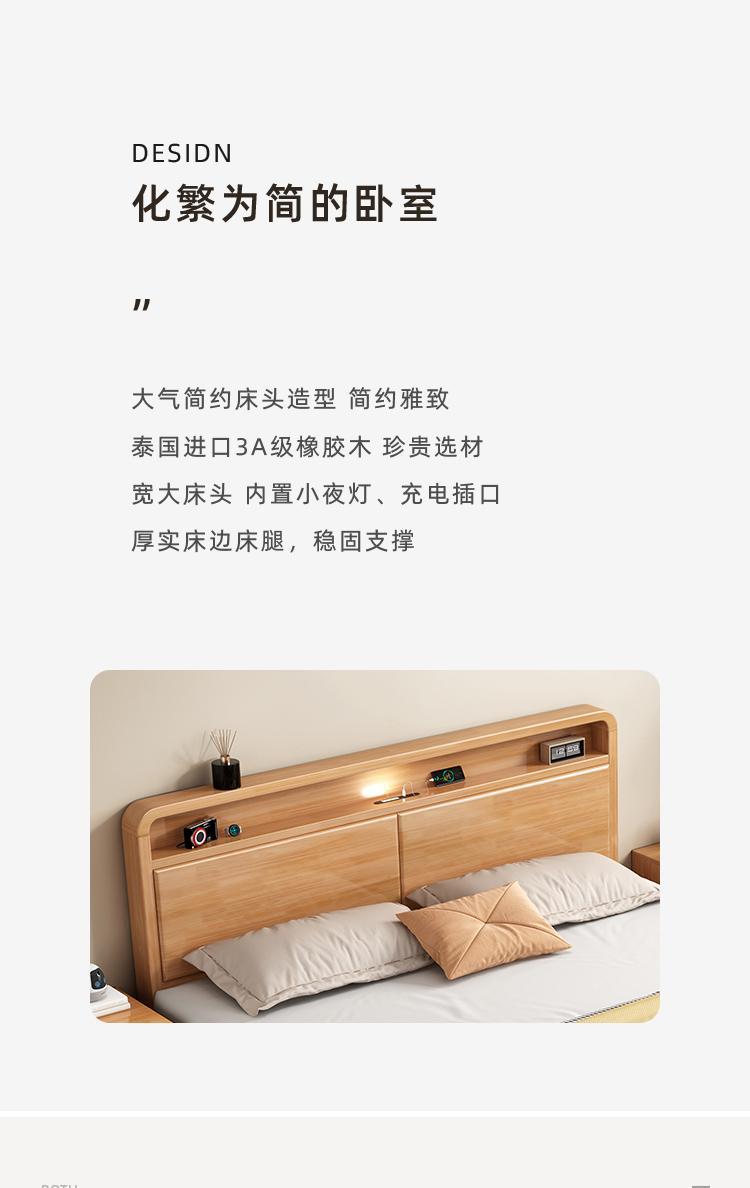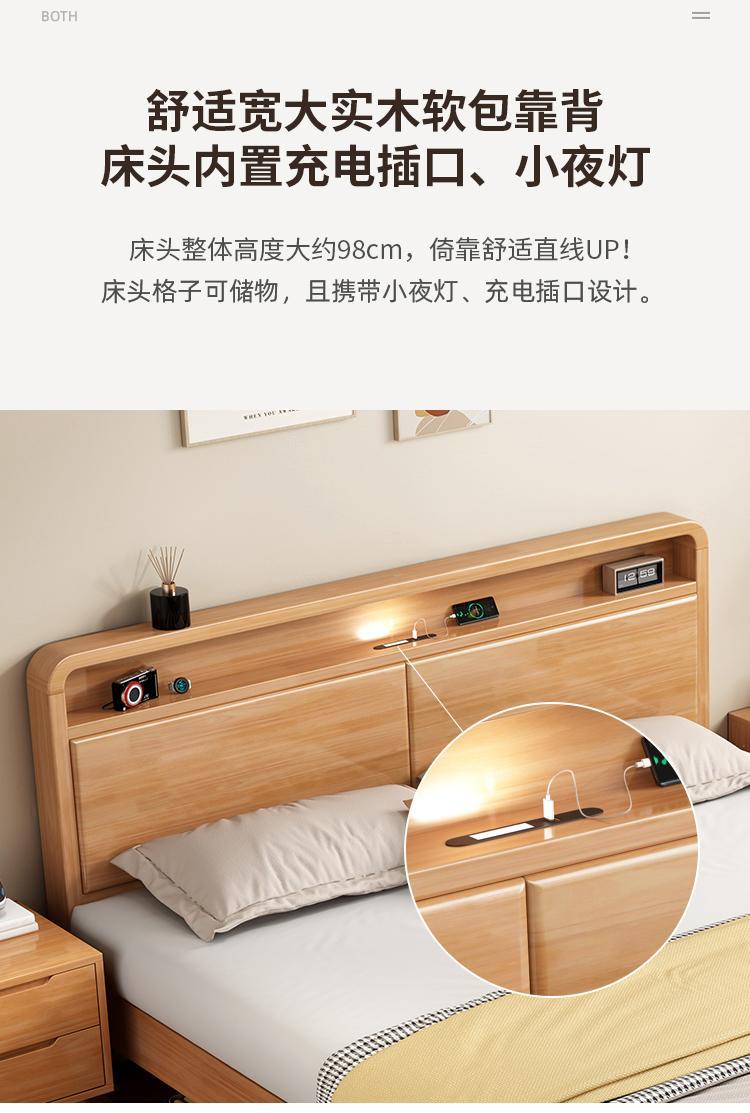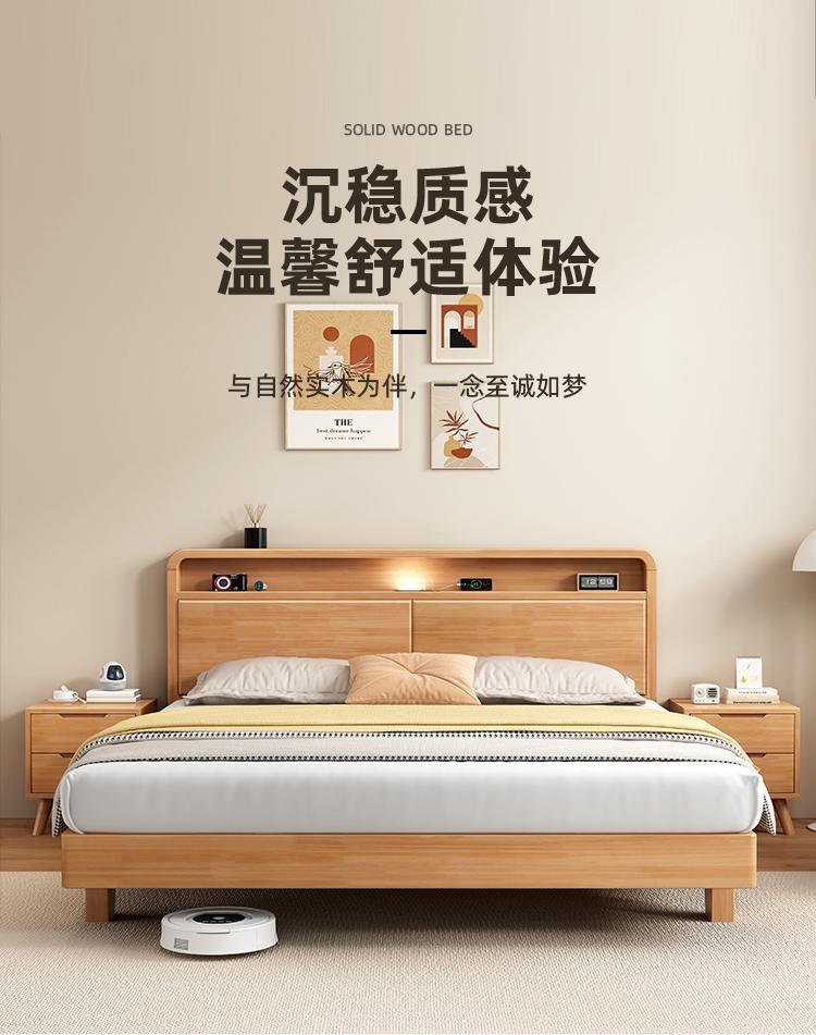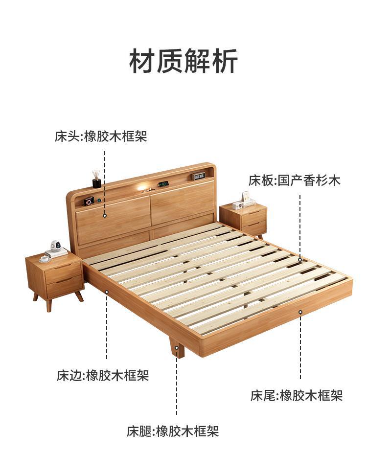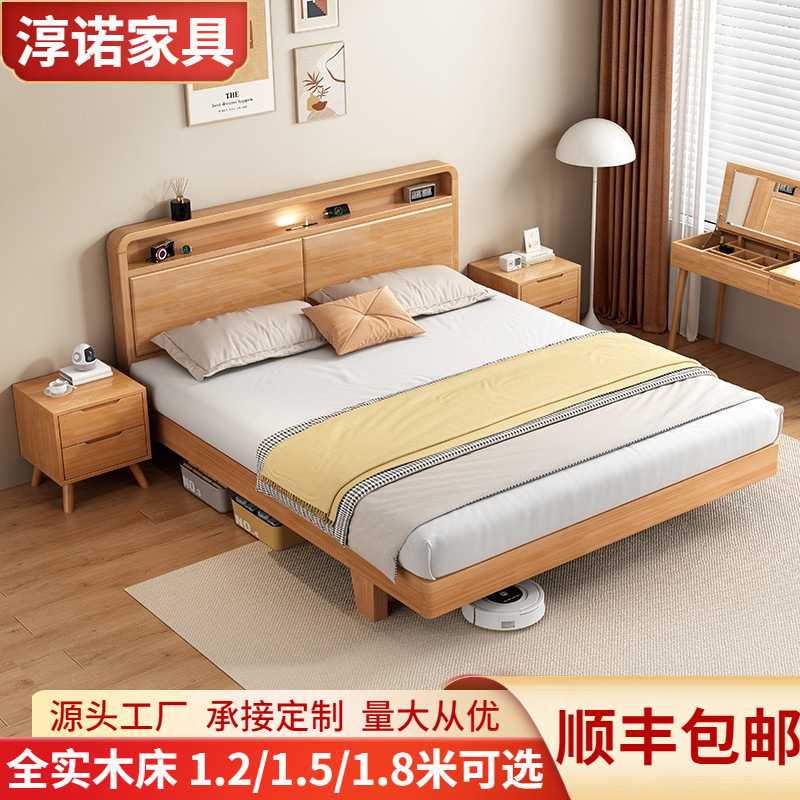 北欧全实木床1.8米主卧双人床小户型单人床1.5米经济型公寓名宿床