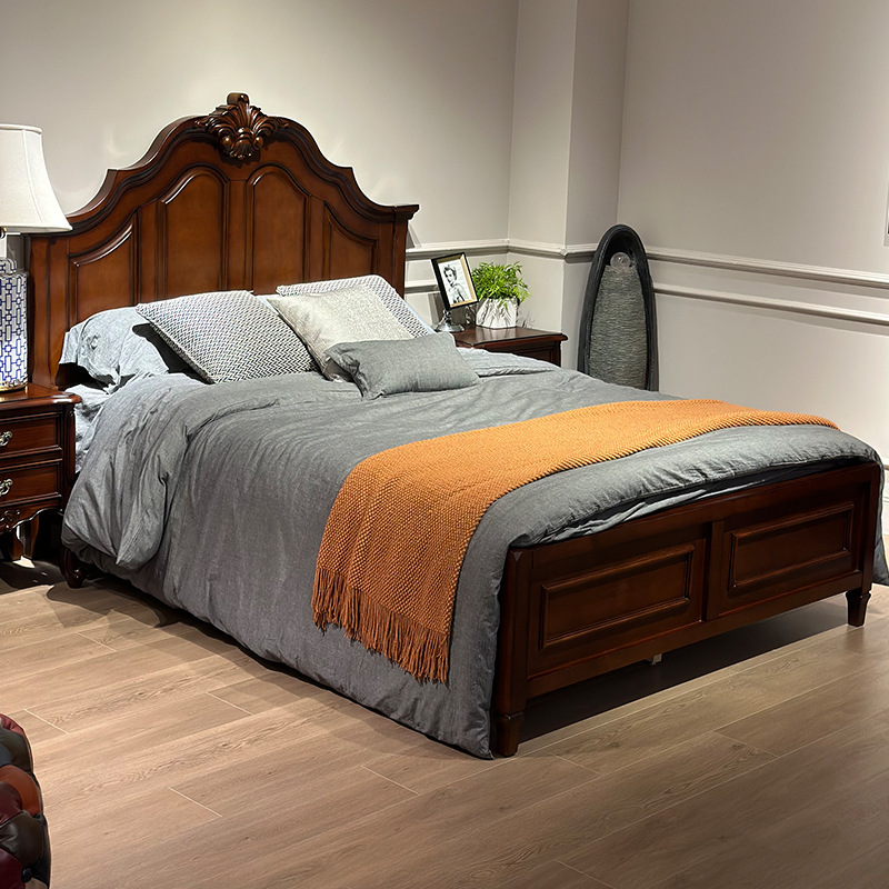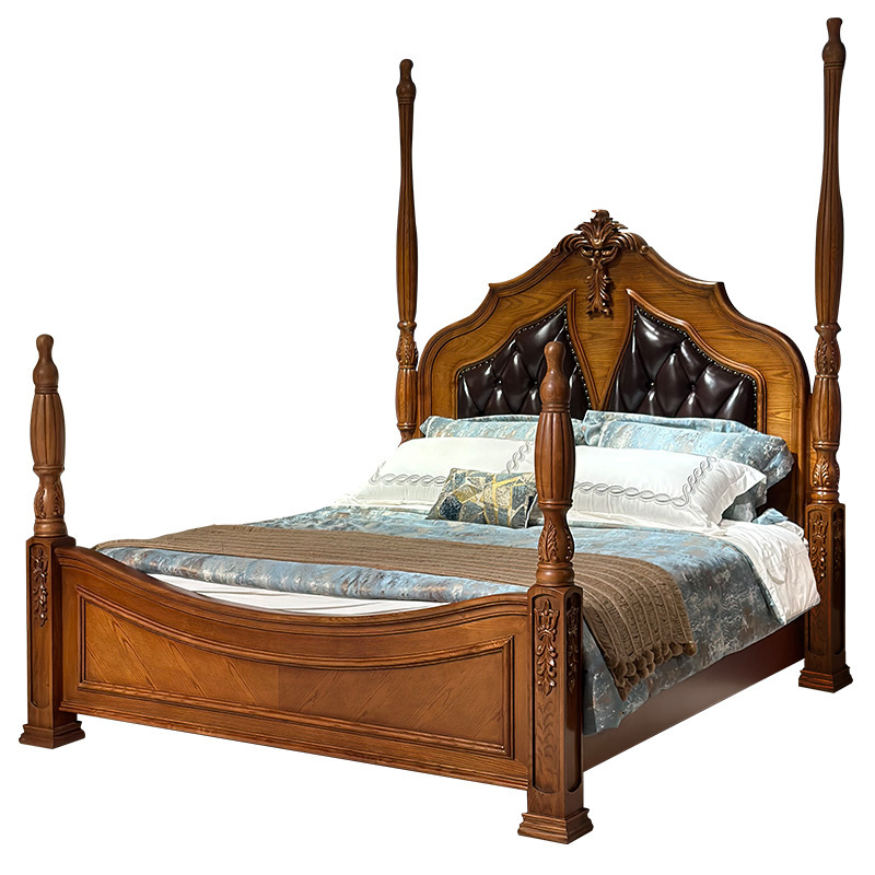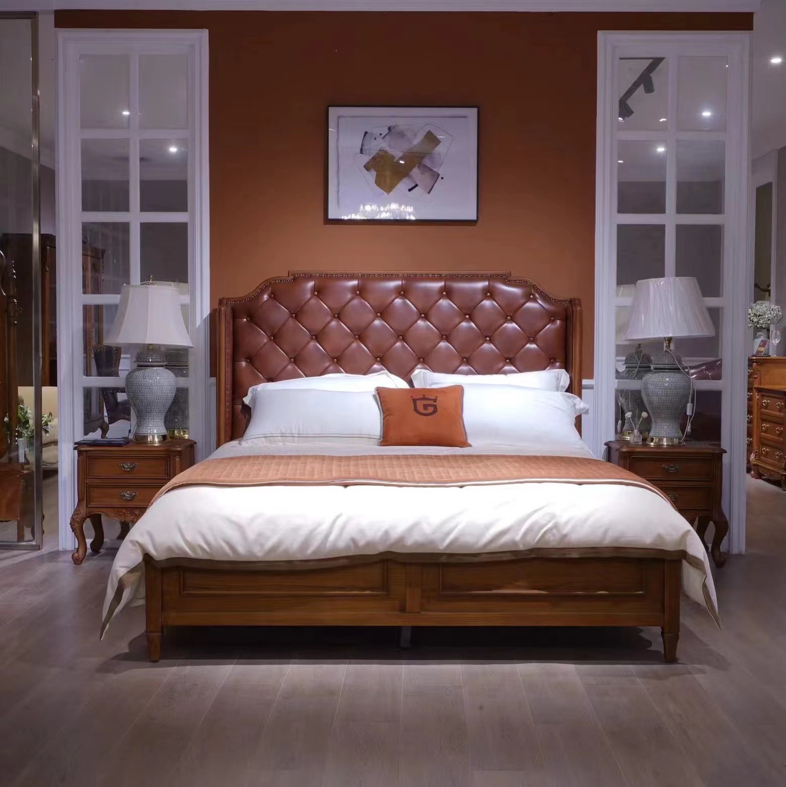 佛山家具美式实木床双人床樱桃木主卧轻奢复古真皮一米八定 制