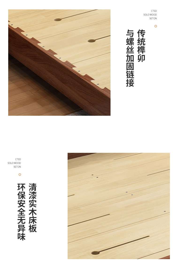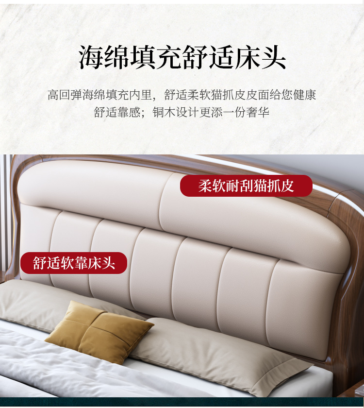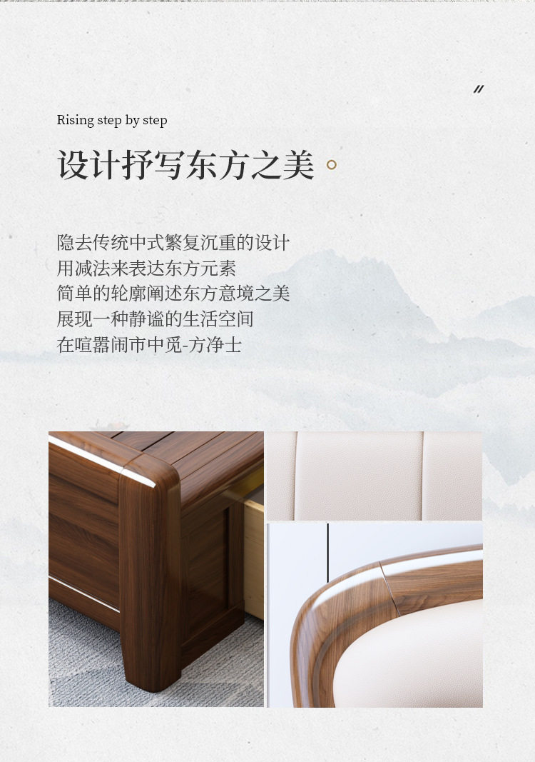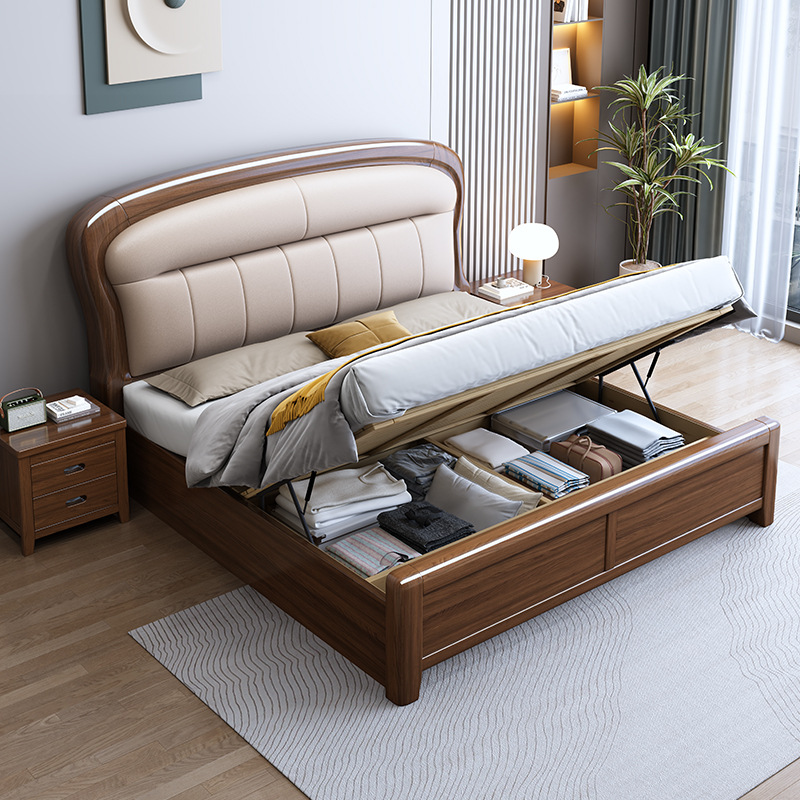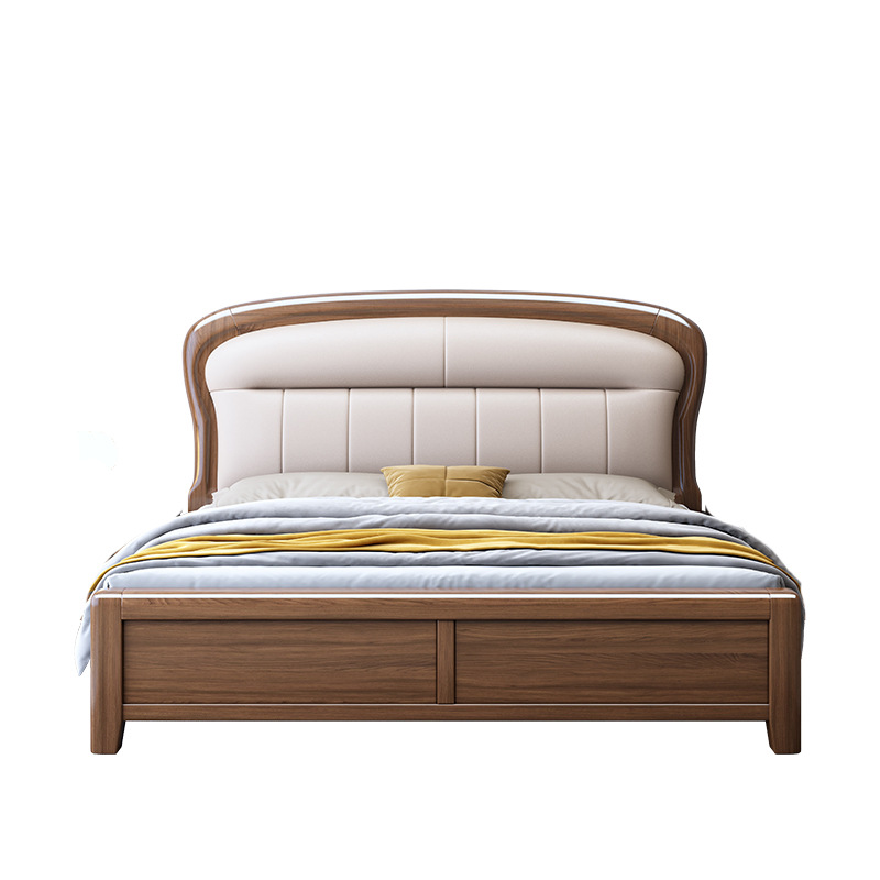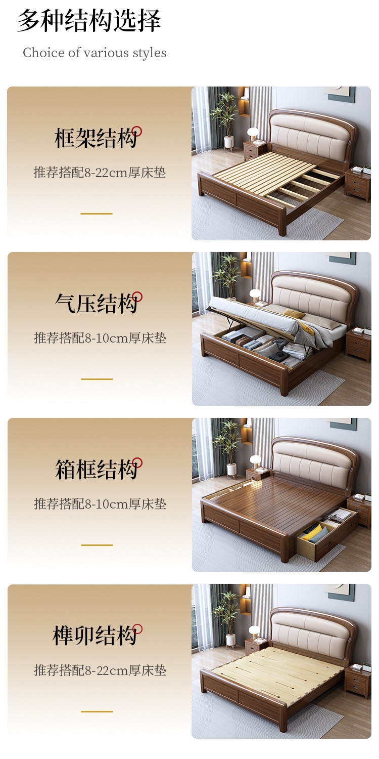 现代中式实木床胡桃木色软靠1.8米双人卧室主卧室1.5米单人抽屉床